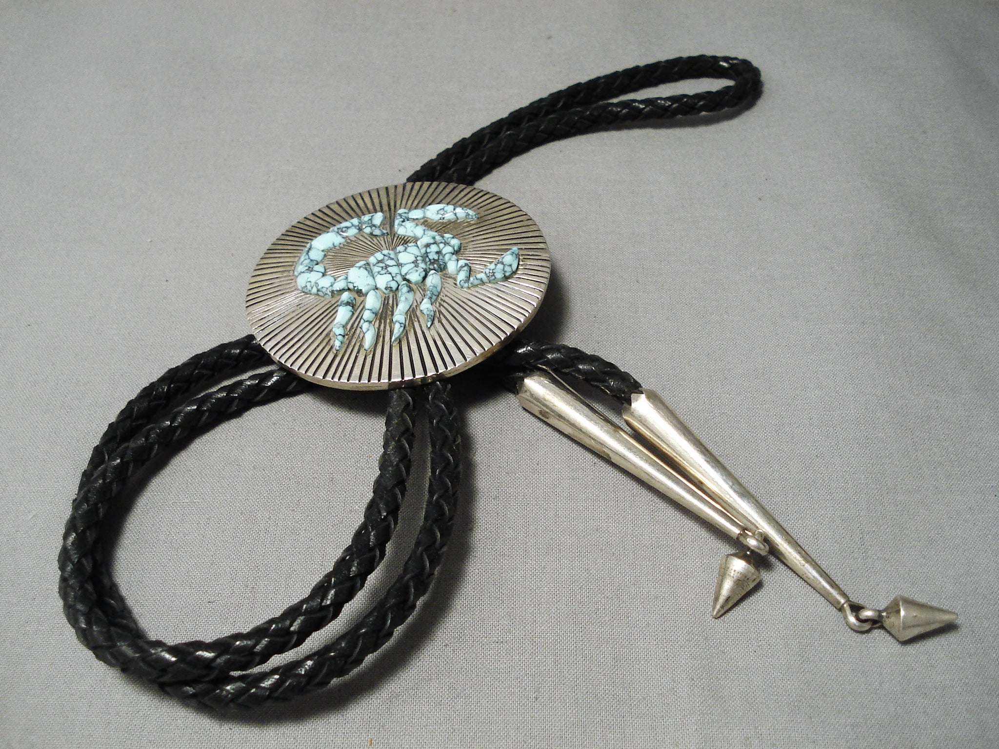 Native American Important New Lander Blue Turquoise Sterling Silver Scorpion Bolo Tie