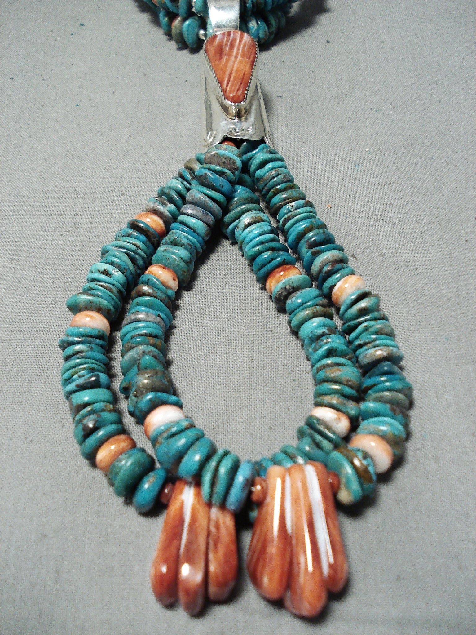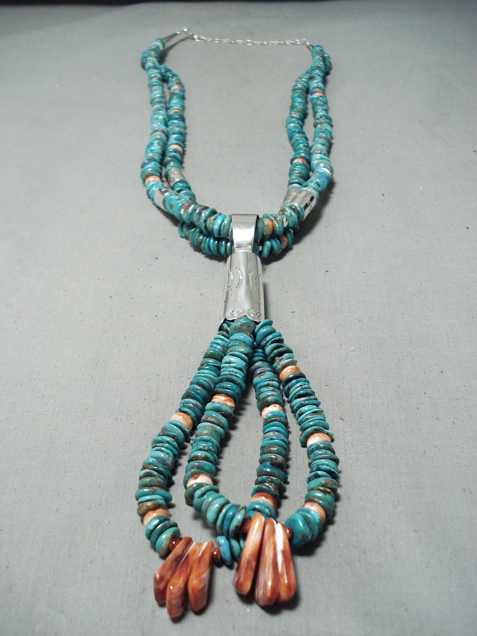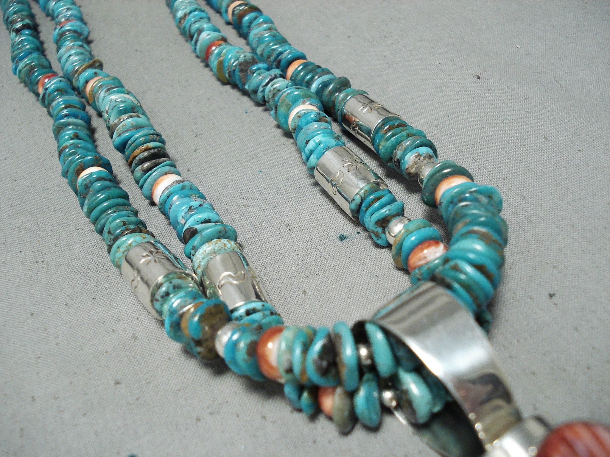 Native American Important Santo Domingo Turquoise Sterling Silver Shell Necklace