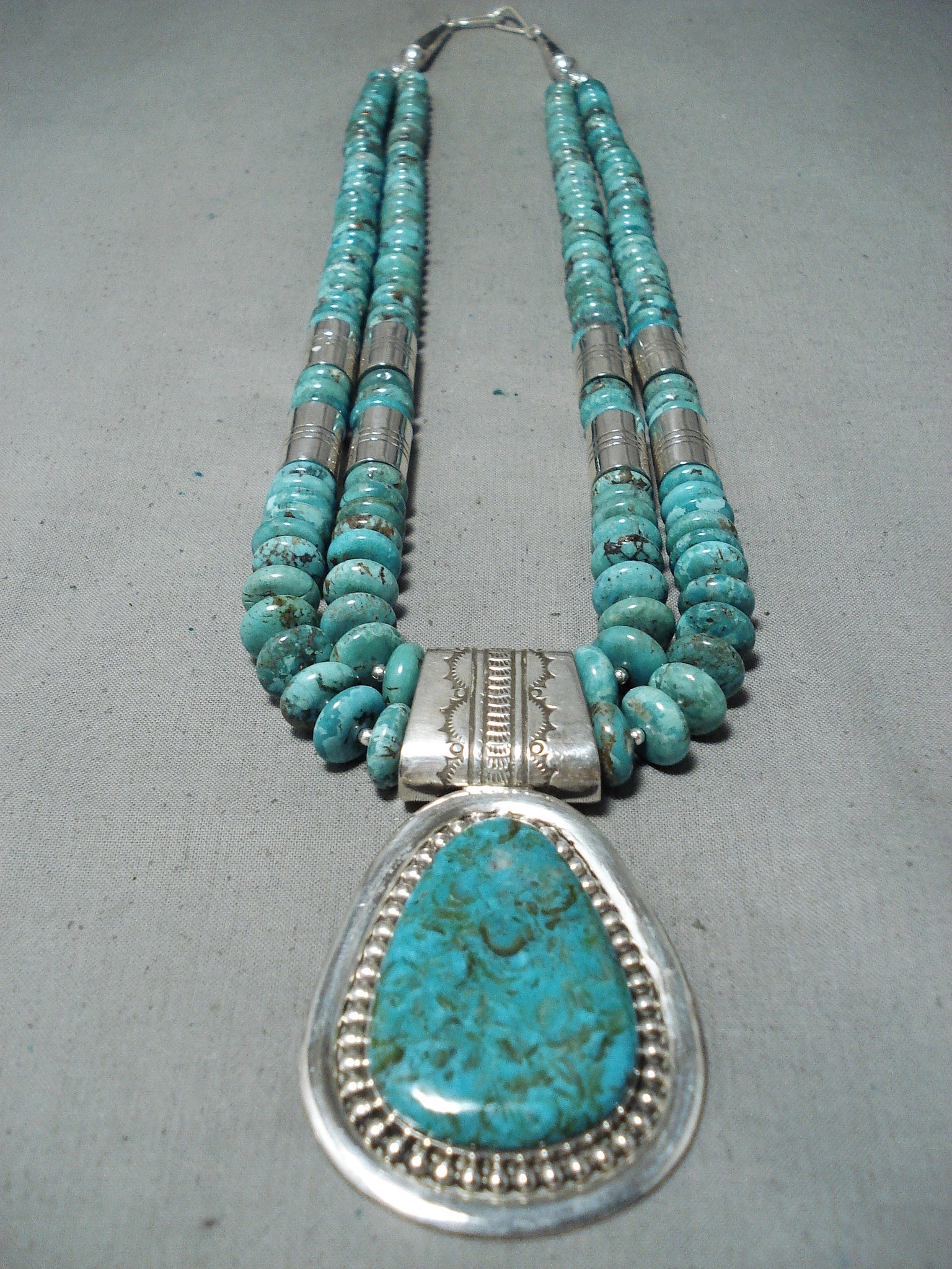 Native American Important Tony Aguilar Santo Domingo Turquoise Sterling Silver Necklace
