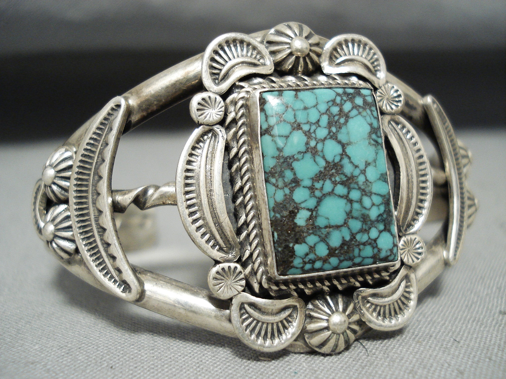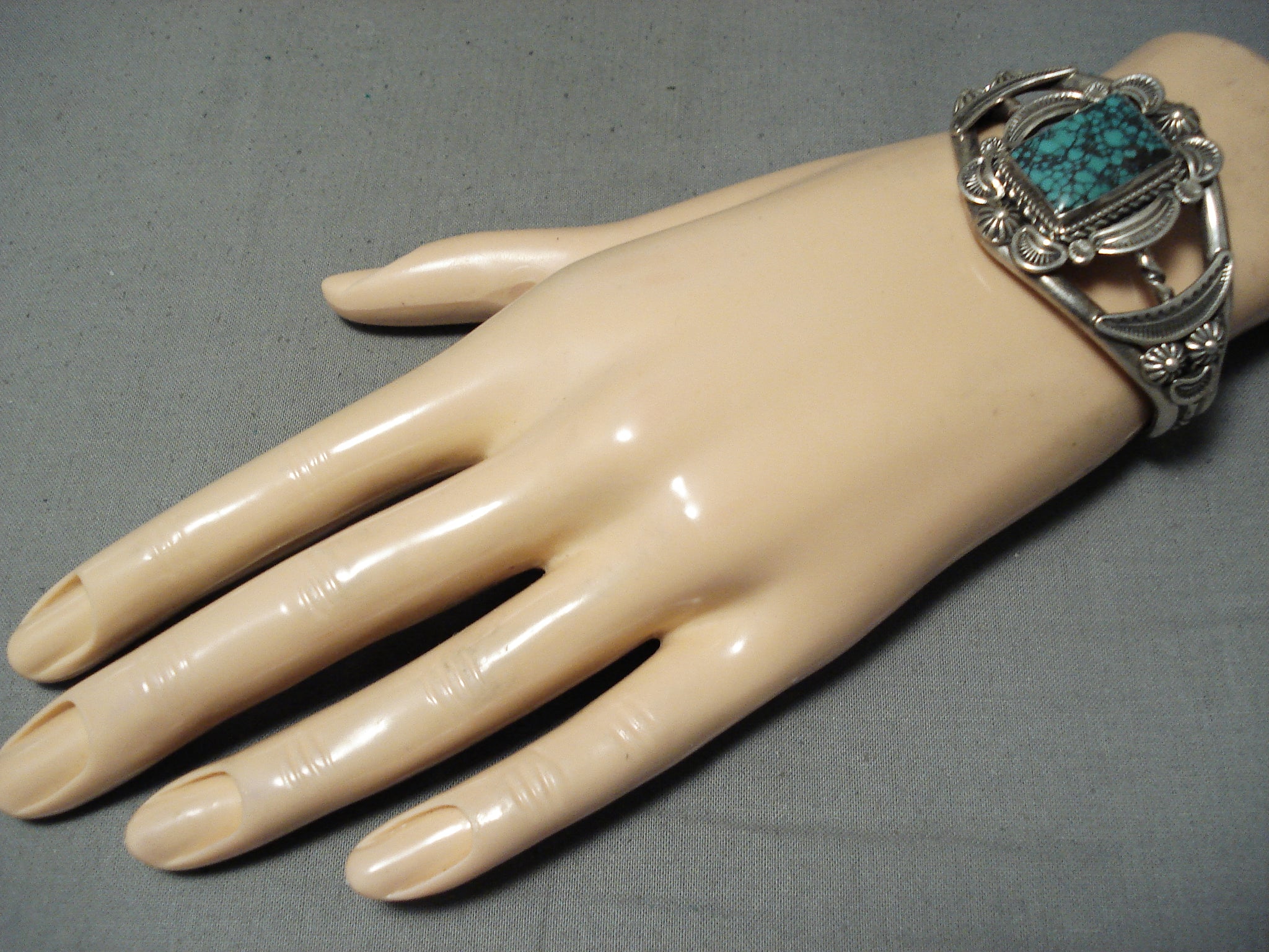 Native American Important Vintage Emma Linkin Turquoise Sterling Silver Bracelet