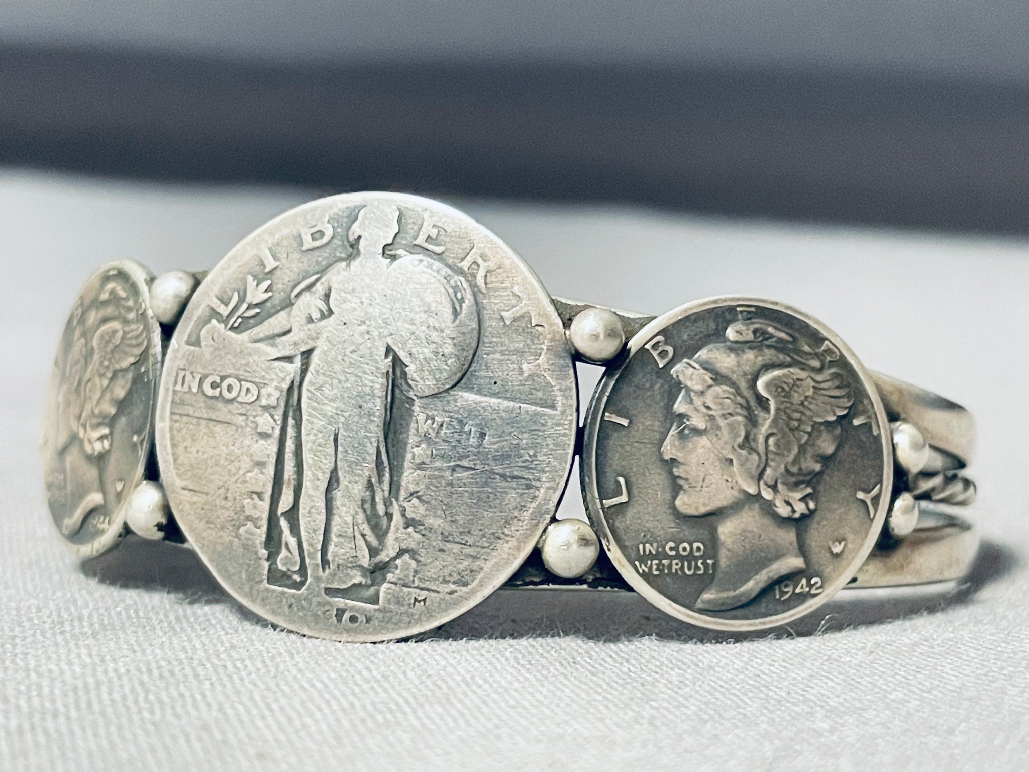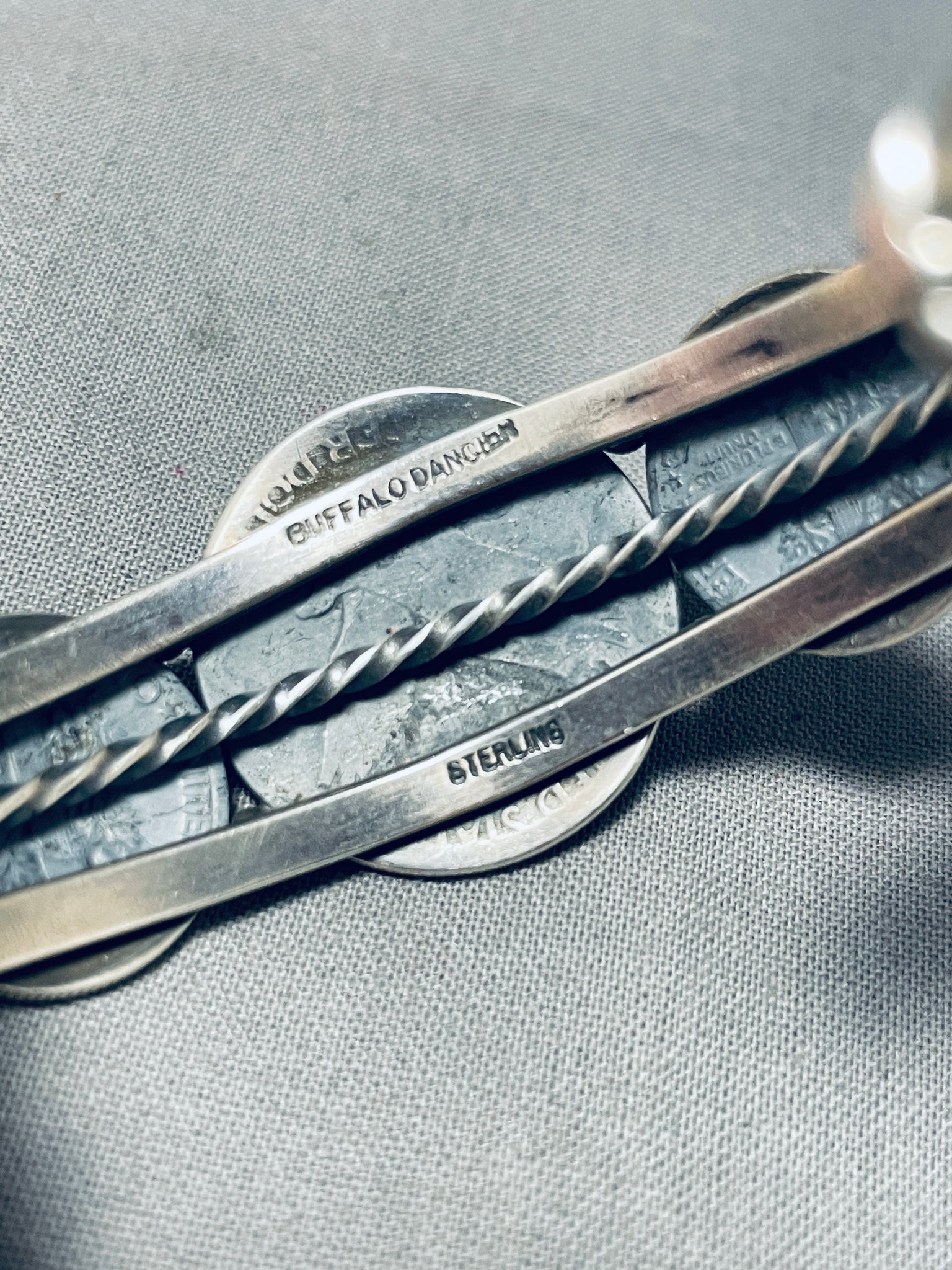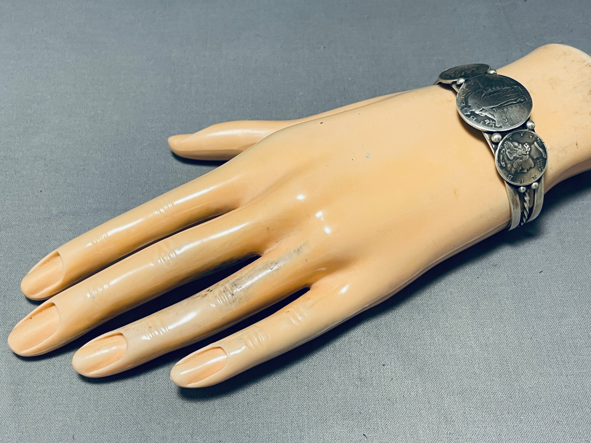 Native American Incredible Vintage Southwest Sterling Silver Coin Bracelet