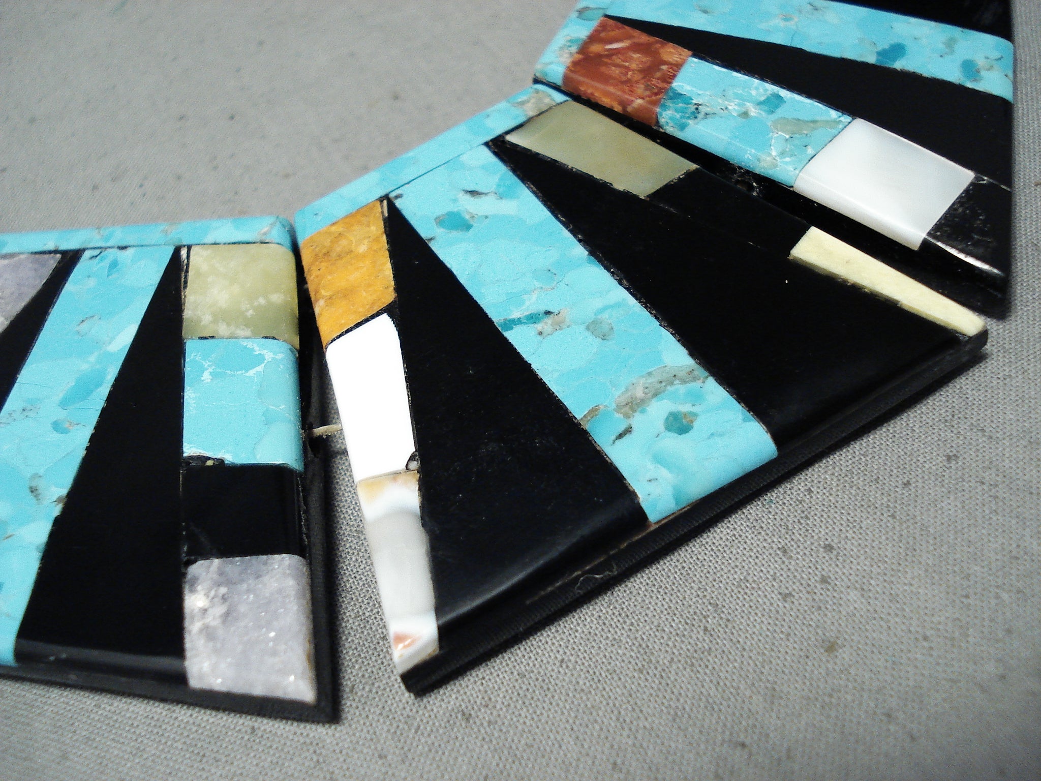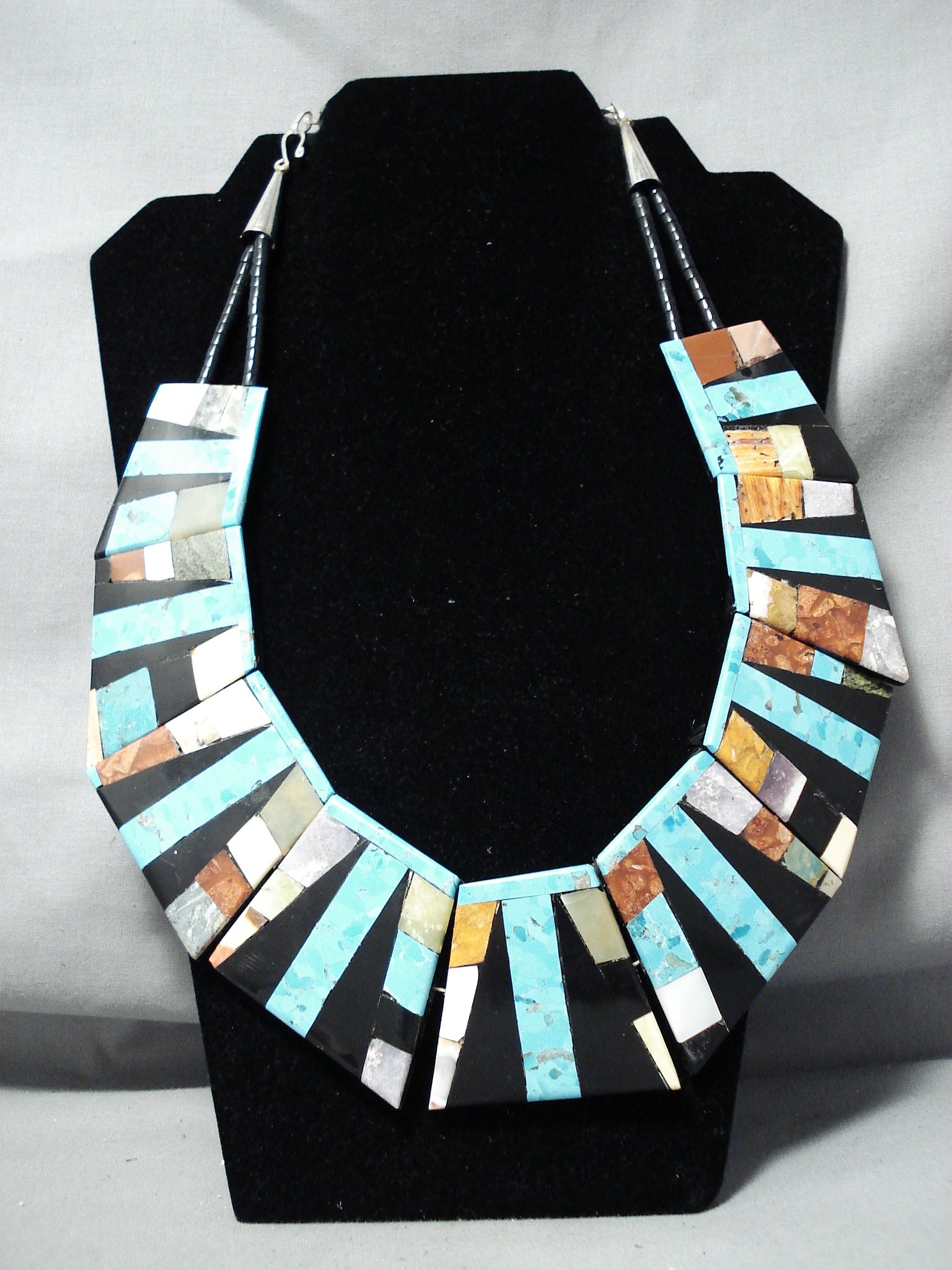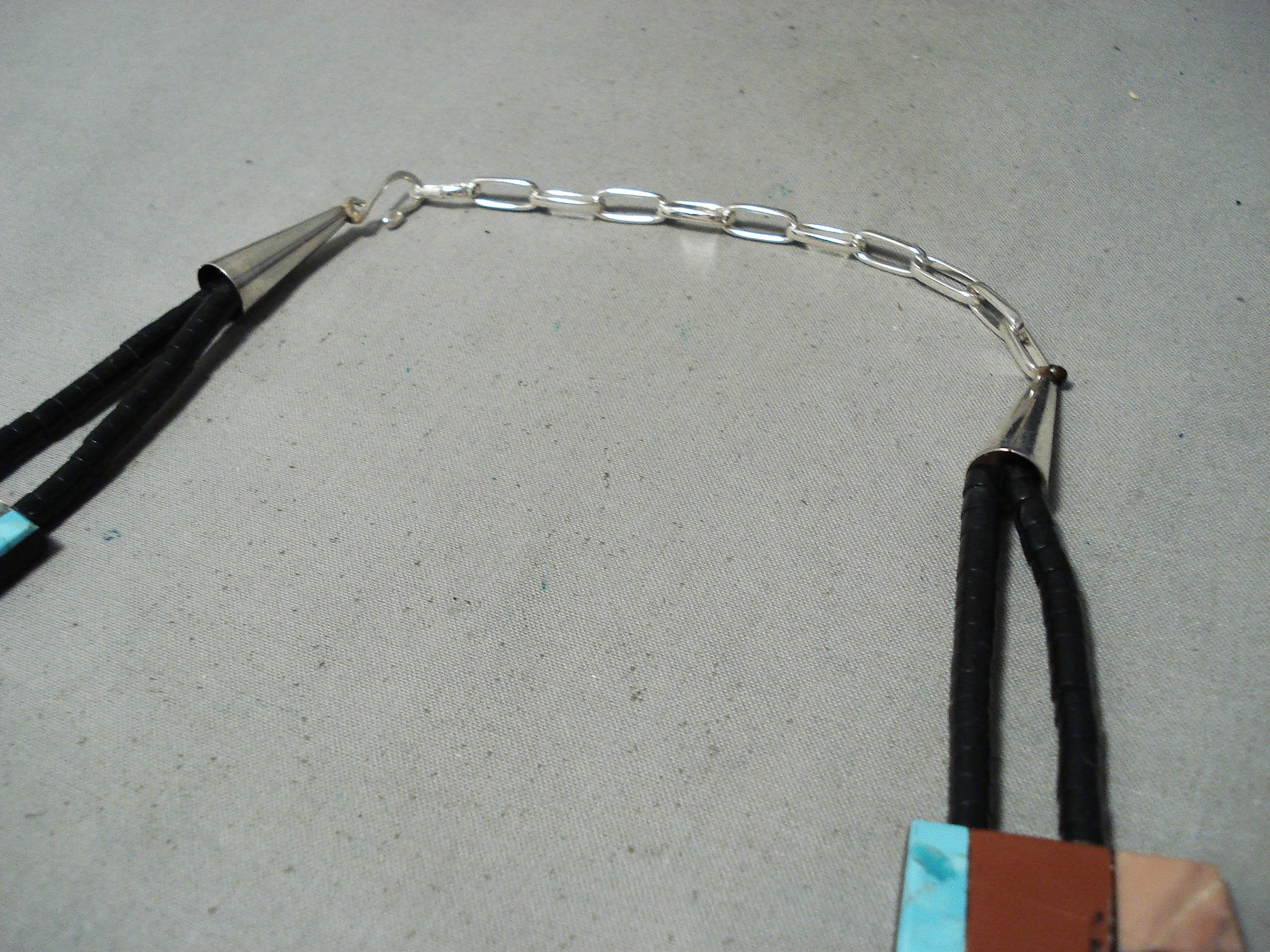 Native American Intricate Huge Detailed Santo Domingo Turquoise Sterling Silver Necklace