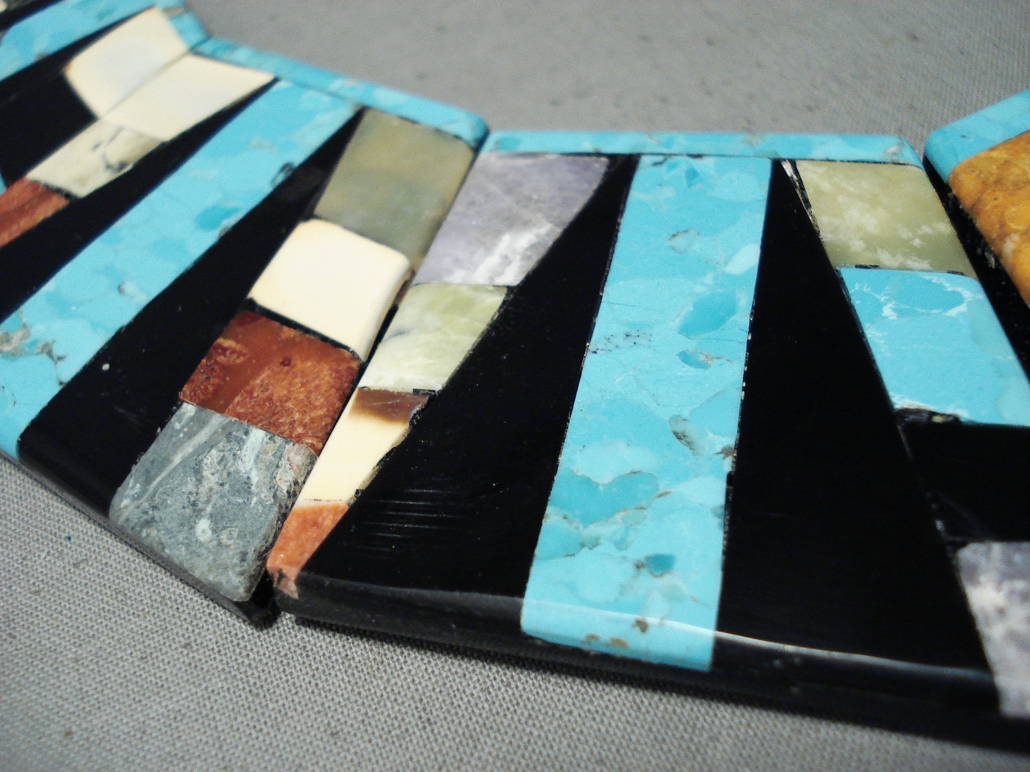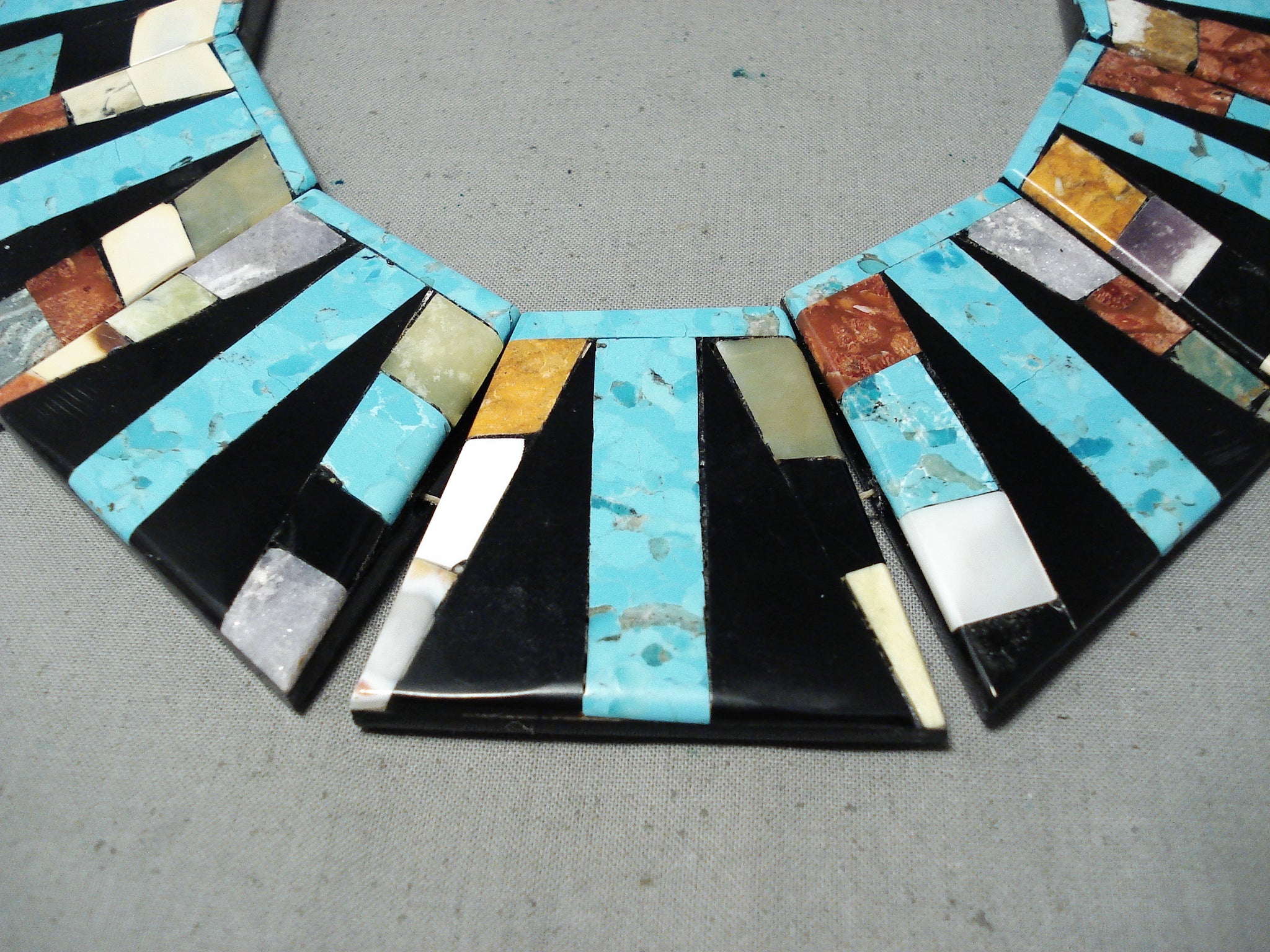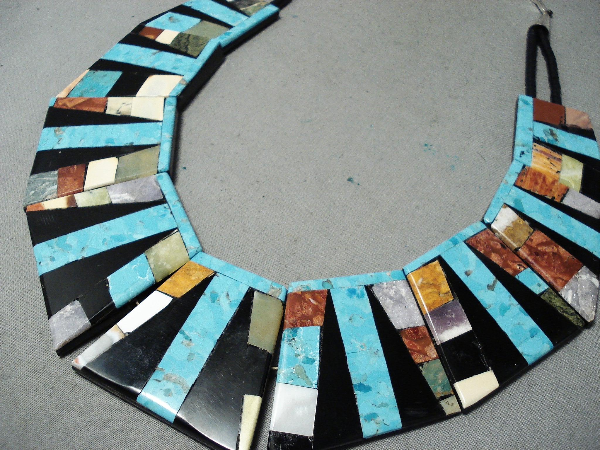 Native American Intricate Huge Detailed Santo Domingo Turquoise Sterling Silver Necklace