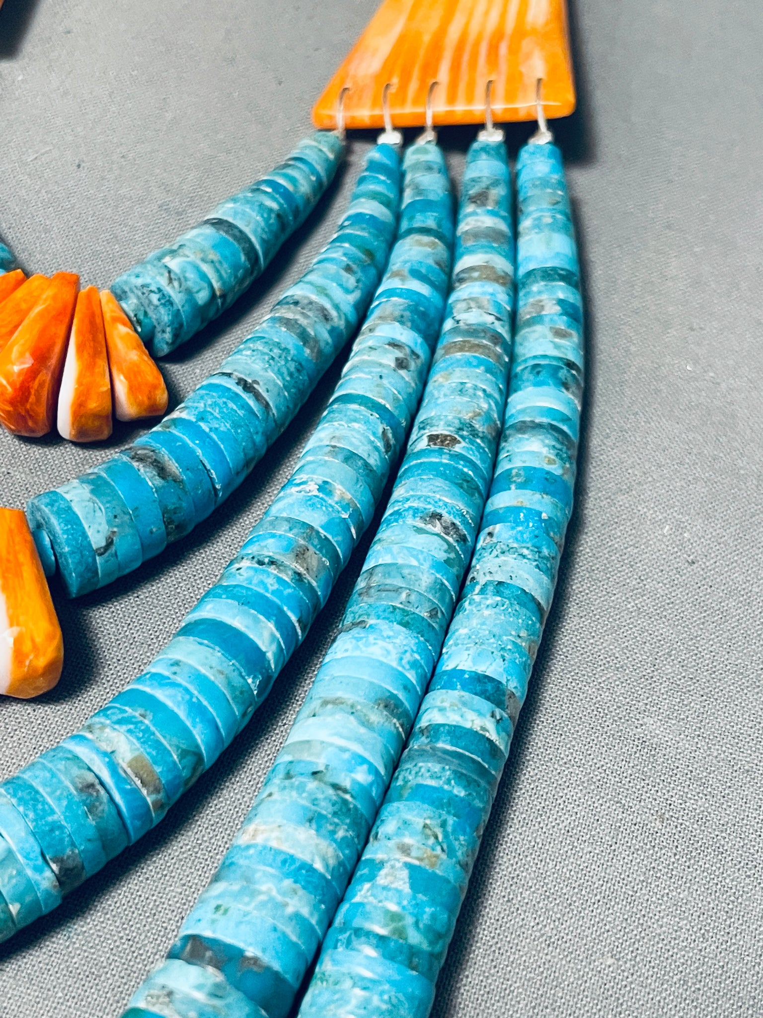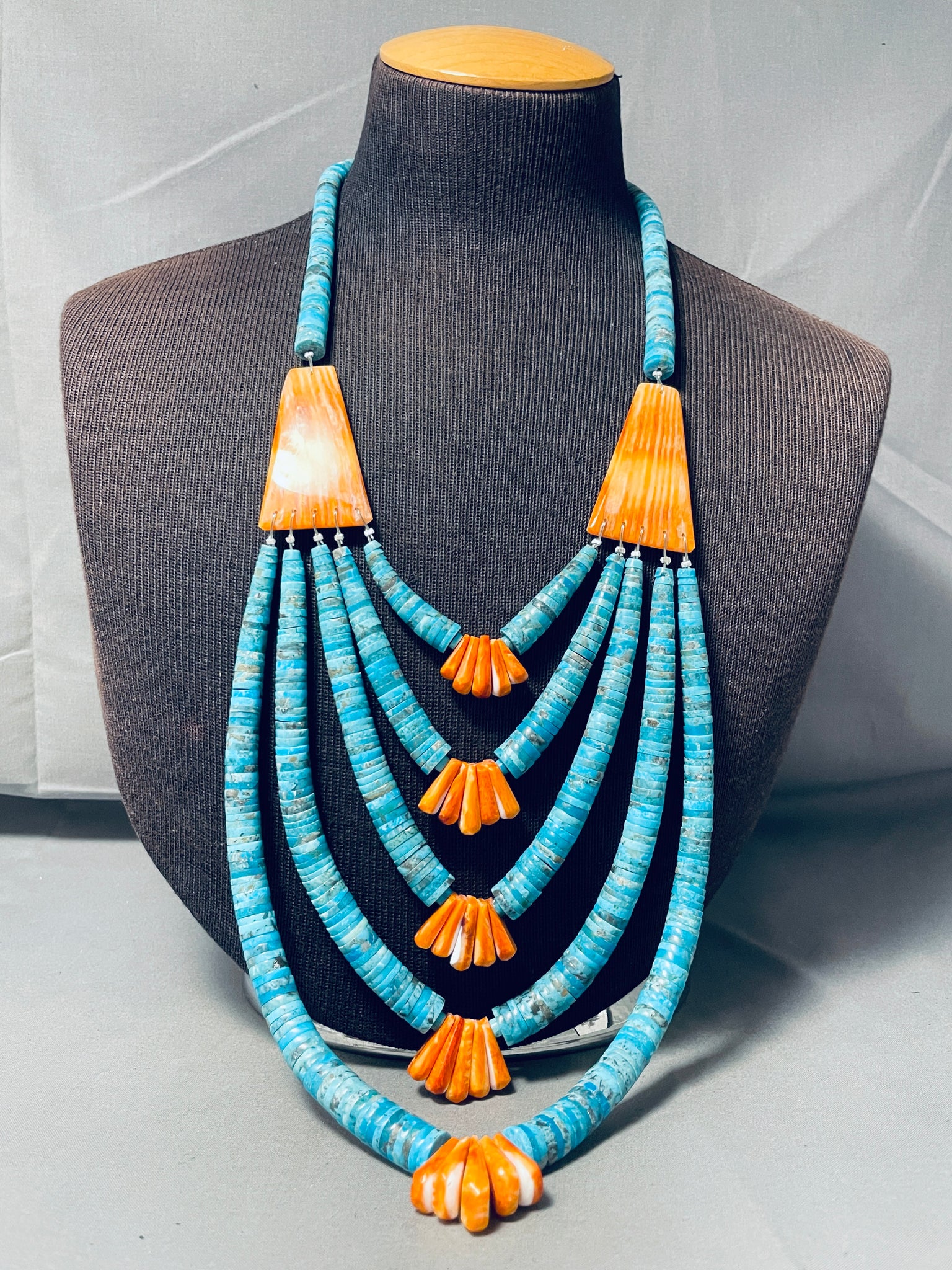 Native American Mind Blowing 5 Tier Santo Domingo Turquoise Sterling Silver Necklace
