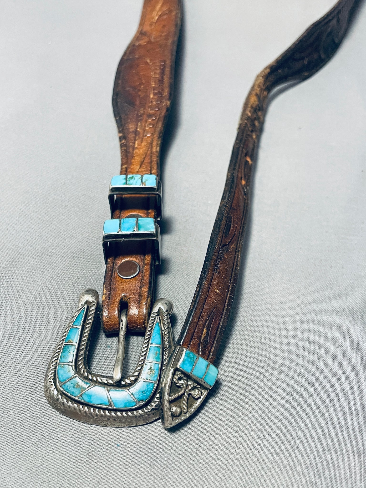 Native American Museum Vintage Zuni Turquoise Inlay Sterling Silver Ranger Belt Old