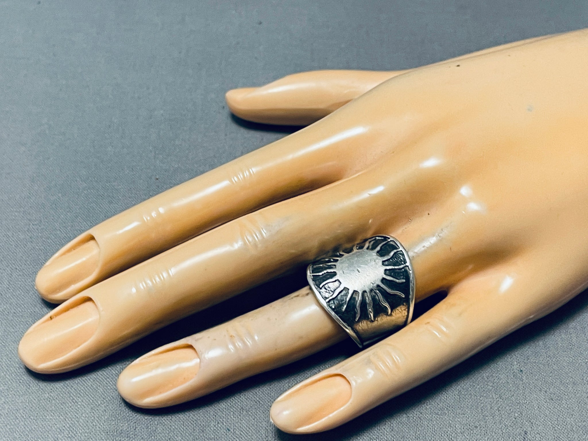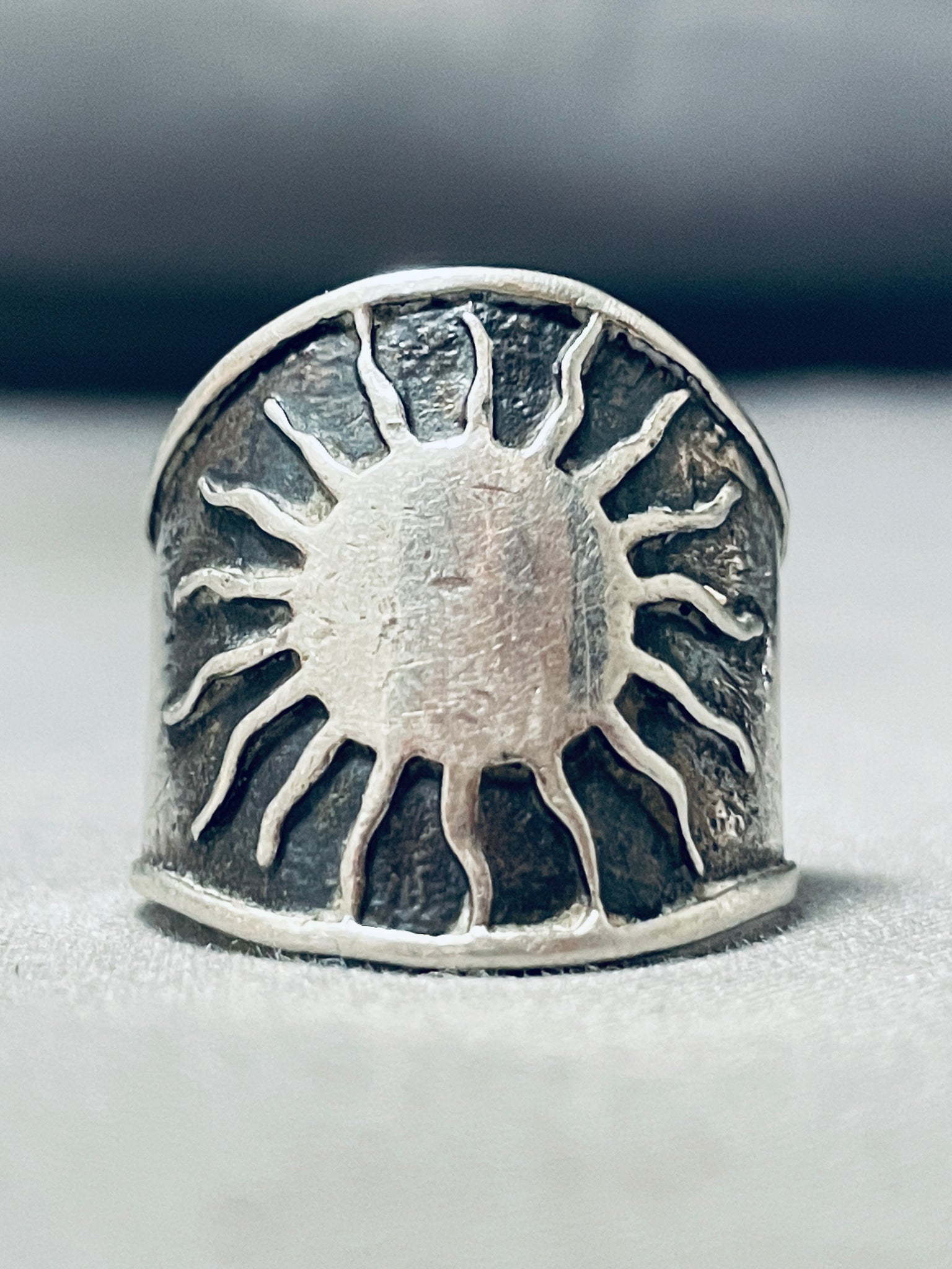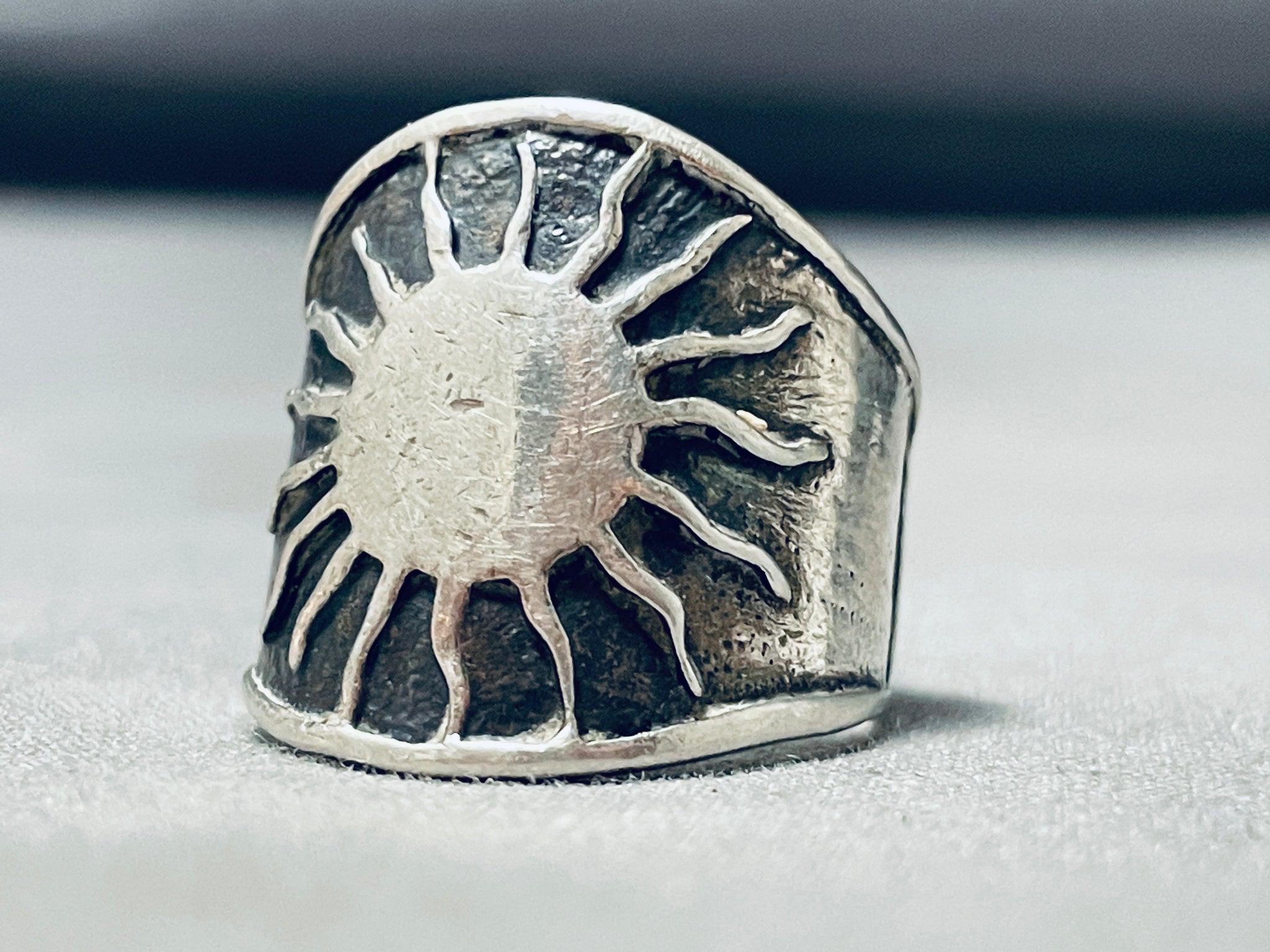 Native American Nel Fred Vintage Navajo Sun Sterling Silver Thick Ring