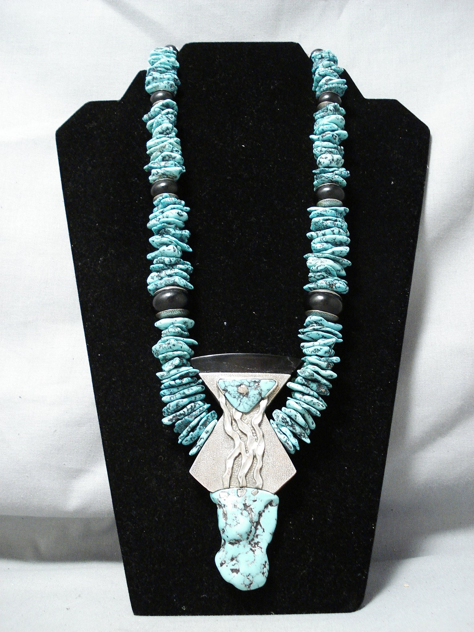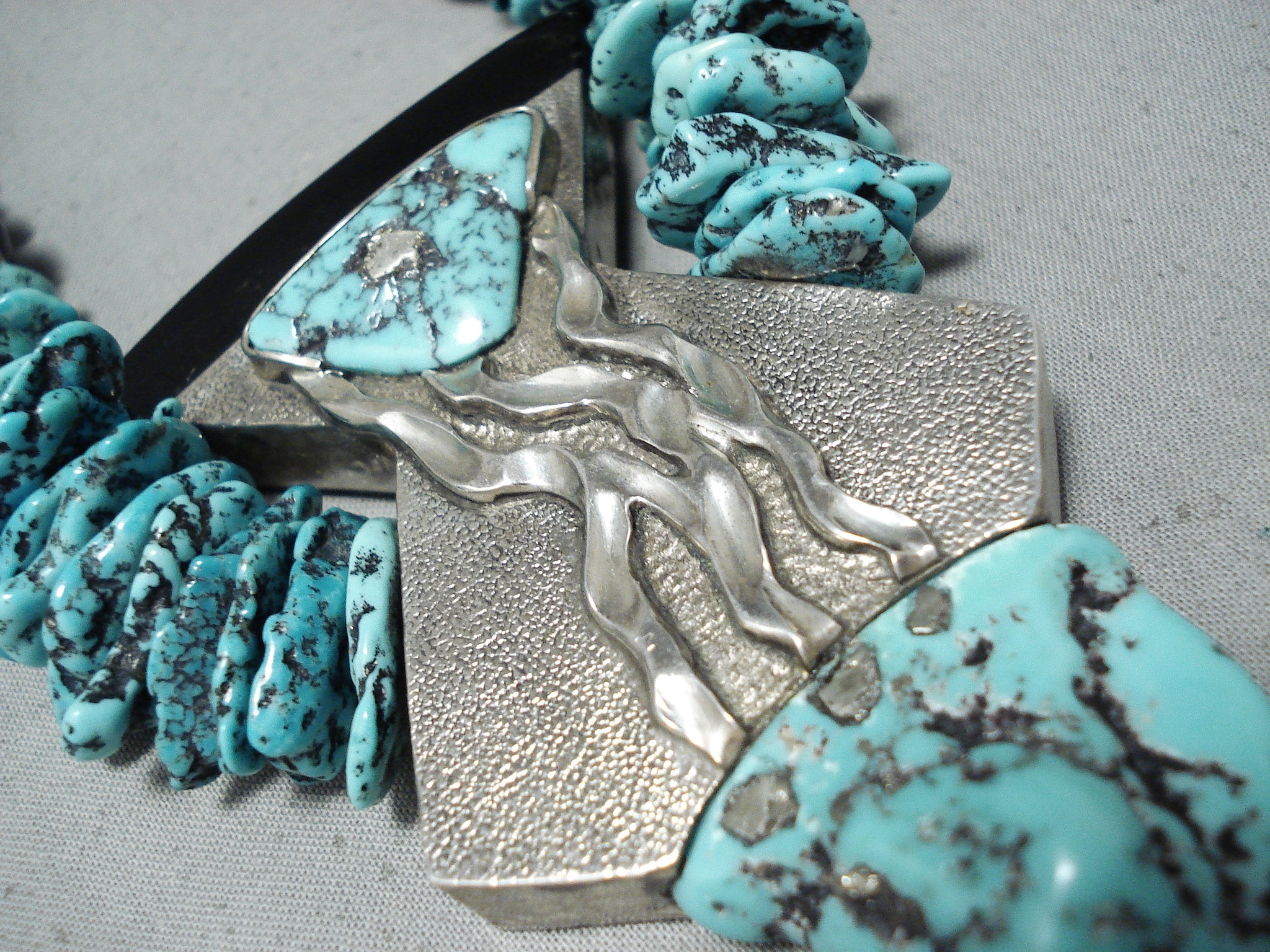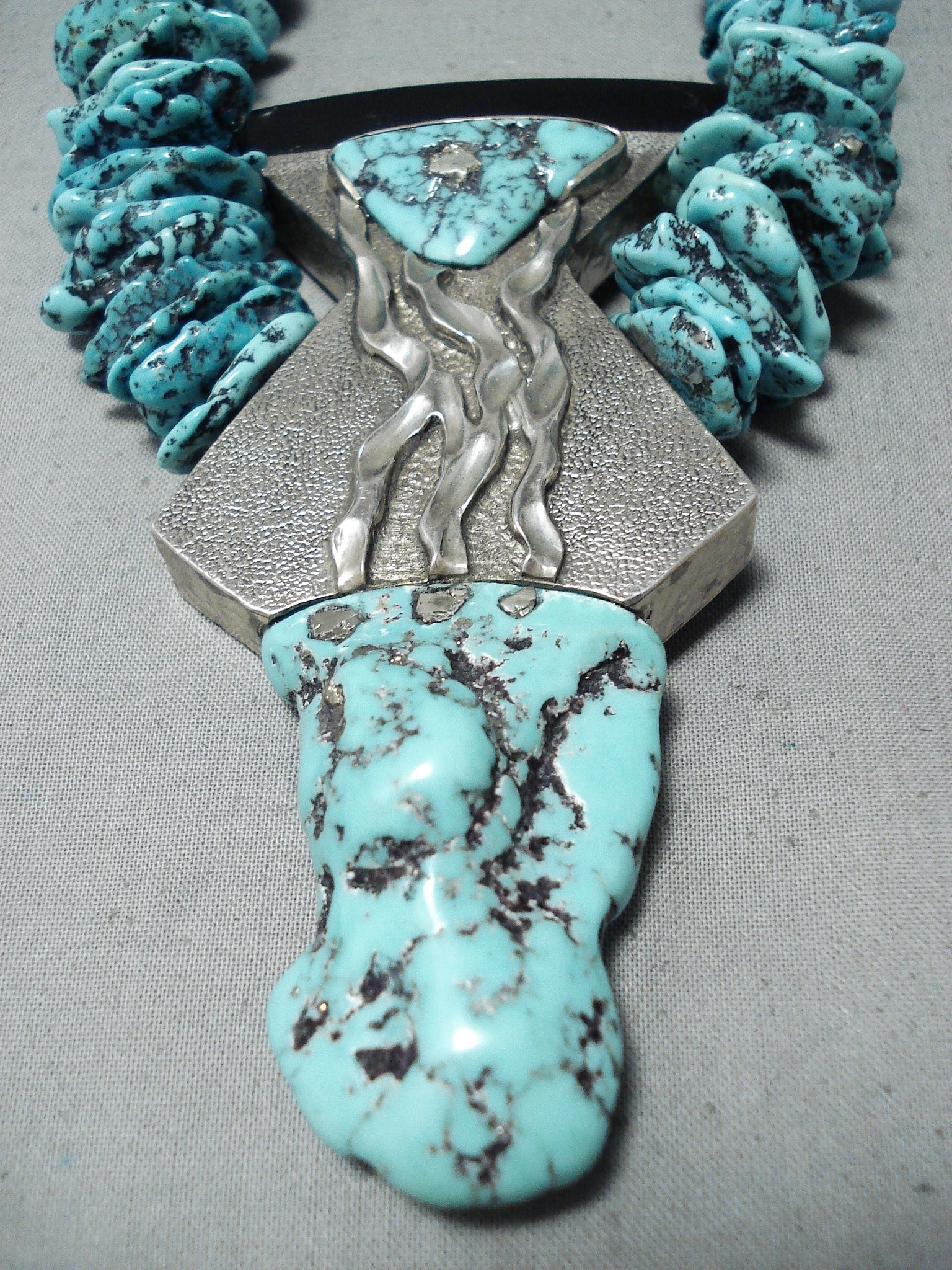 Native American One Of Biggest Best Vintage Nativew American Turquoise Sterling Silver Necklace