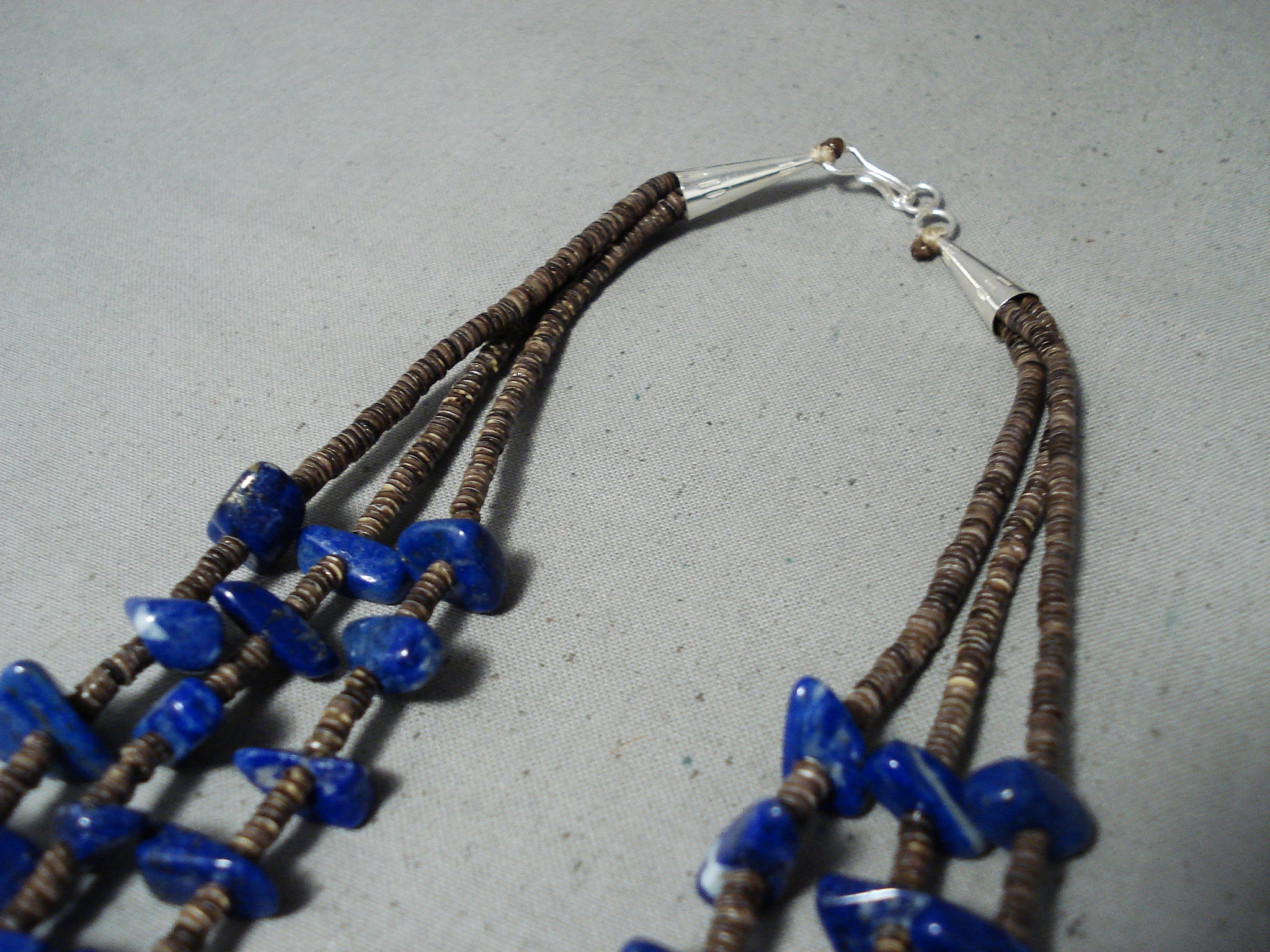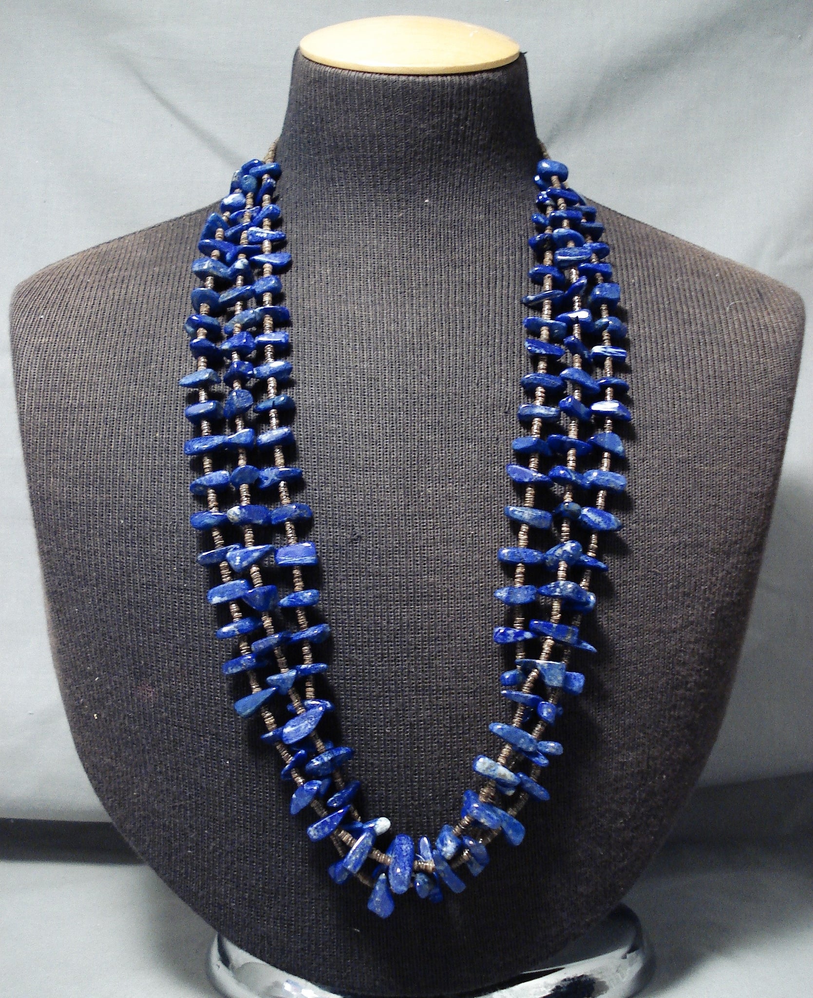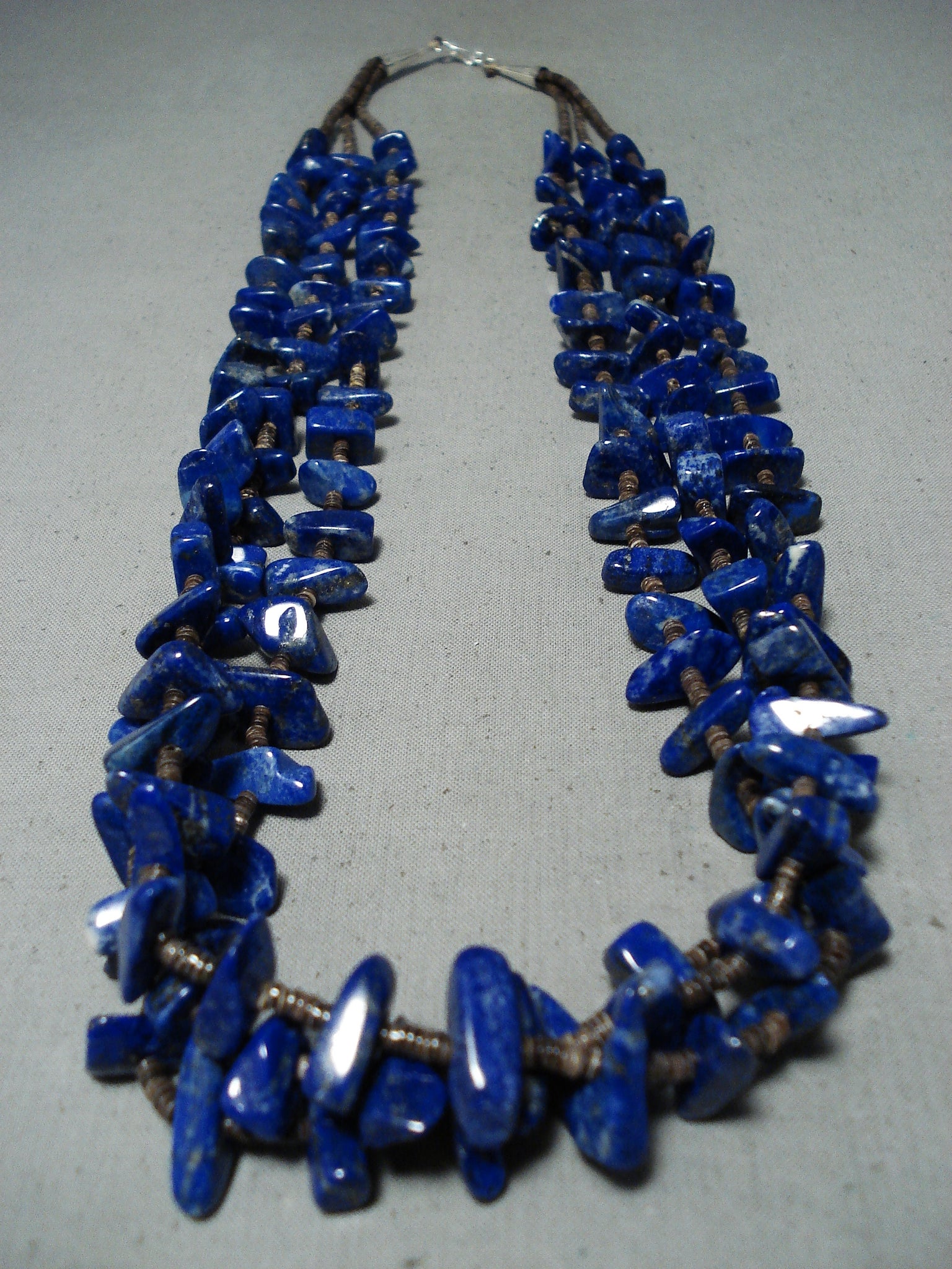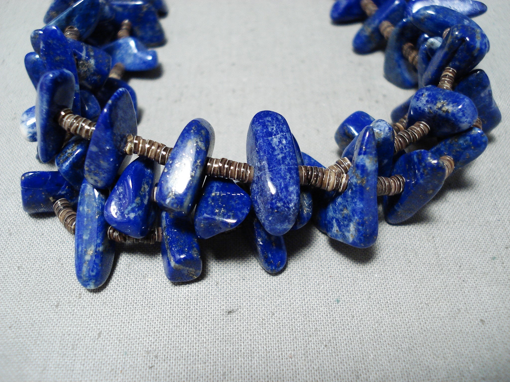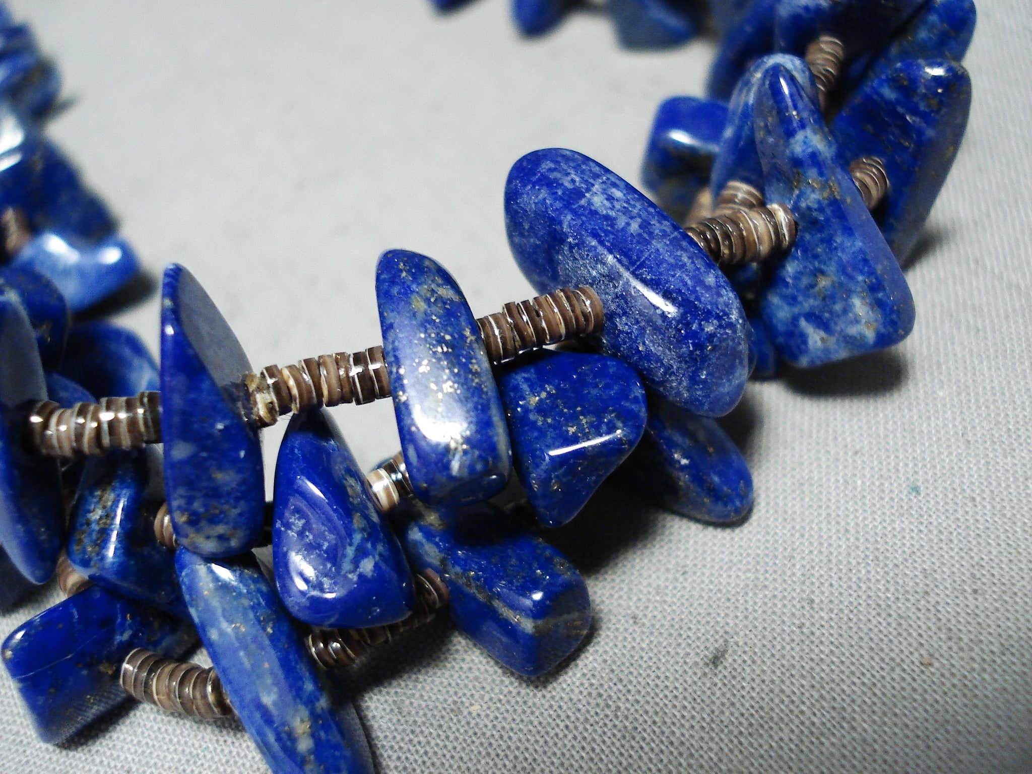 Native American One Of The Best Navajo Lapis Sterling Silver Necklace