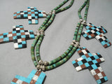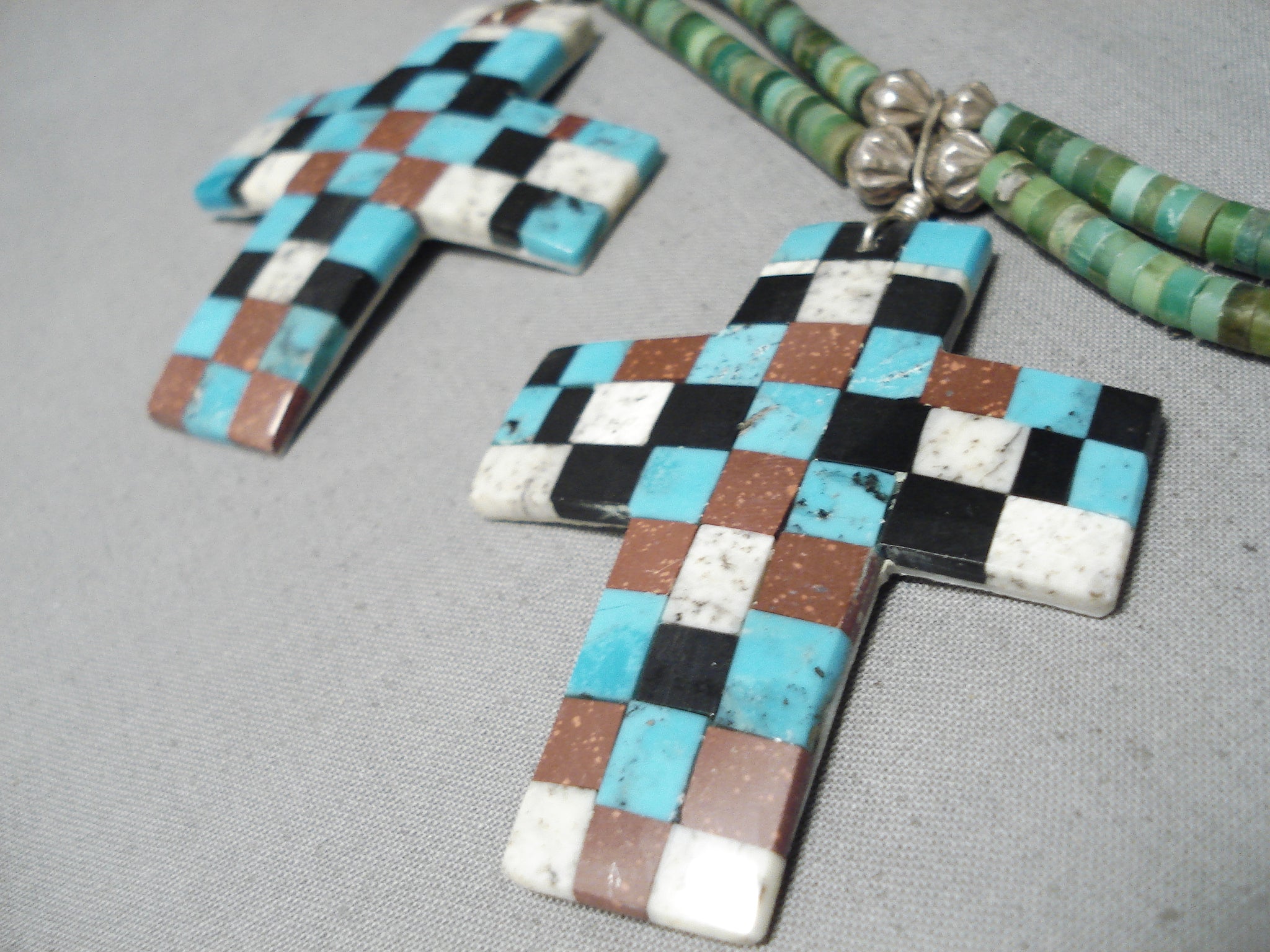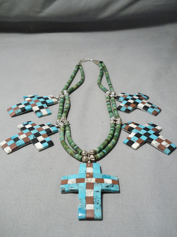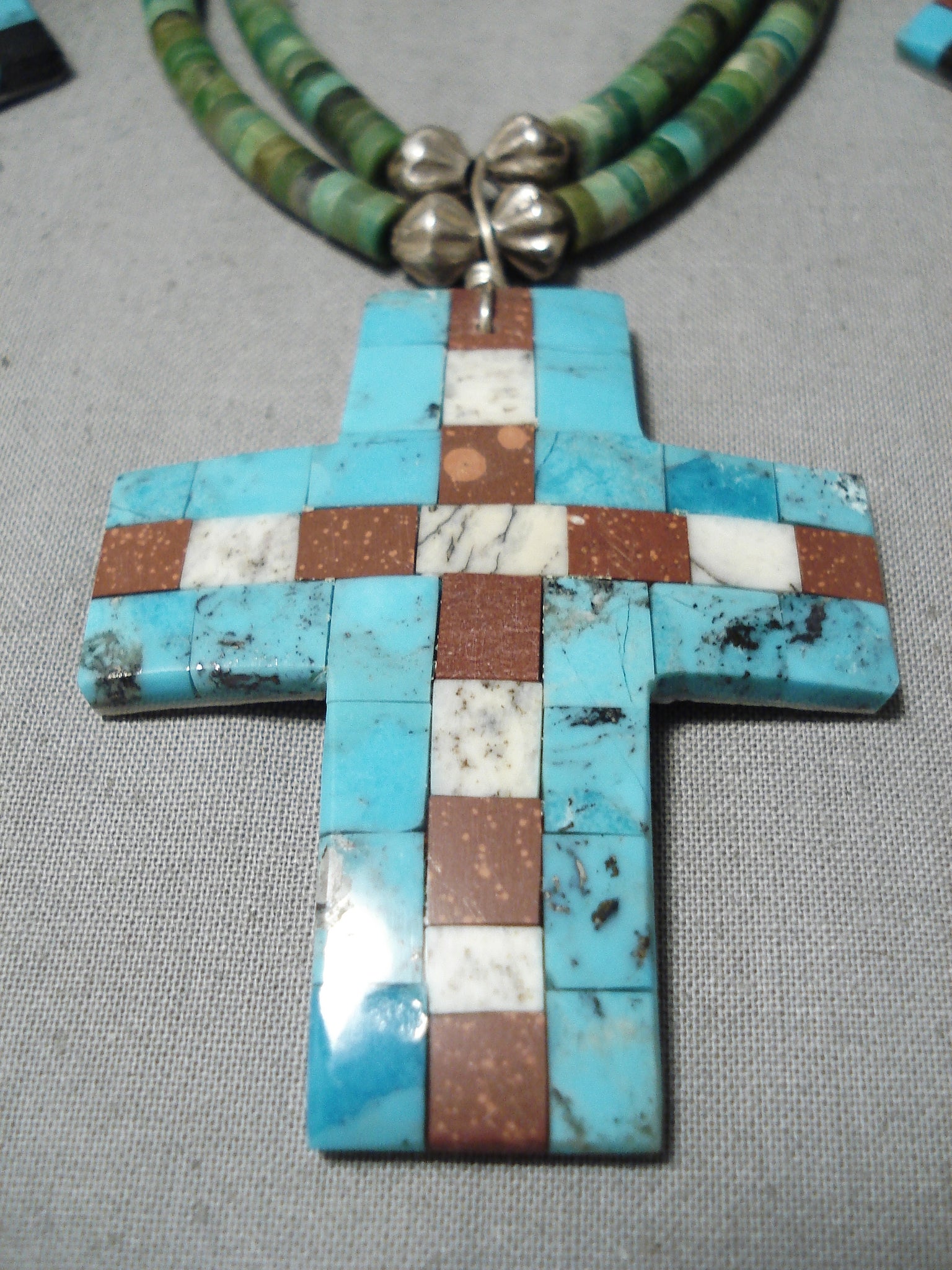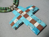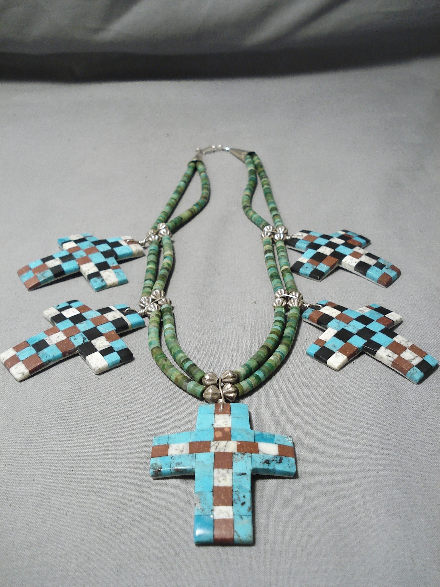 Native American One Of The Best Vintage Santo Domingo Turquoise Cross Sterling Silver Necklace