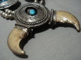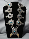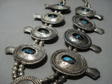 Native American Jewelry Opulent Vintage Bisbee Turquoise Sterling Silver Squash Blossom Necklace Old