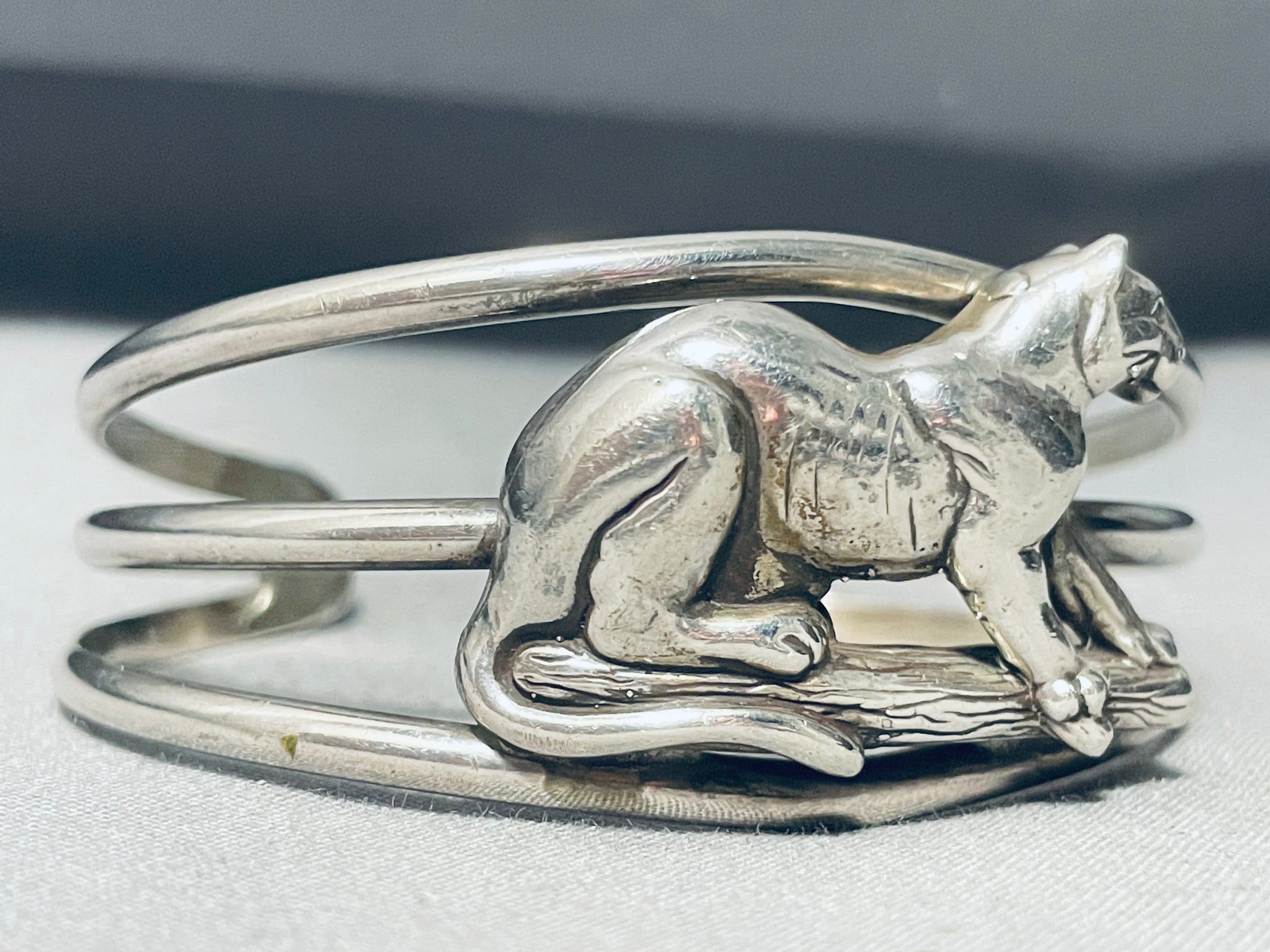Panther Amazing Vintage Southwest Sterling Silver Bracelet