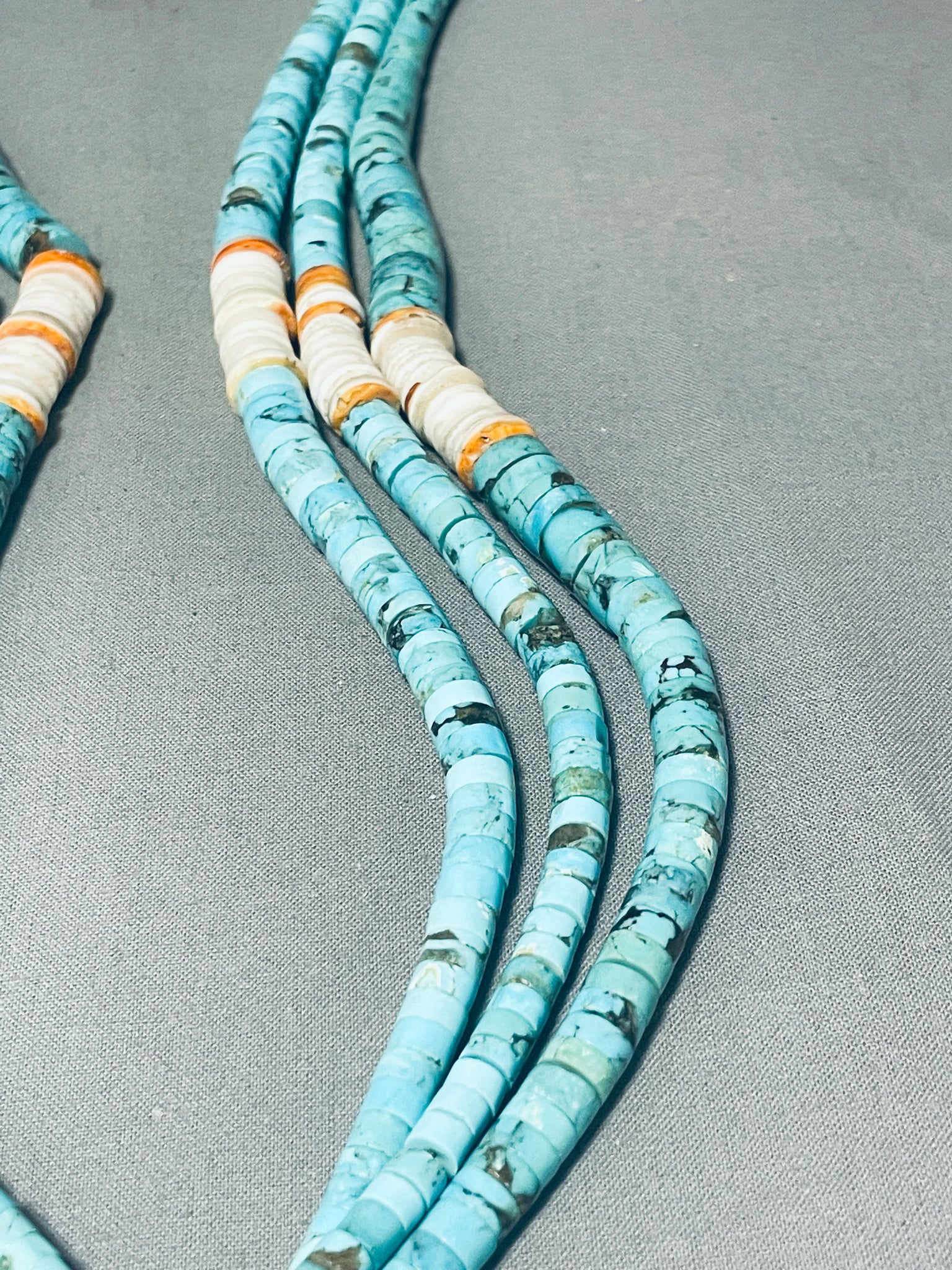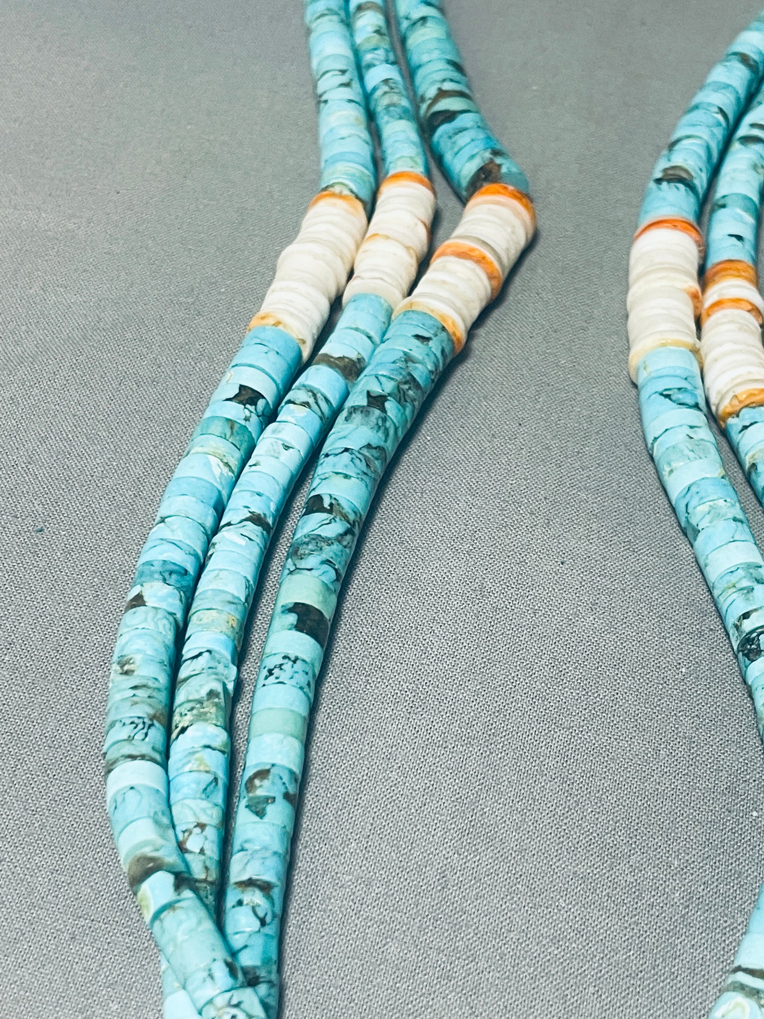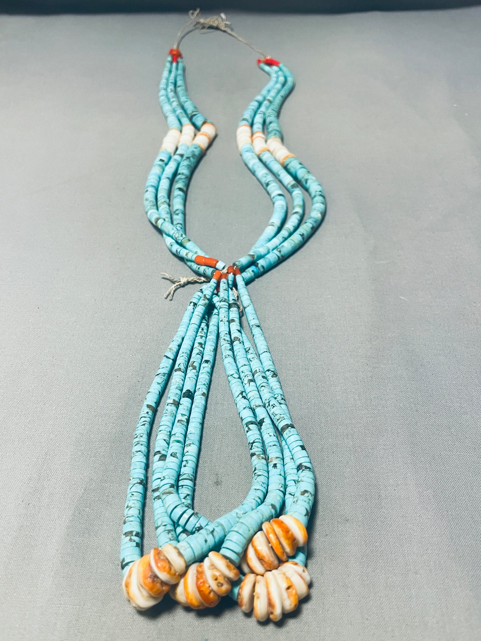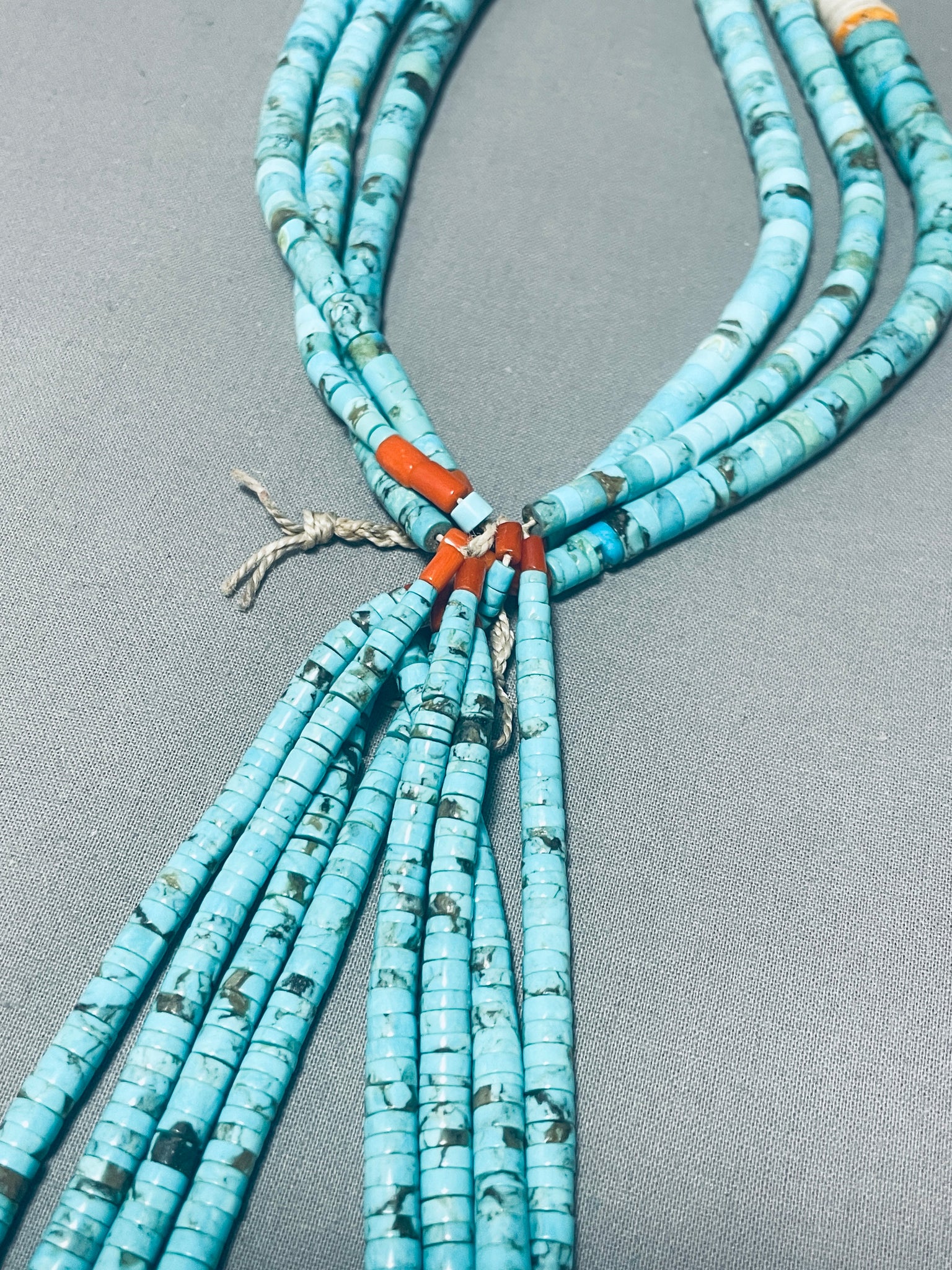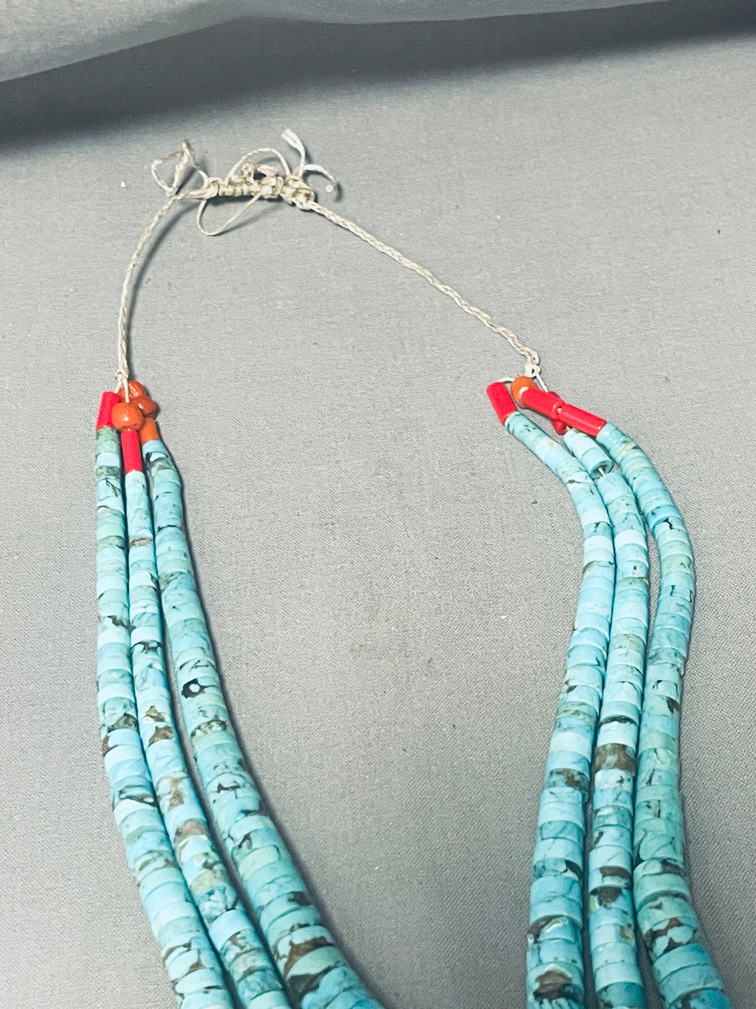 Native American Rare Quadruple Jacla Vintage Navajo Turquoise Heishi Necklace Old