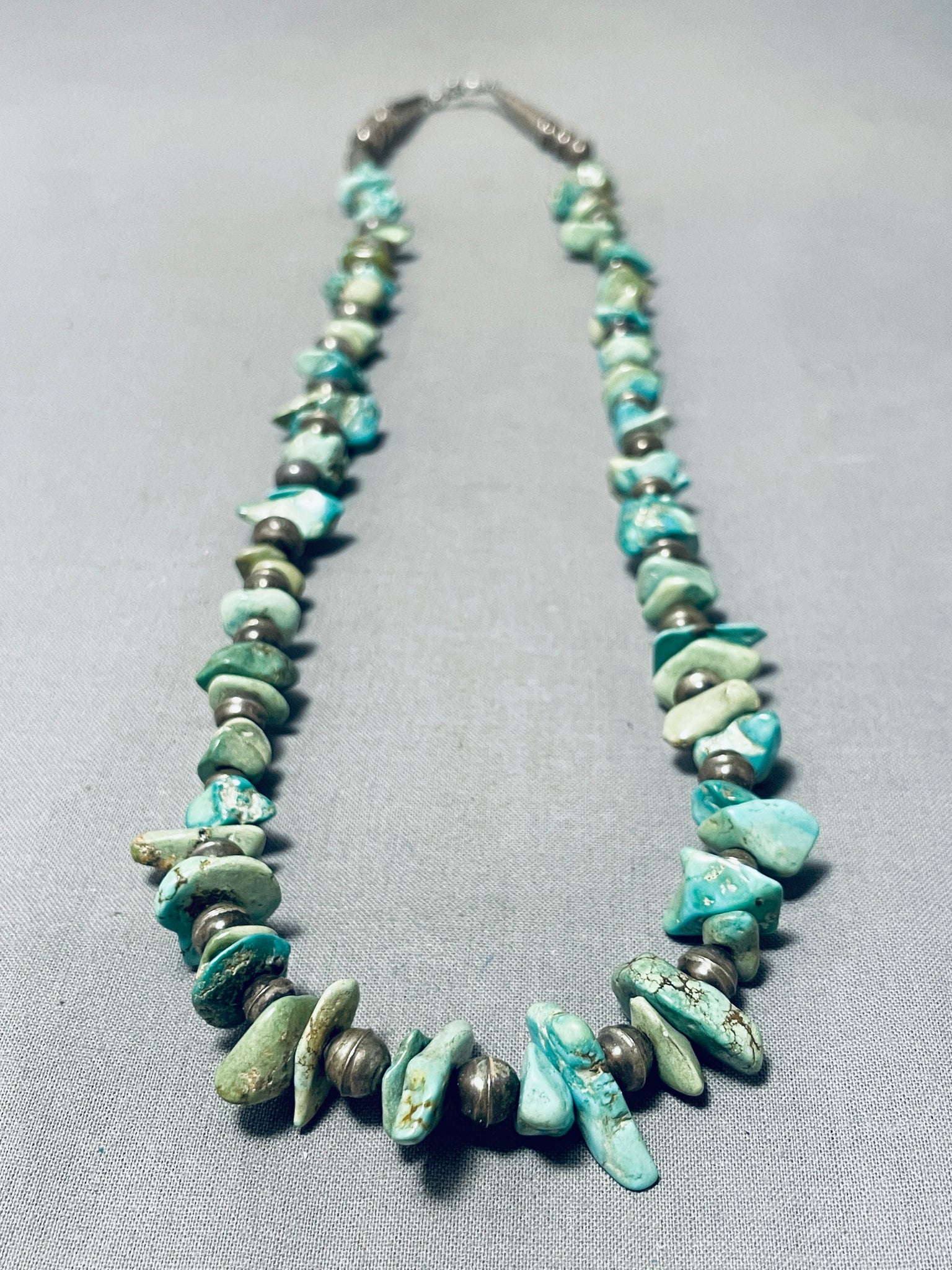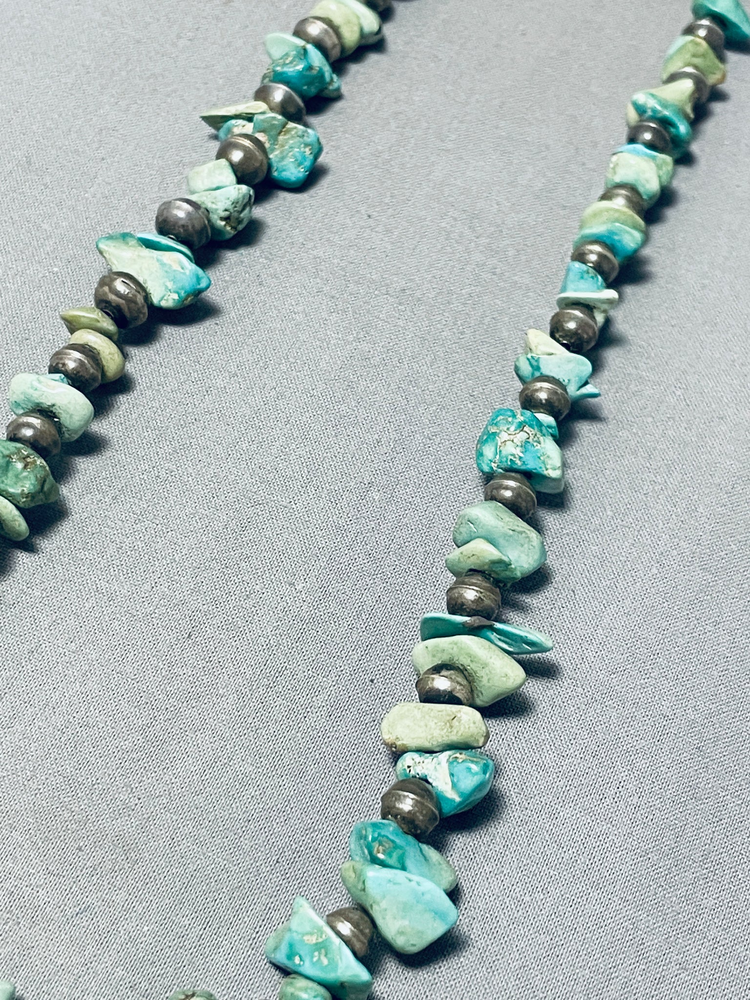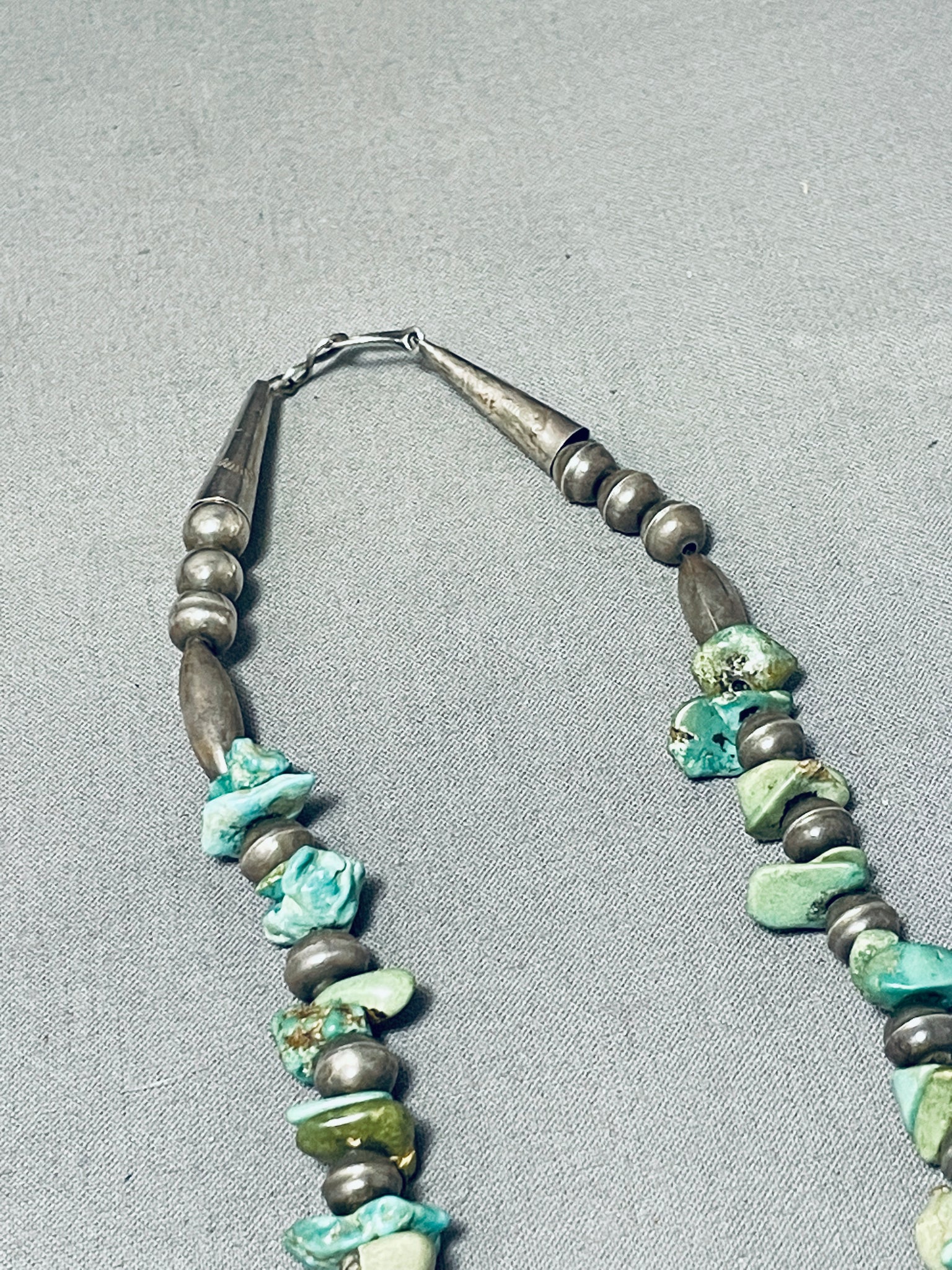 Native American Rare Vintage Hand Hammered Sterling Silver Bead Royston Turquoise Necklace