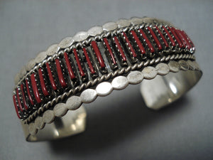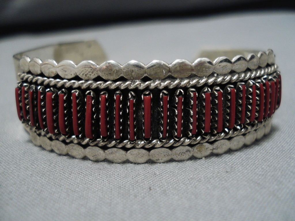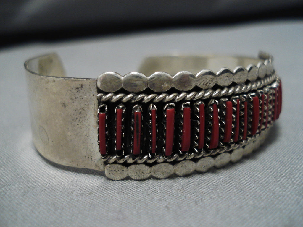 Native American Rare Vintage Johnny Yazzie Sterling Silver Needle Bracelet Cuff Old