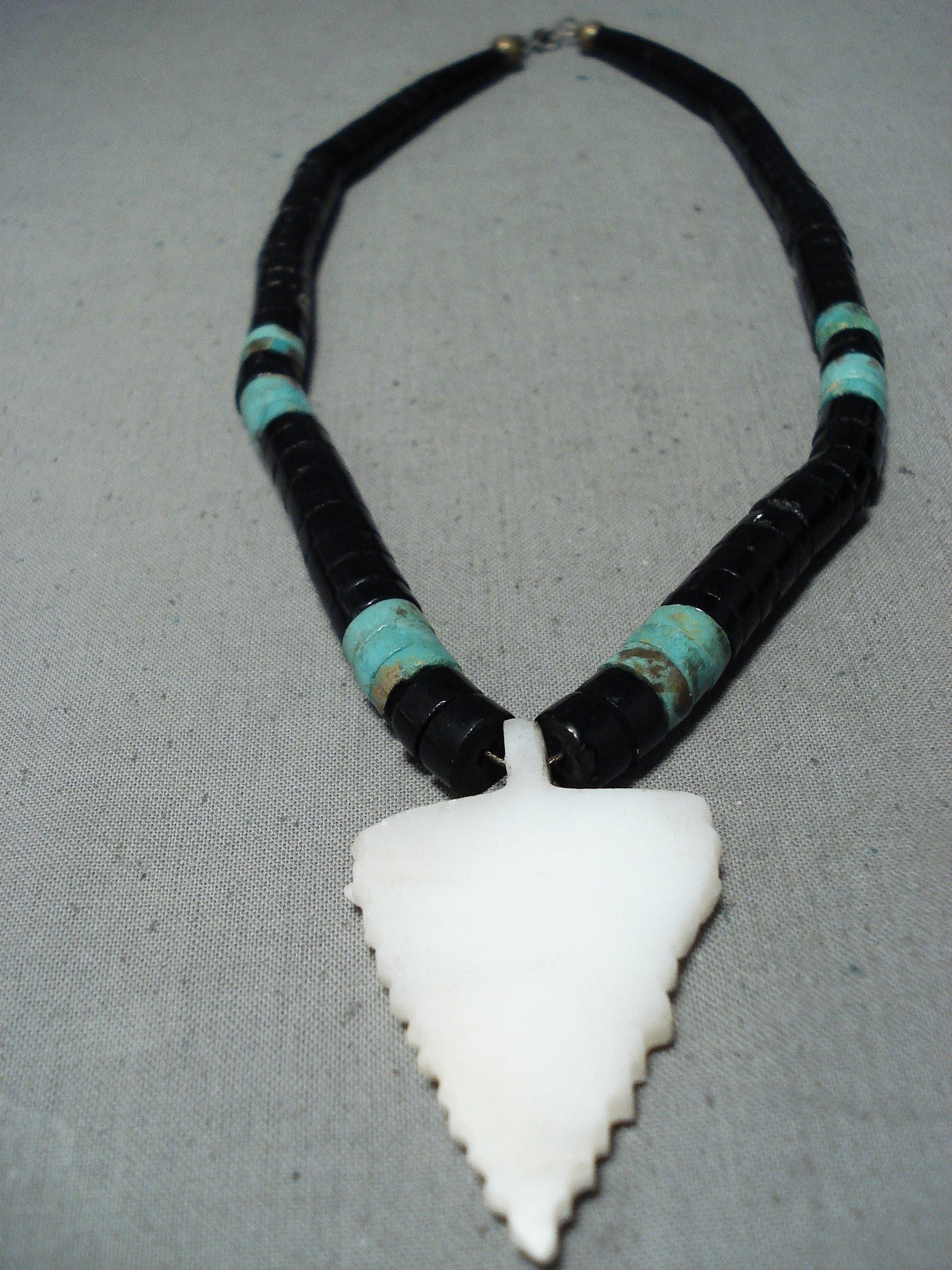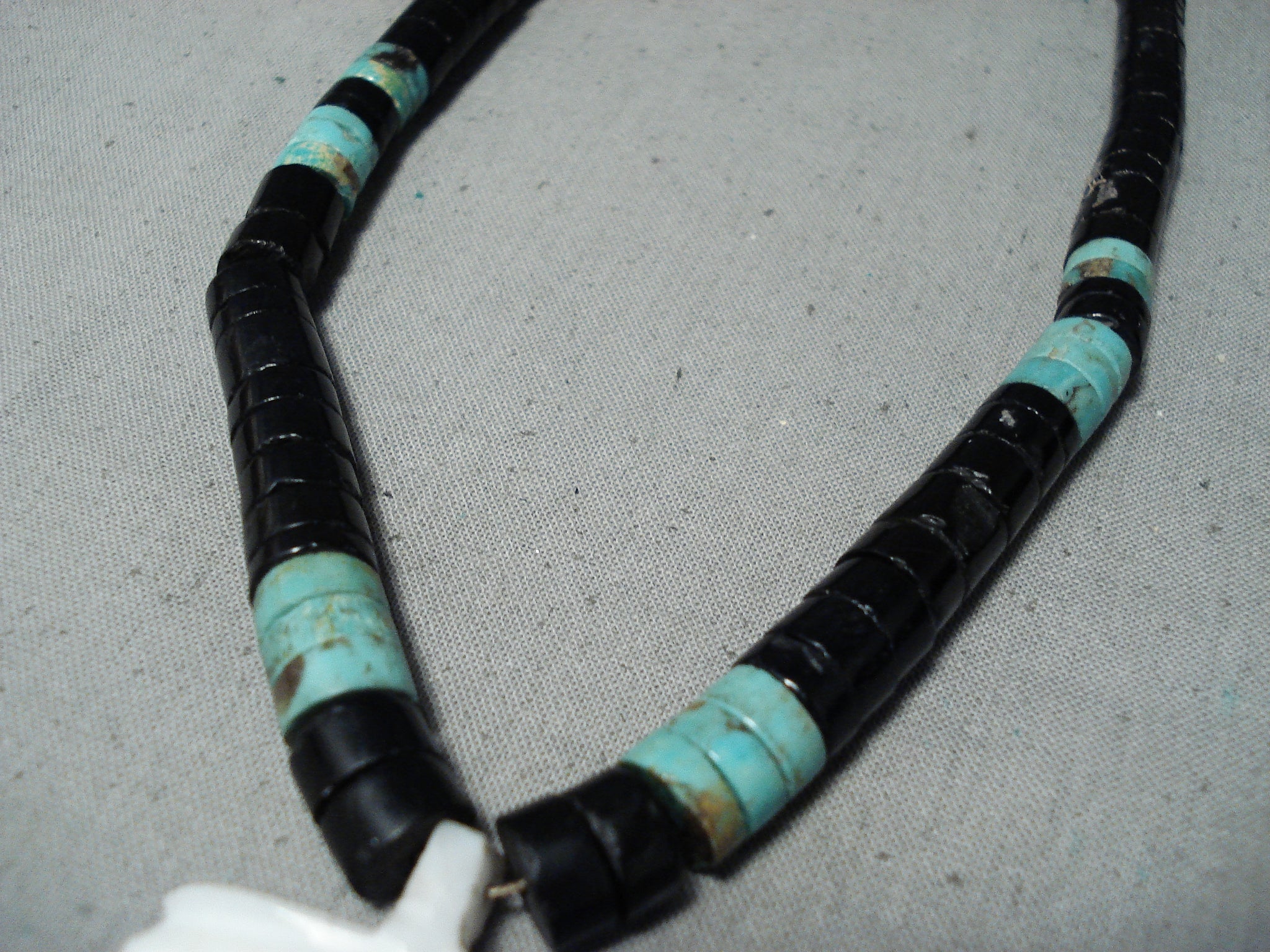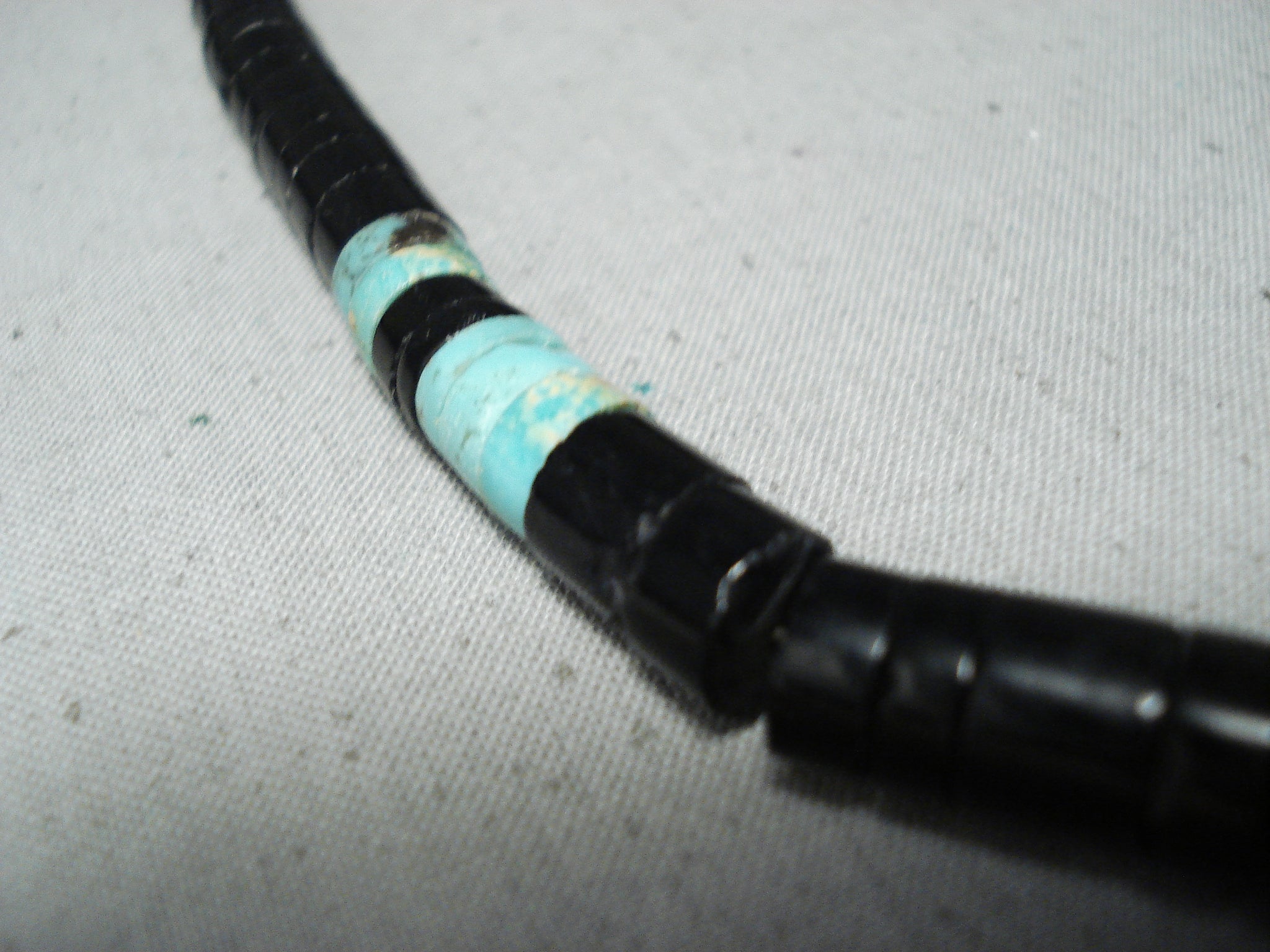 Native American Remarkable Vintage Navajo Turquoise Jet Mother Of Pearl Necklace