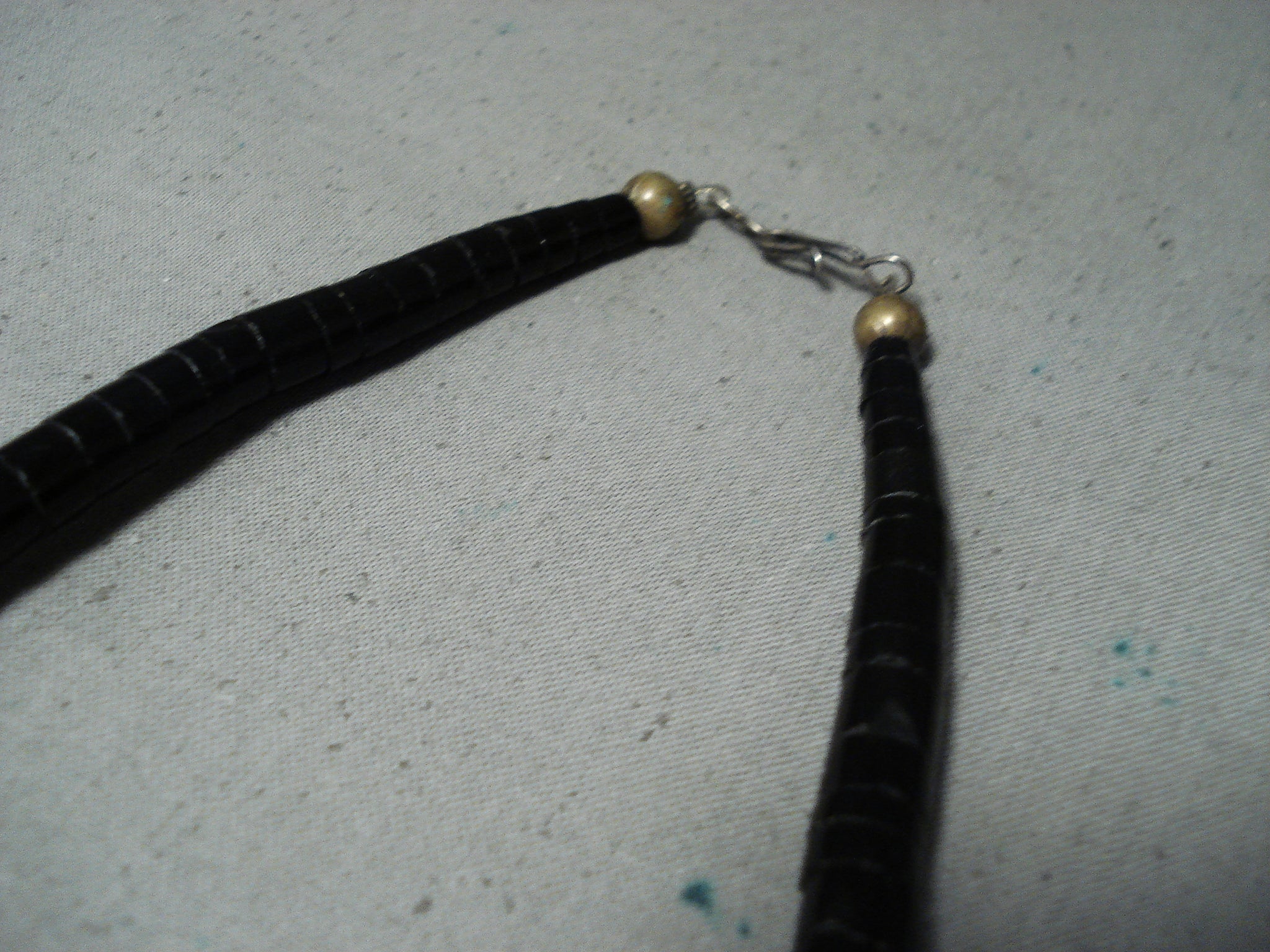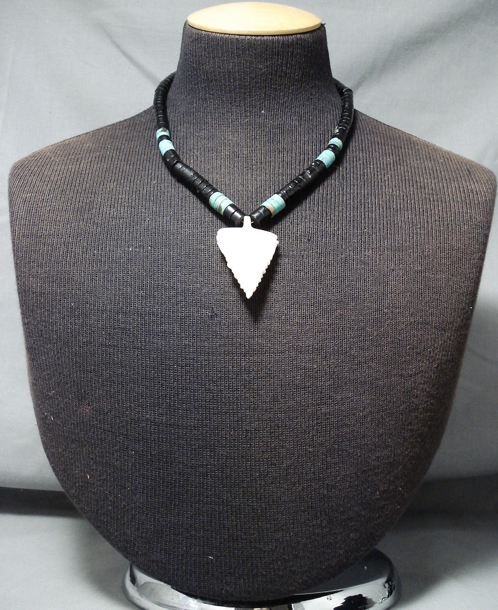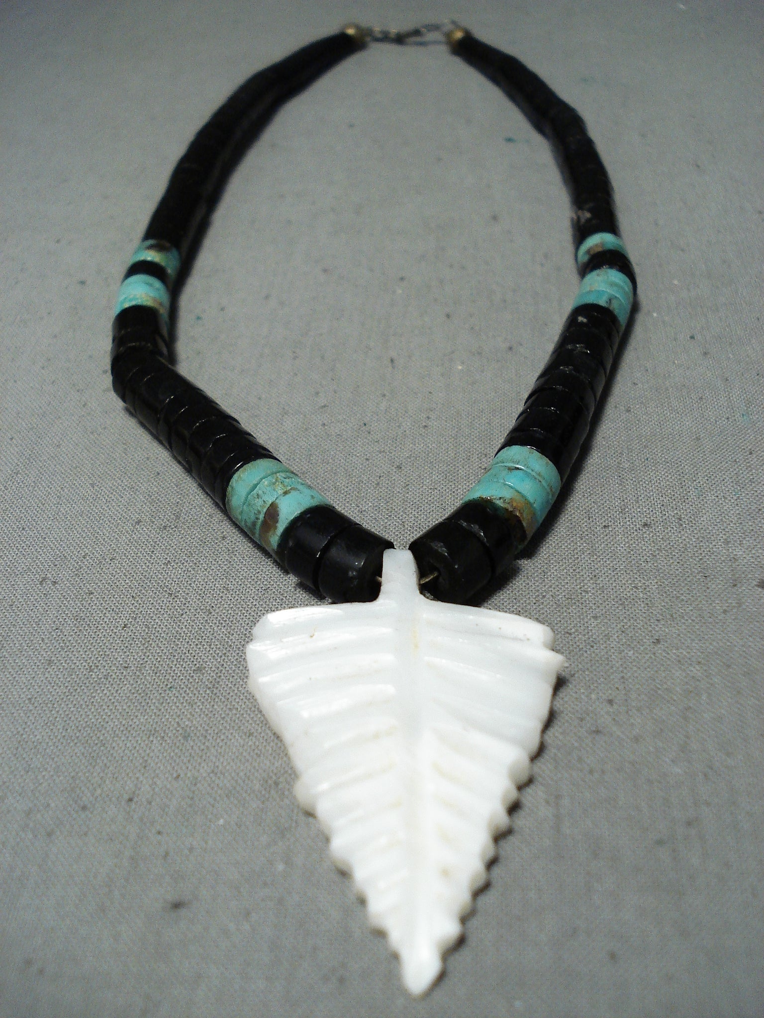 Native American Remarkable Vintage Navajo Turquoise Jet Mother Of Pearl Necklace