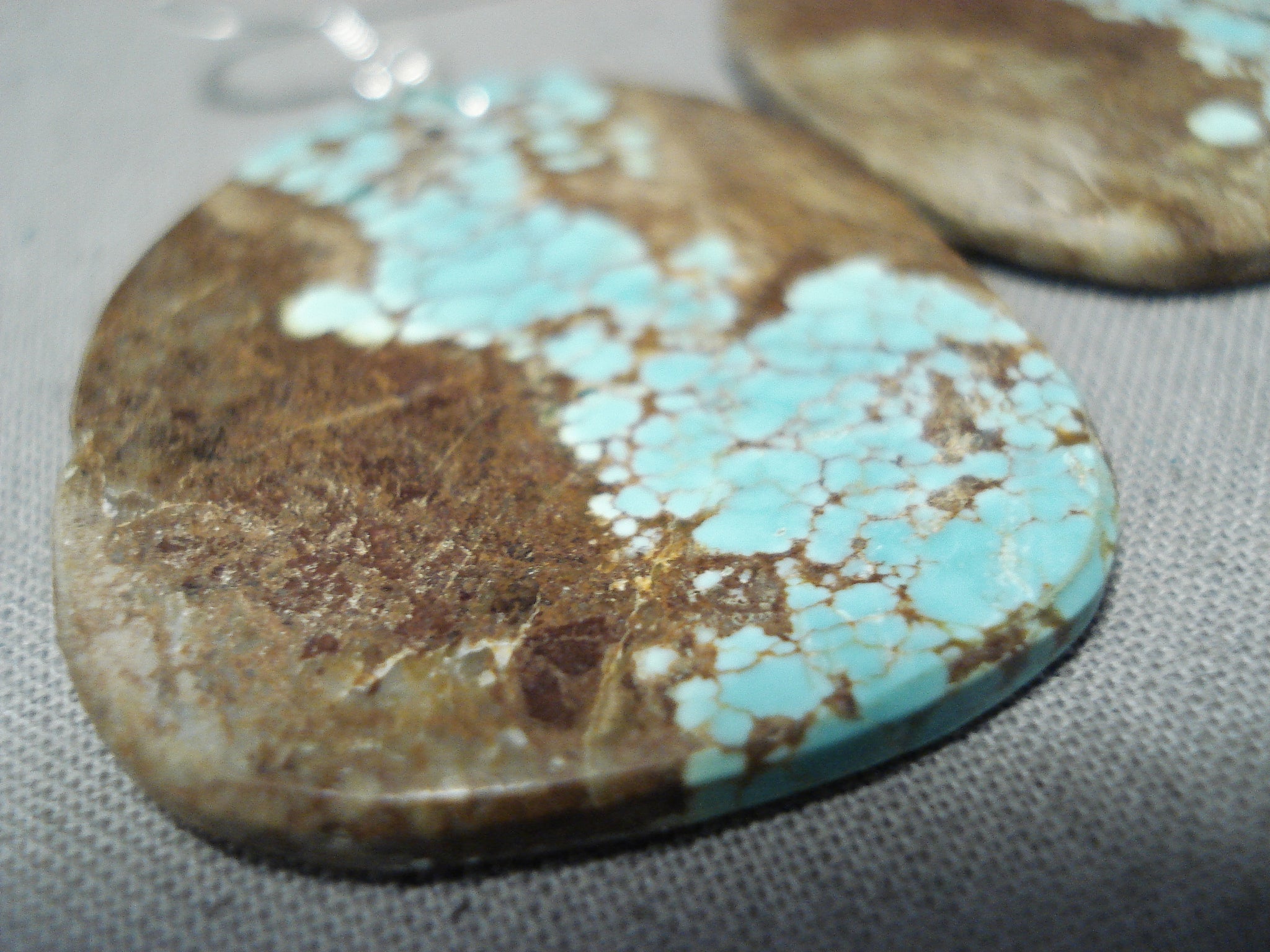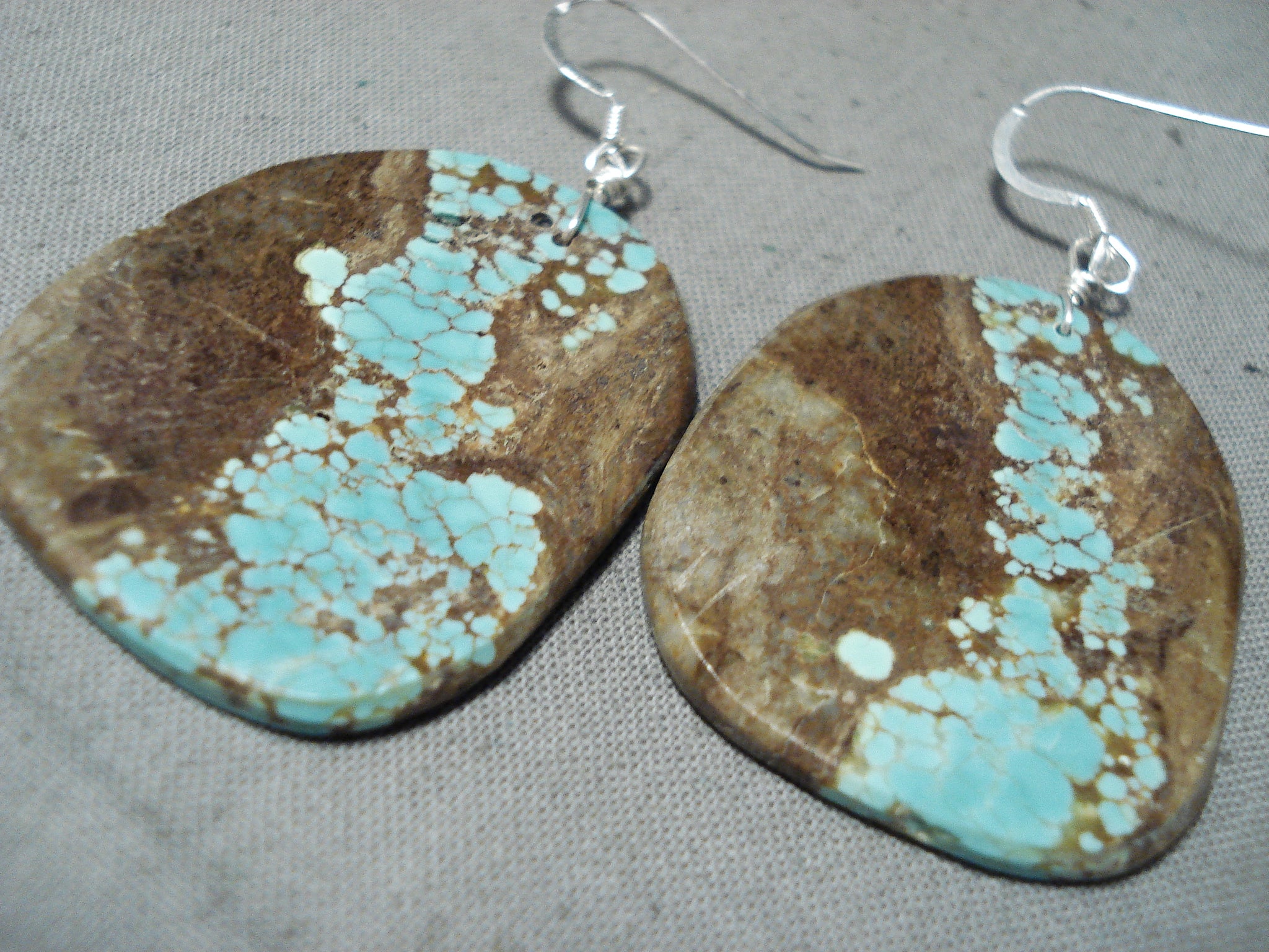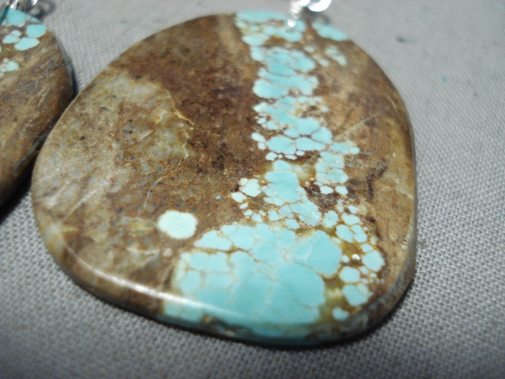 Native American Sensational Santo Domingo 8 Turquoise Large Slab Sterling Silver Earrings