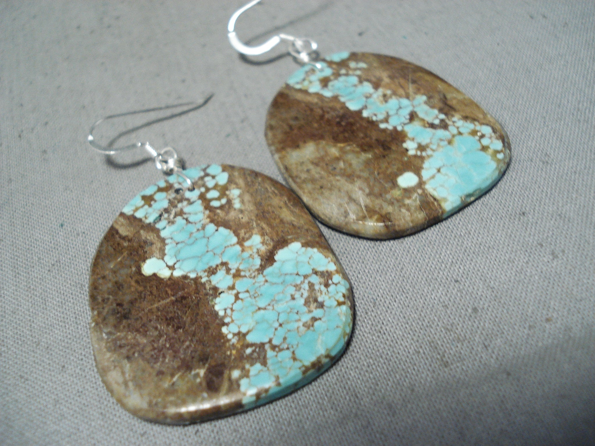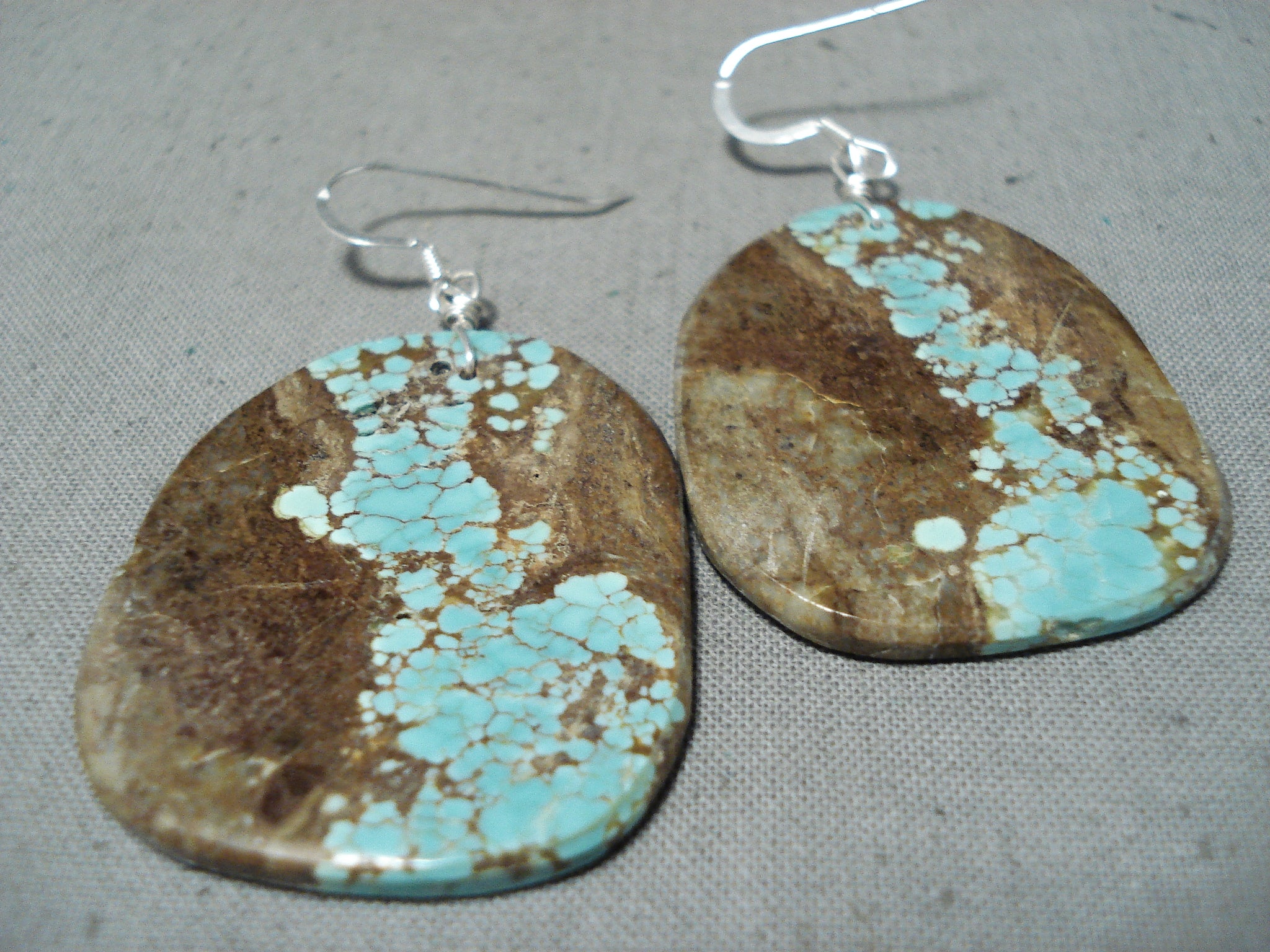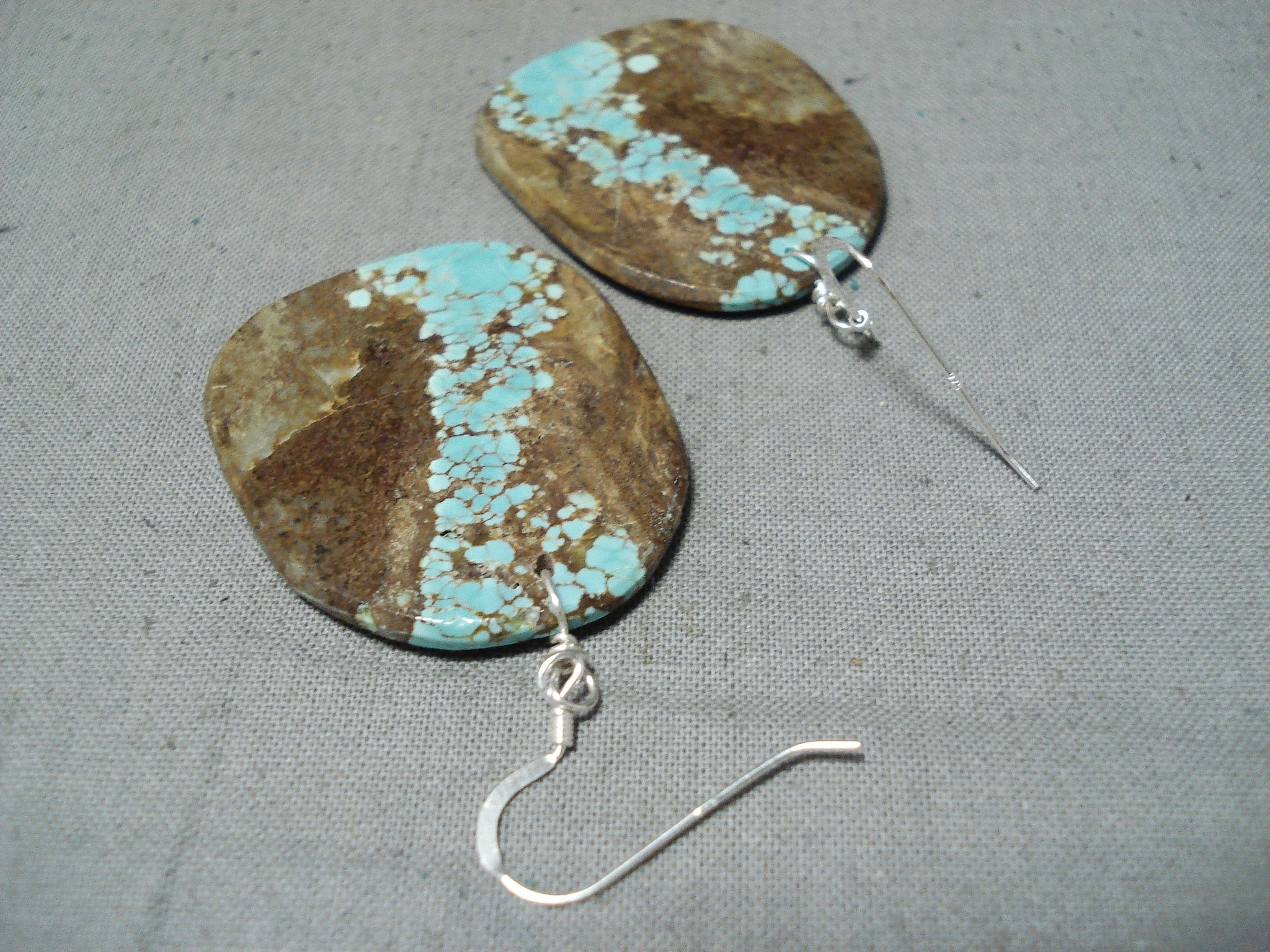 Native American Sensational Santo Domingo 8 Turquoise Large Slab Sterling Silver Earrings