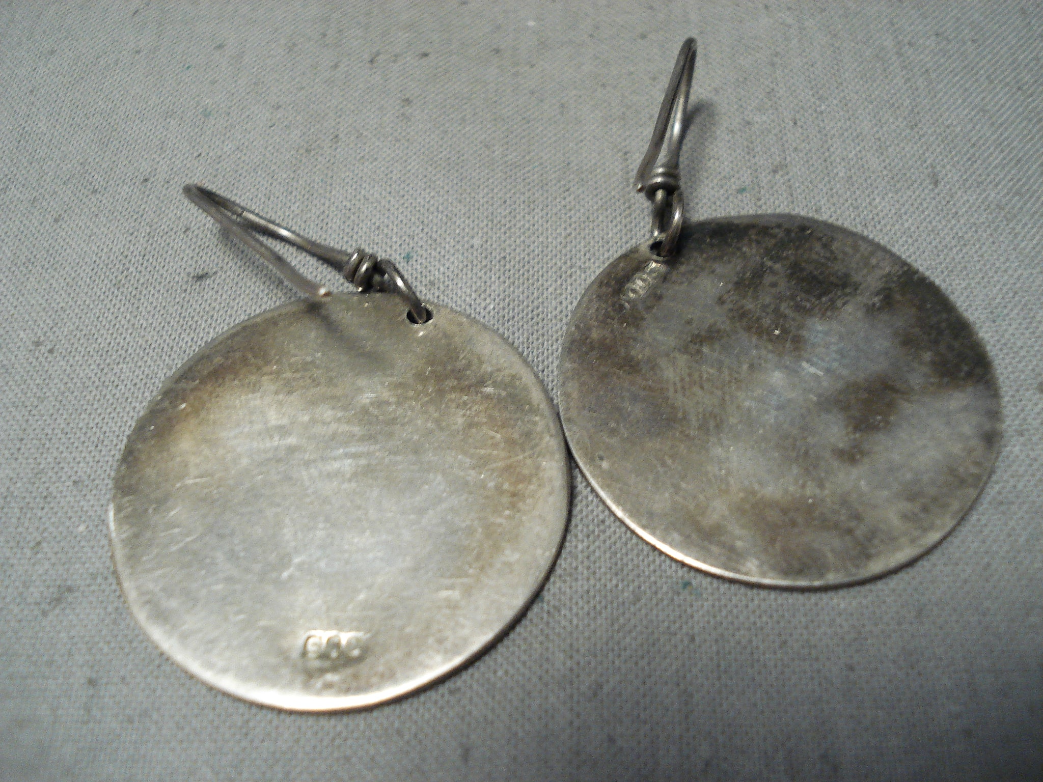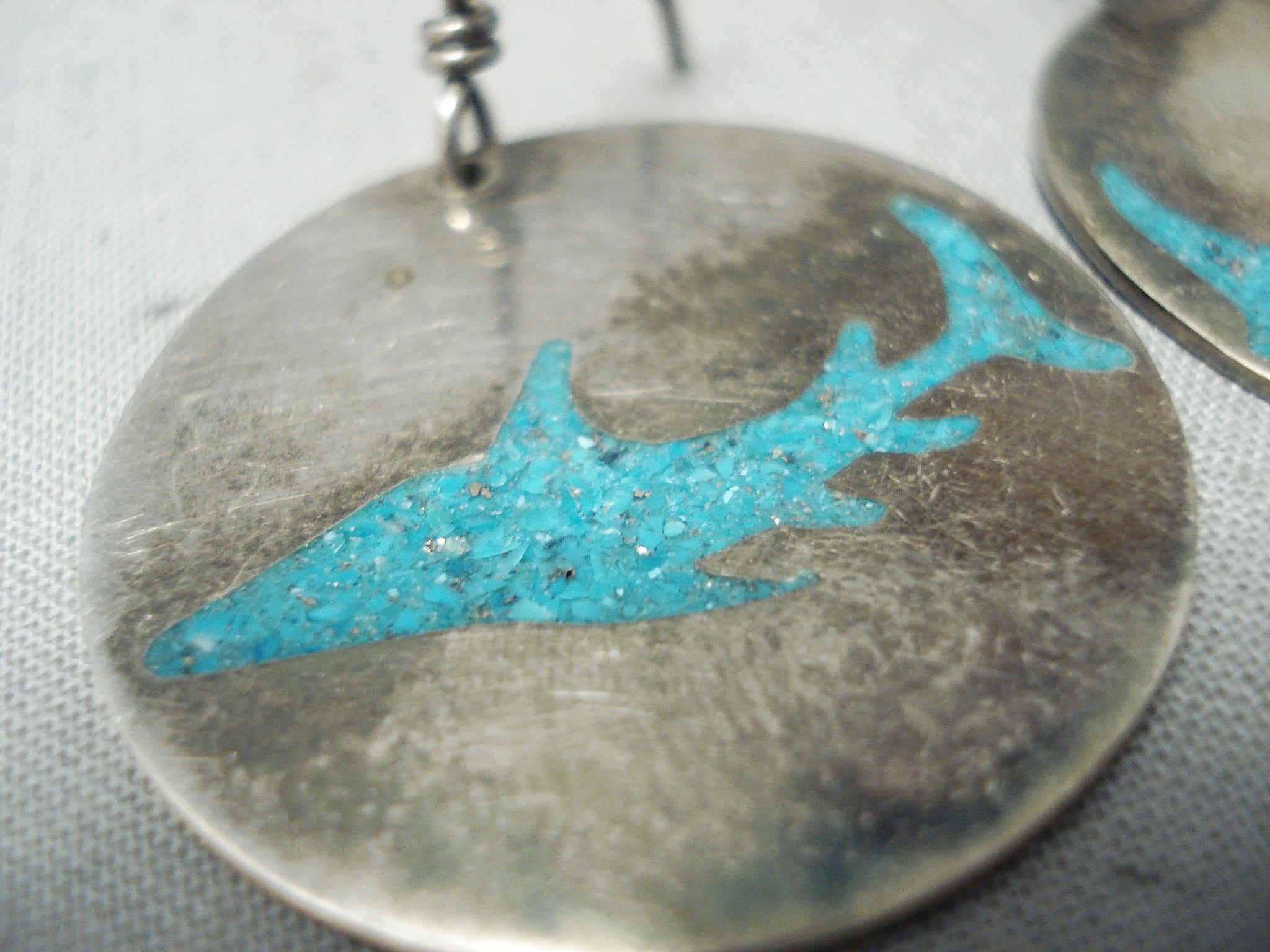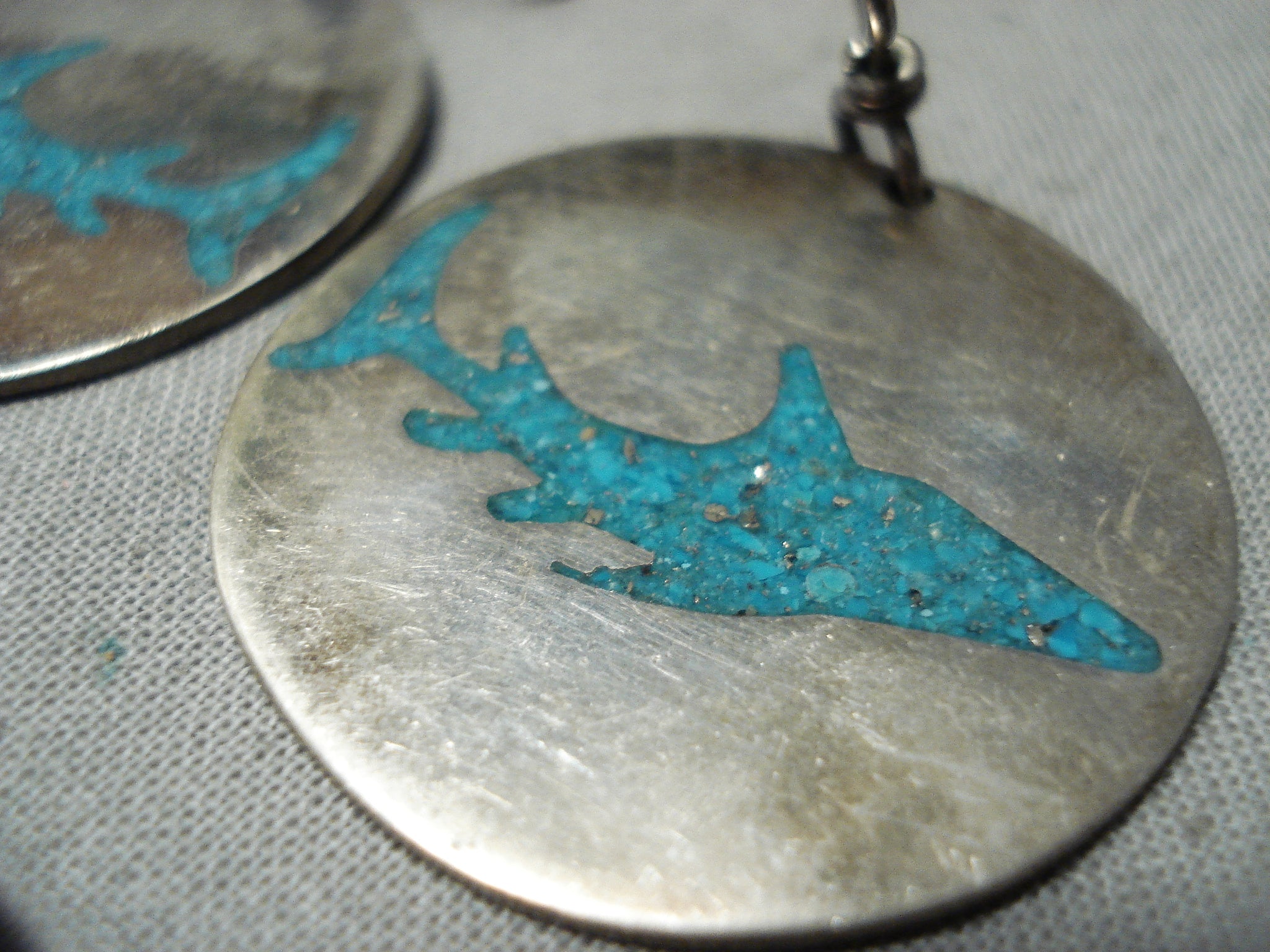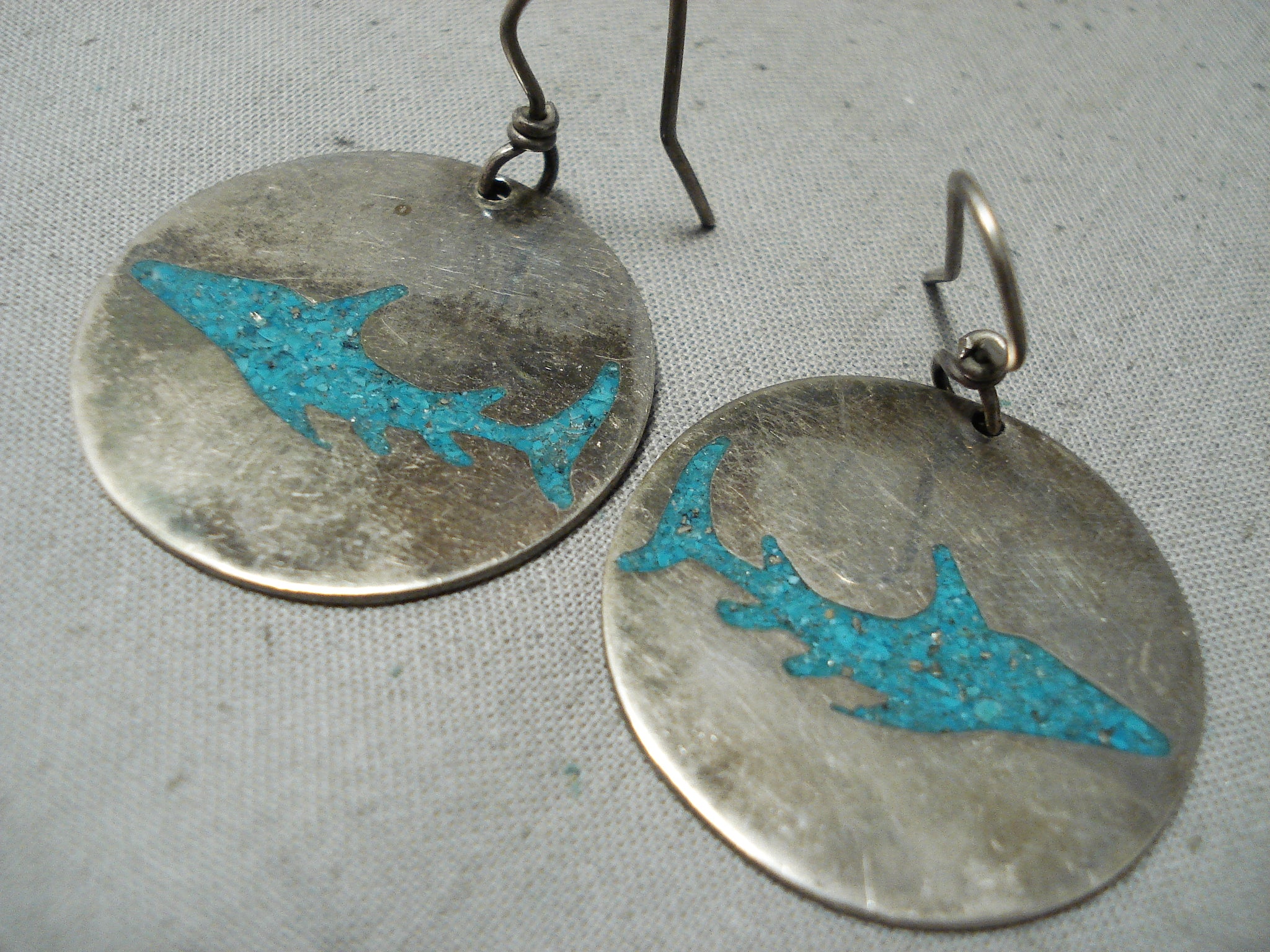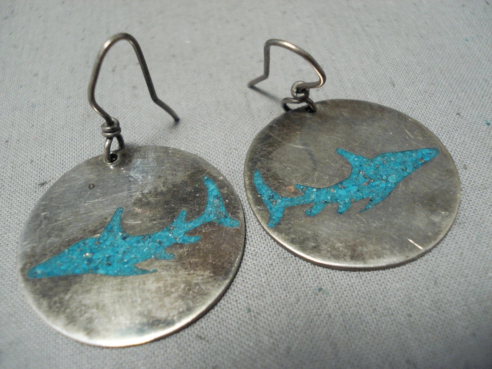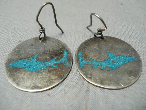 Native American Shark Turquoise Inlay Vintage Southwestern Sterling Silver Earrings