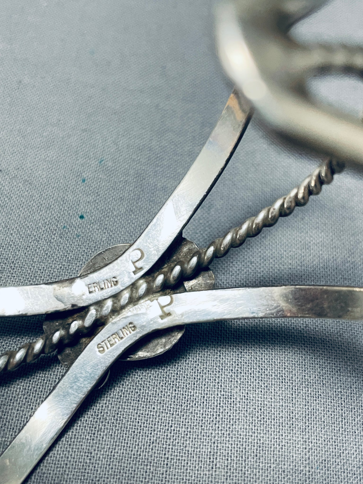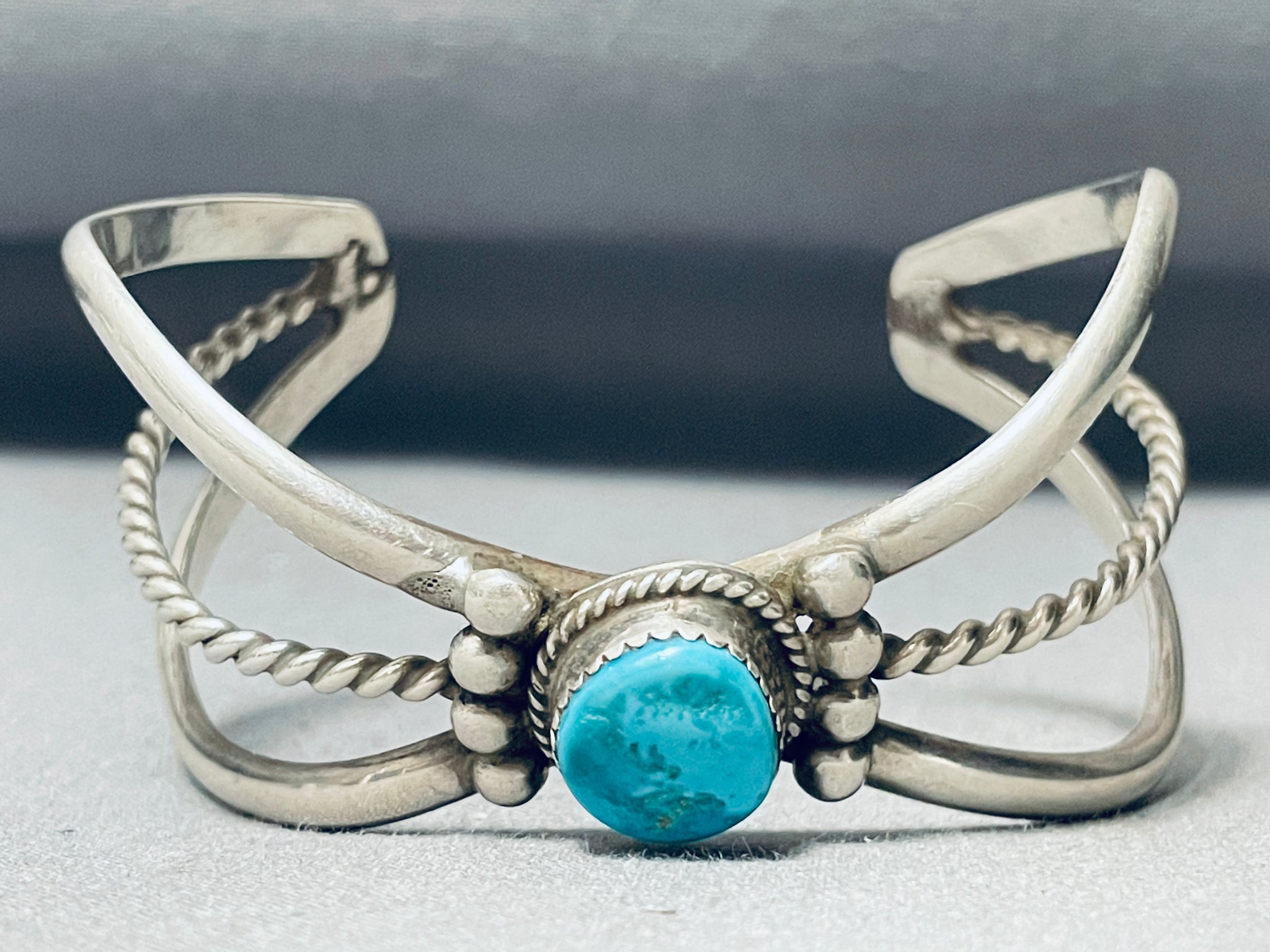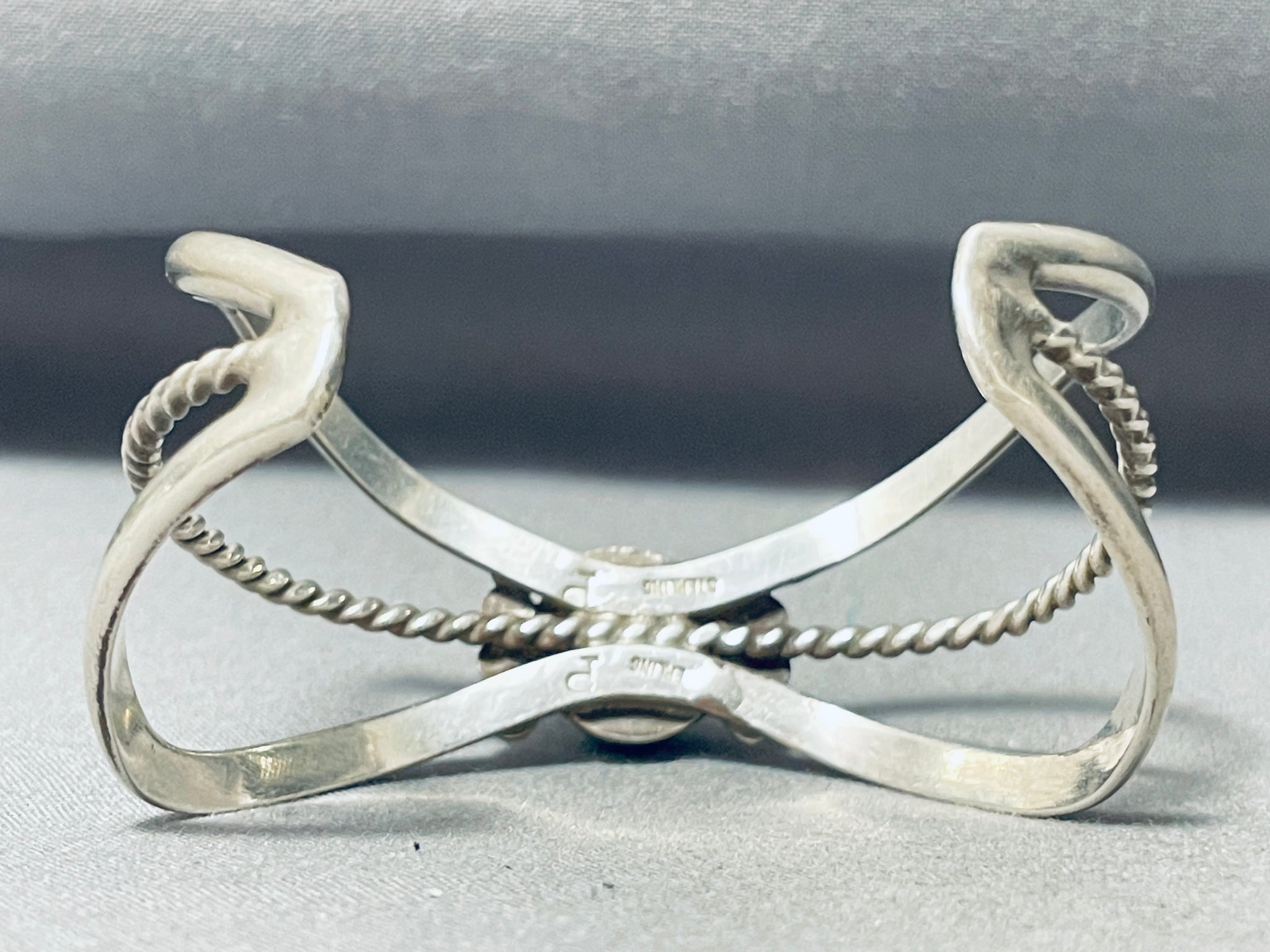 Native American Signed More Unique Cuff Vintage Navajo Turquoise Sterling Silver Bracelet