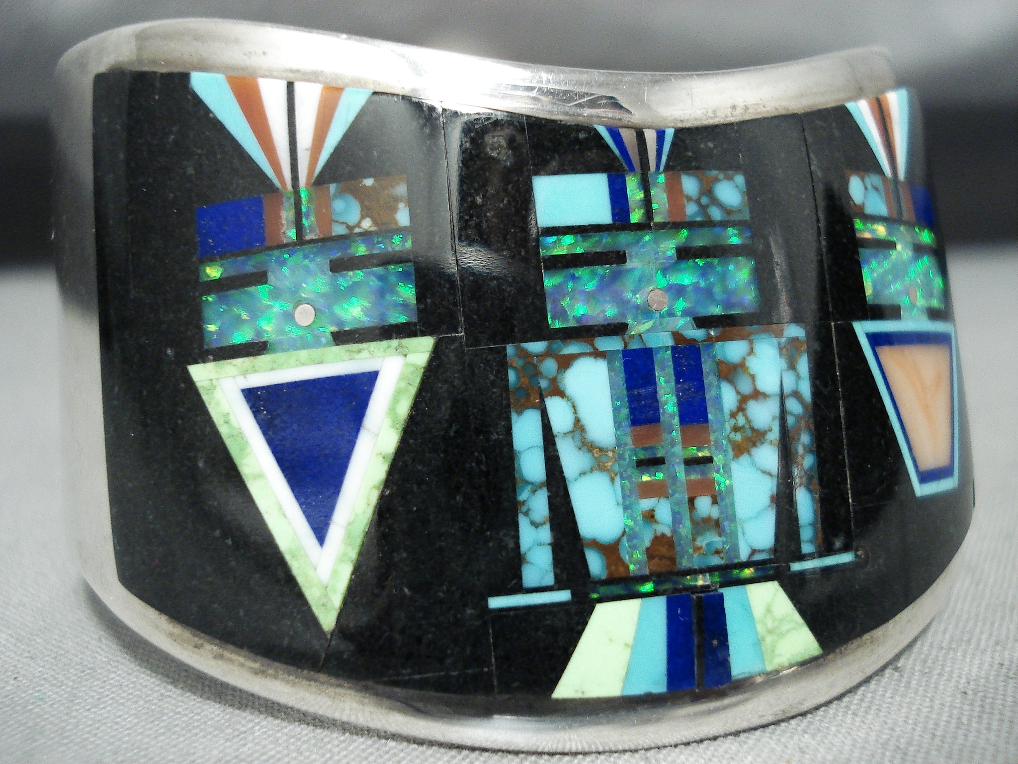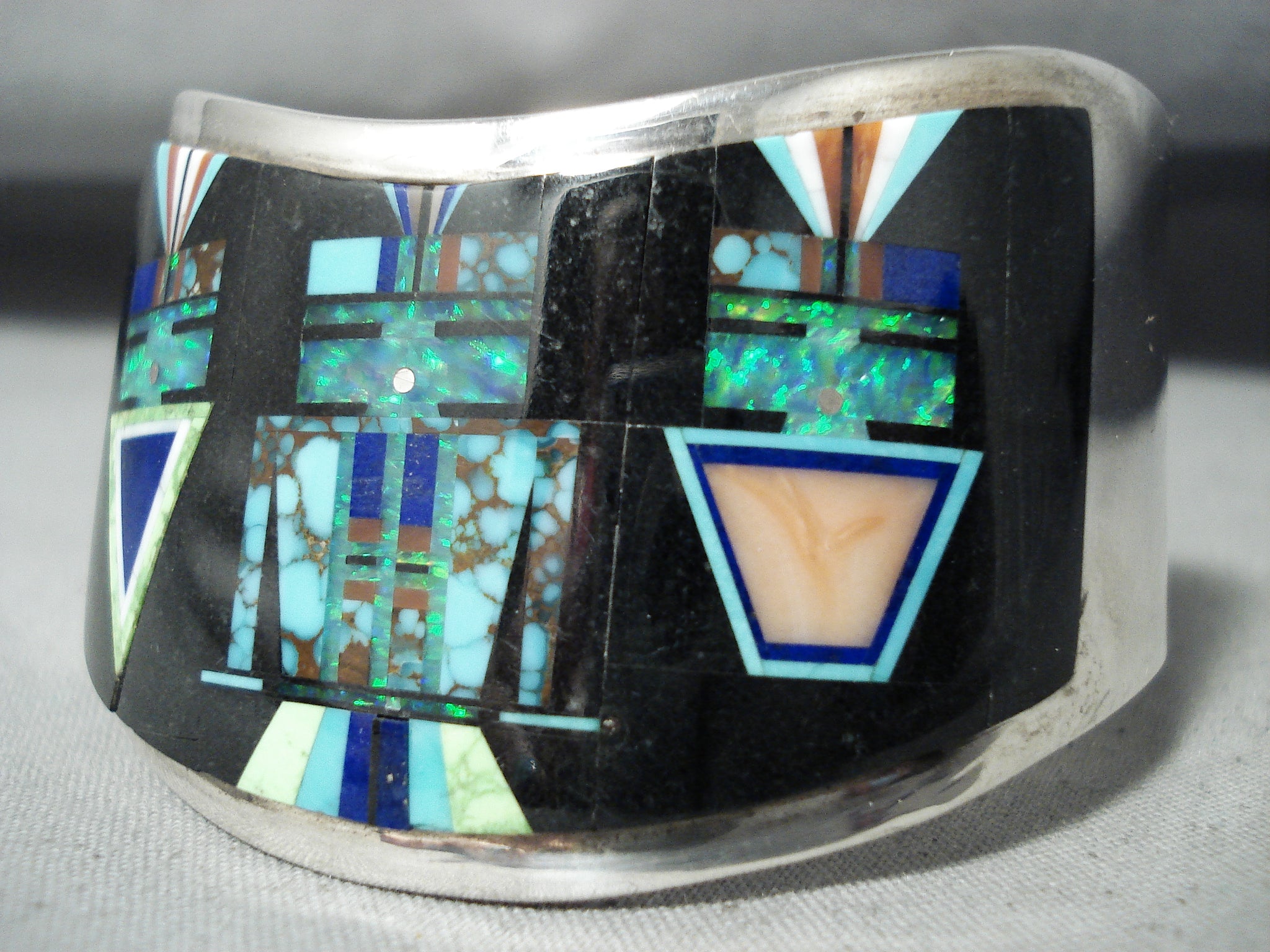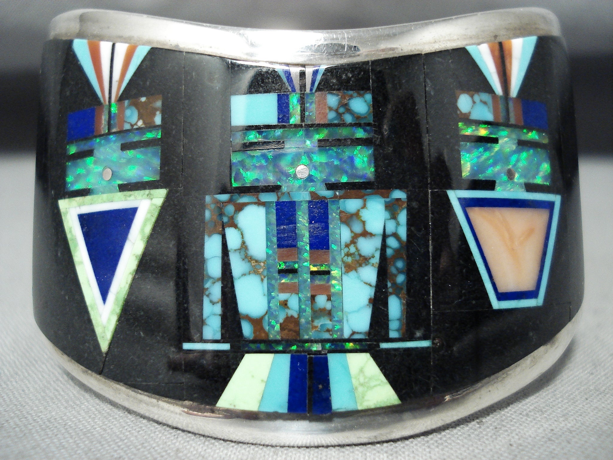 Native American Space Kachina Very Rare Vintage Navajo Turquoise Opal Sterling Silver Bracelet