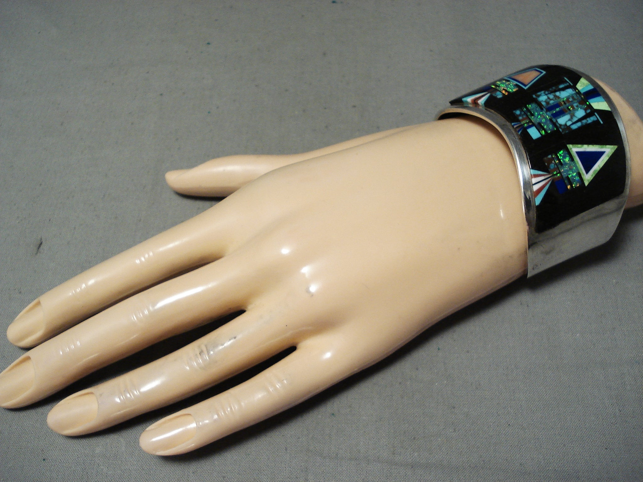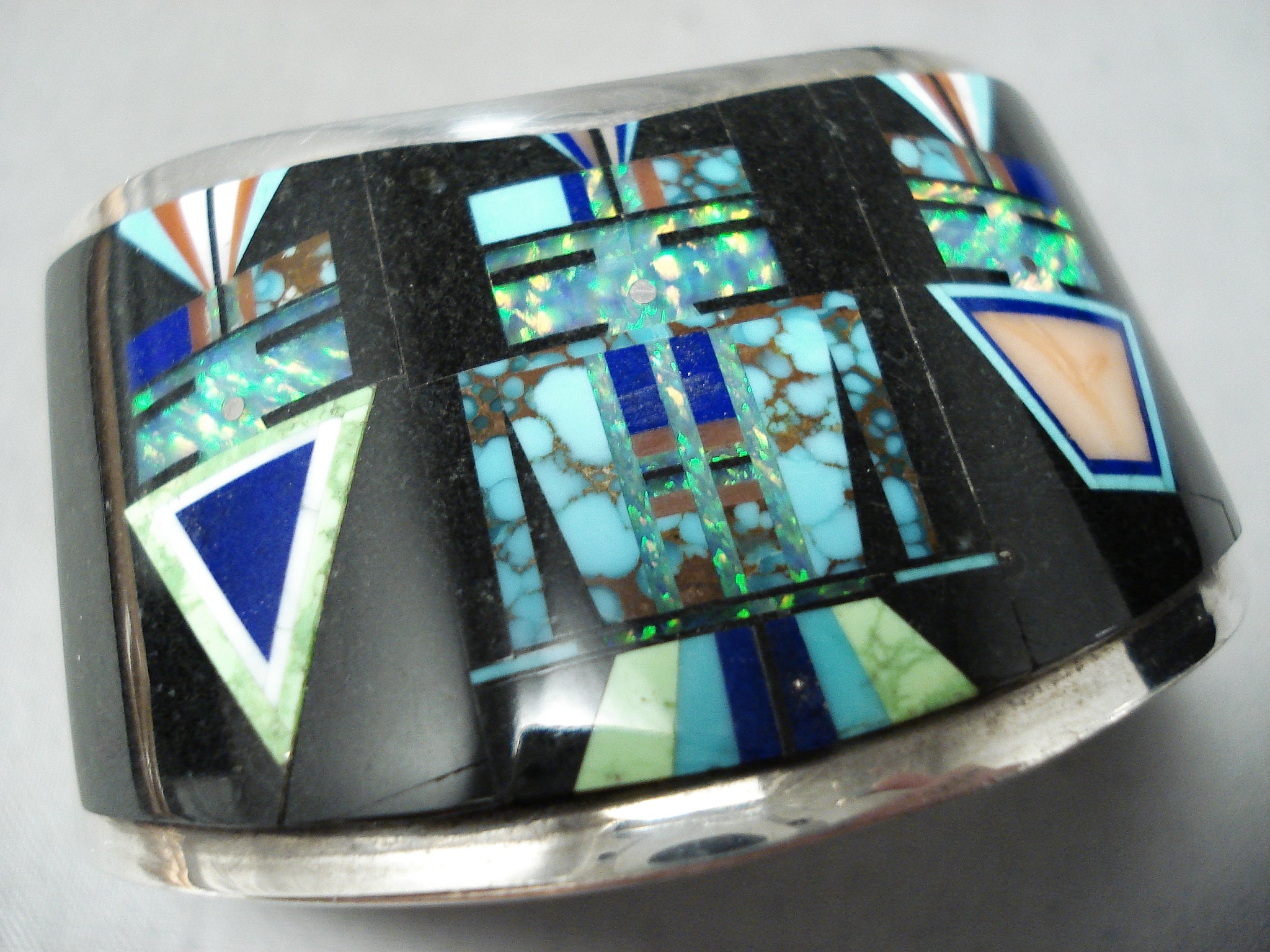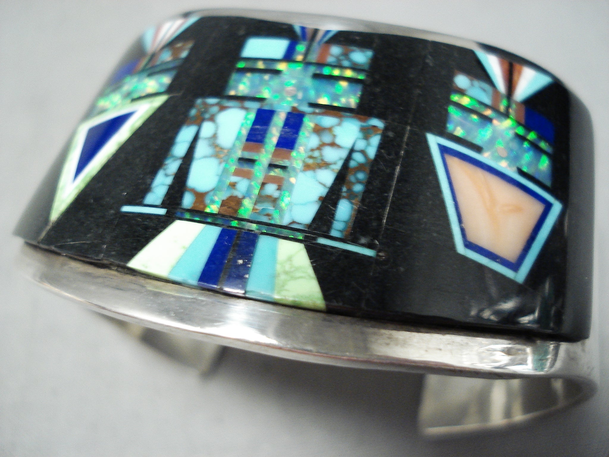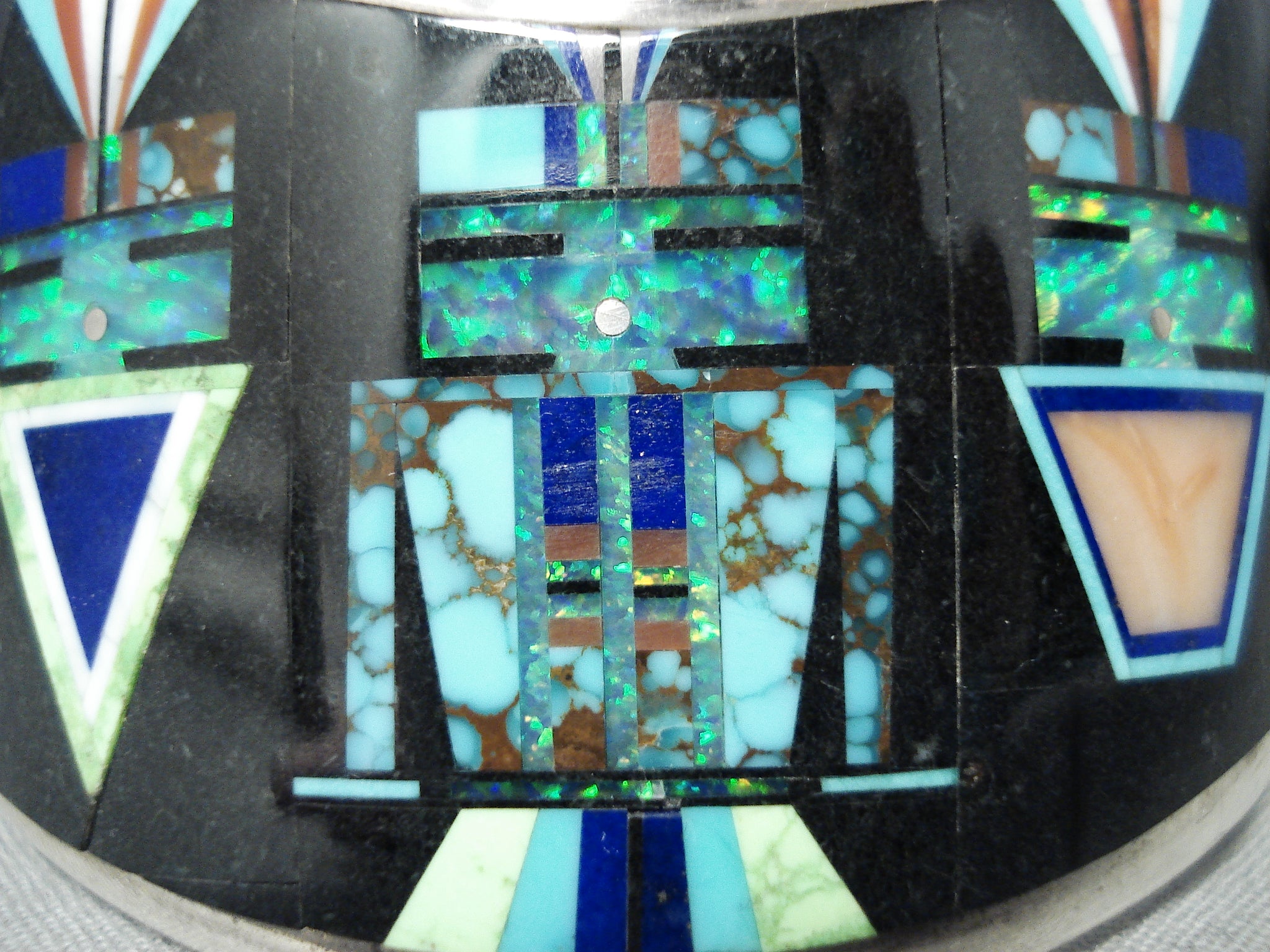Native American Space Kachina Very Rare Vintage Navajo Turquoise Opal Sterling Silver Bracelet