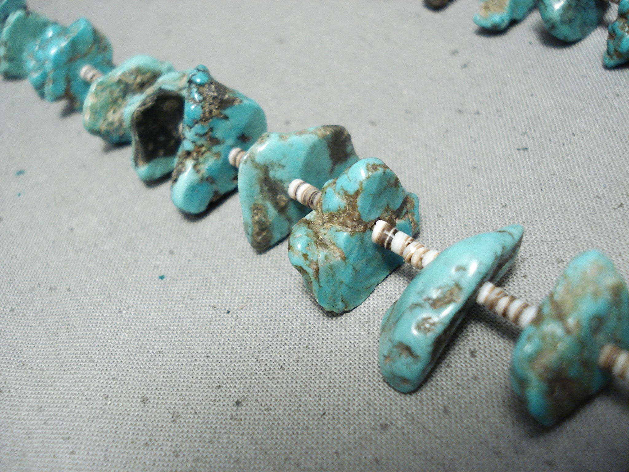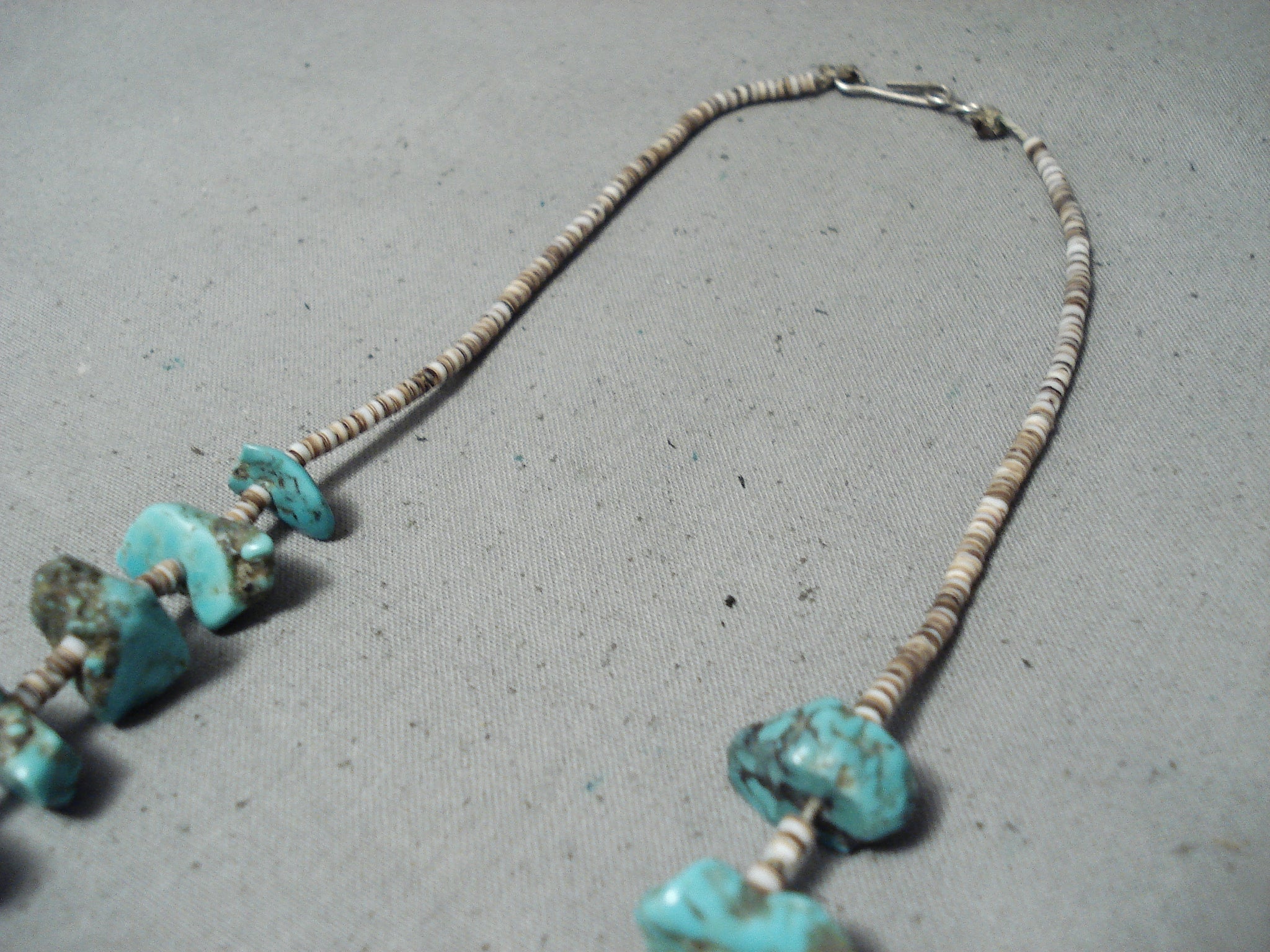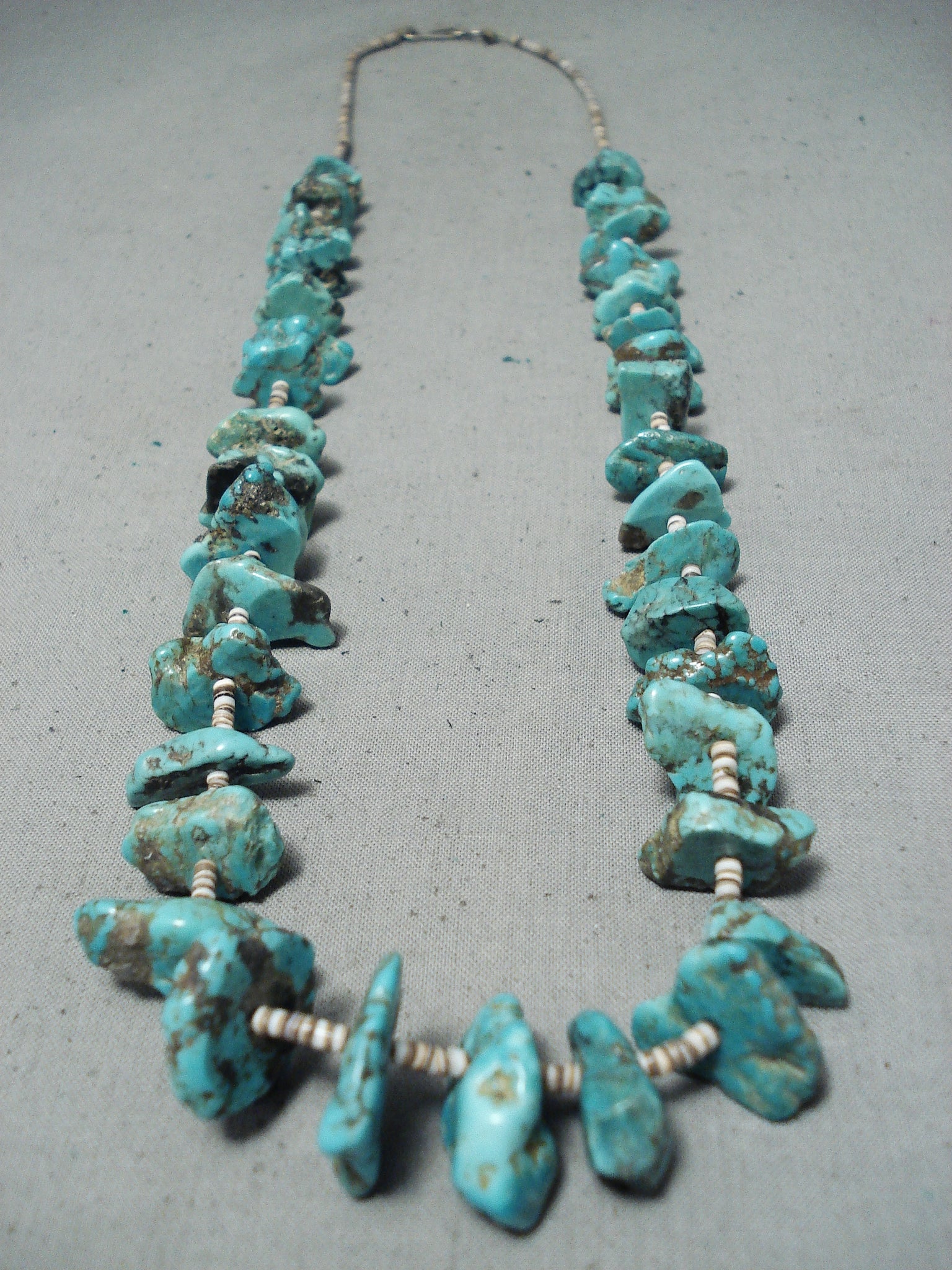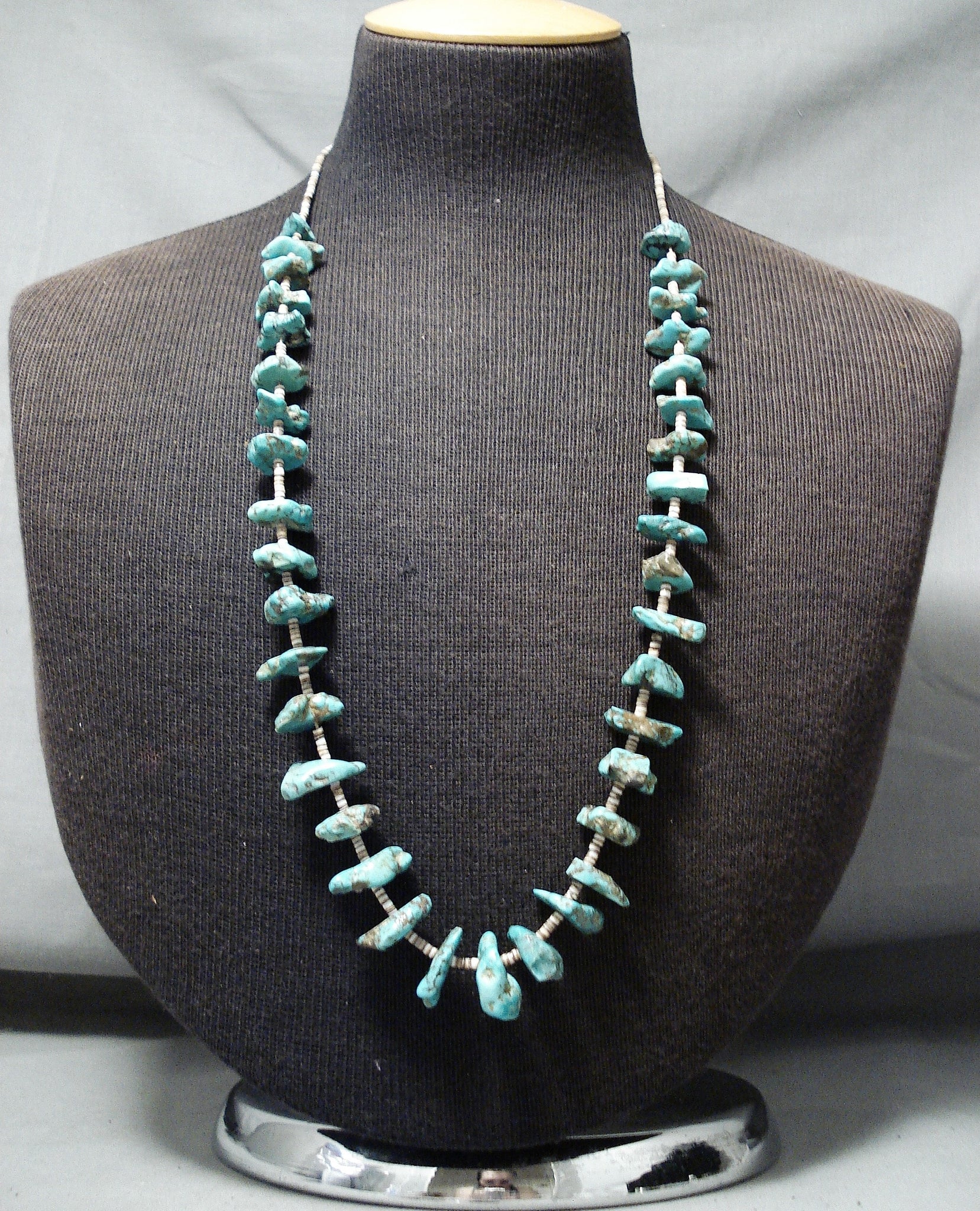 Native American Striking Vintage Santo Domingo Old Kingman Turquoise Sterling Silver Necklace
