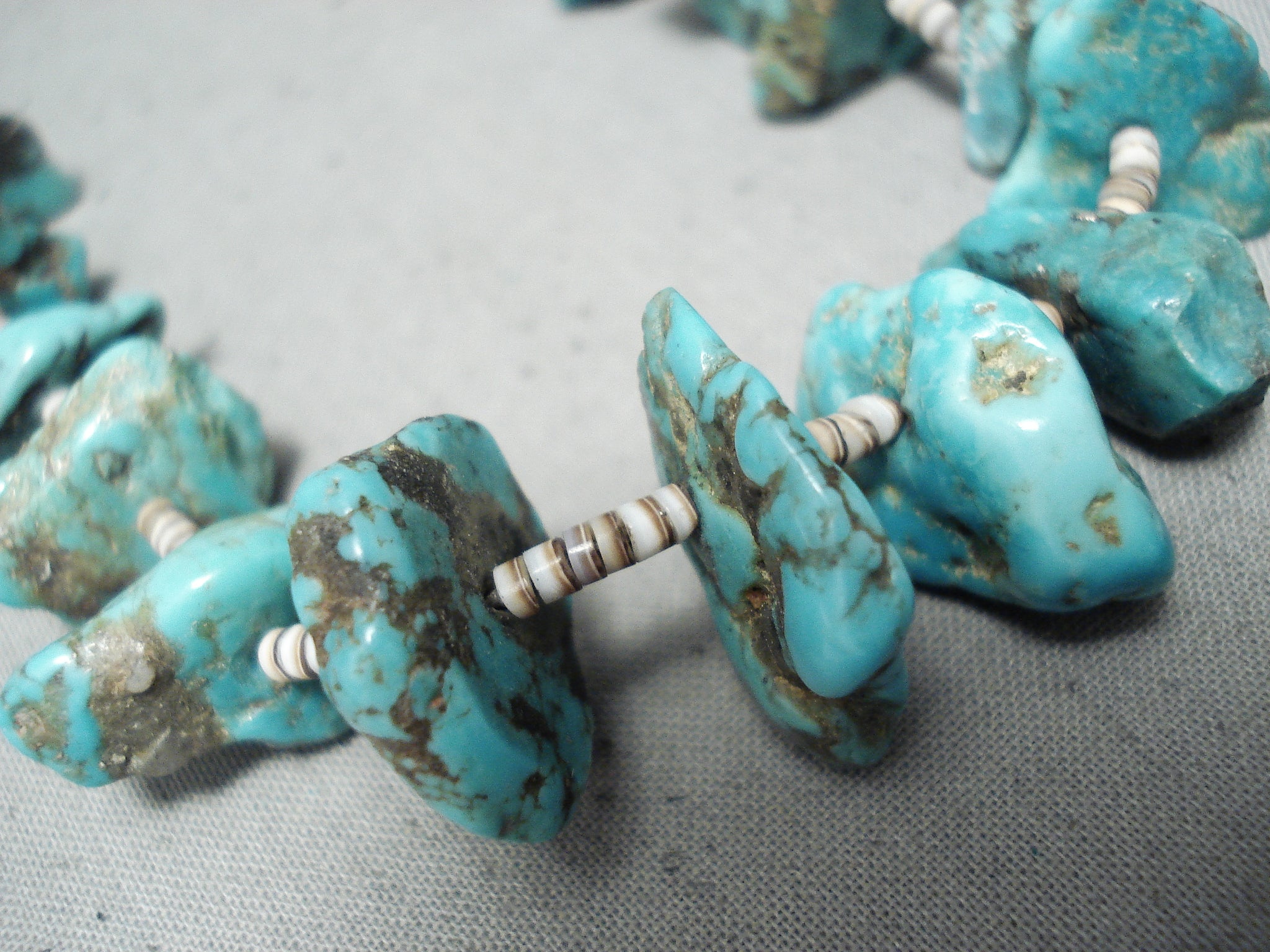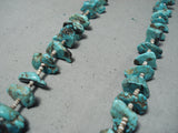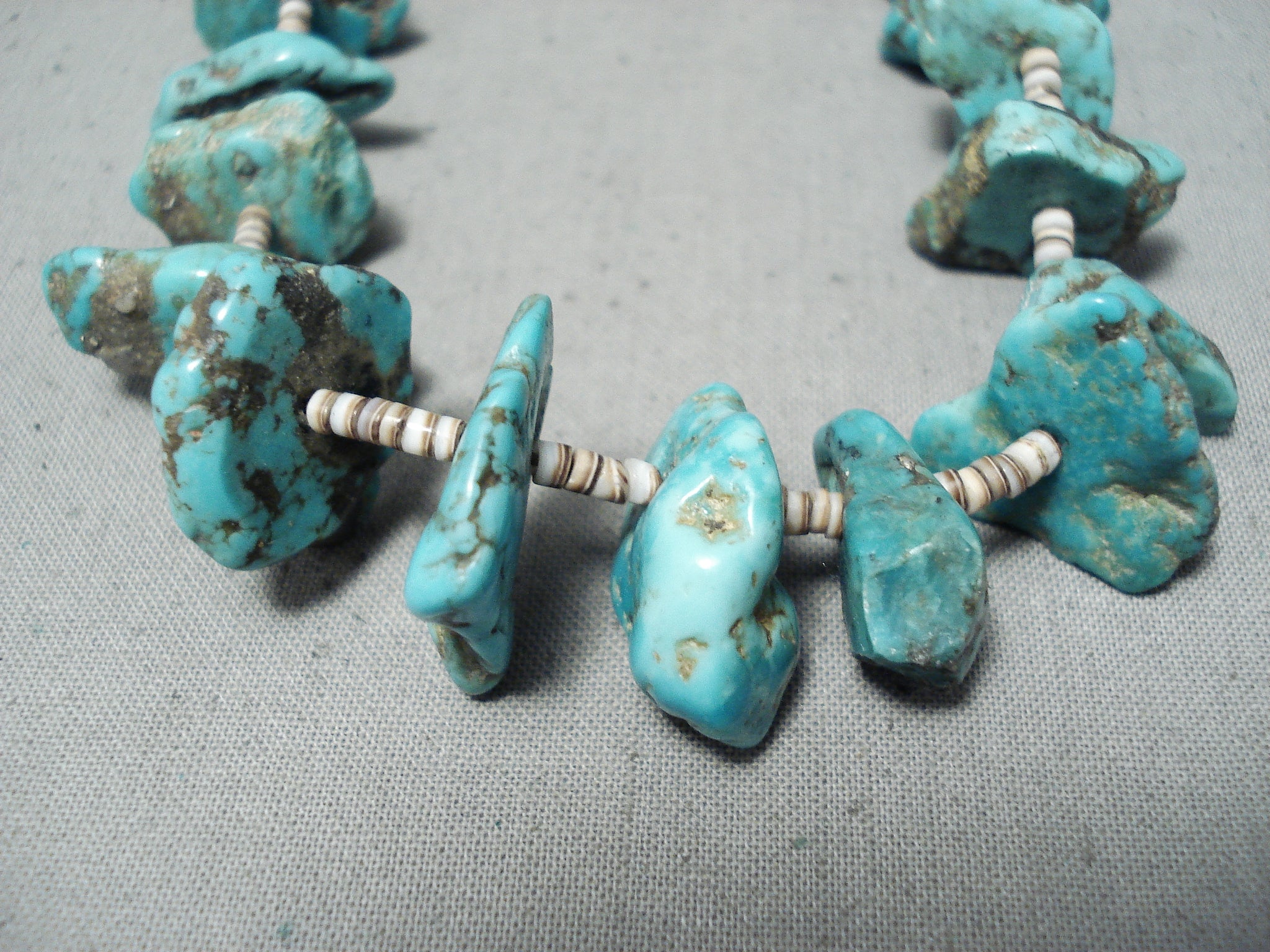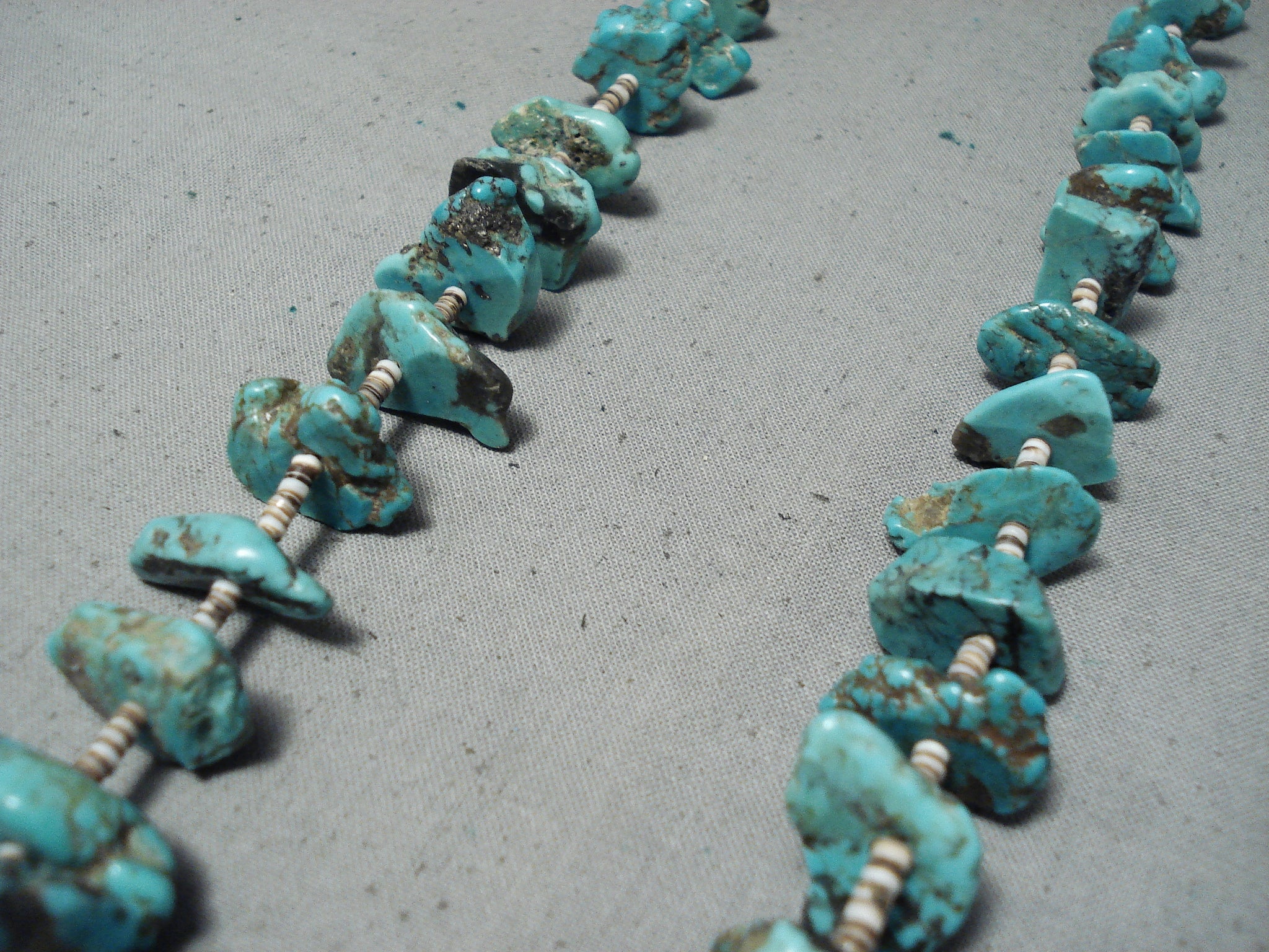 Native American Striking Vintage Santo Domingo Old Kingman Turquoise Sterling Silver Necklace