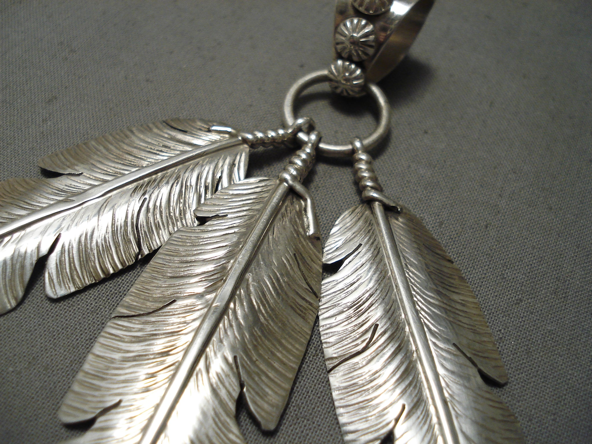 Native American Stunning Detailed Hand Carved Feathers Sterling Silver Neative American Pendant