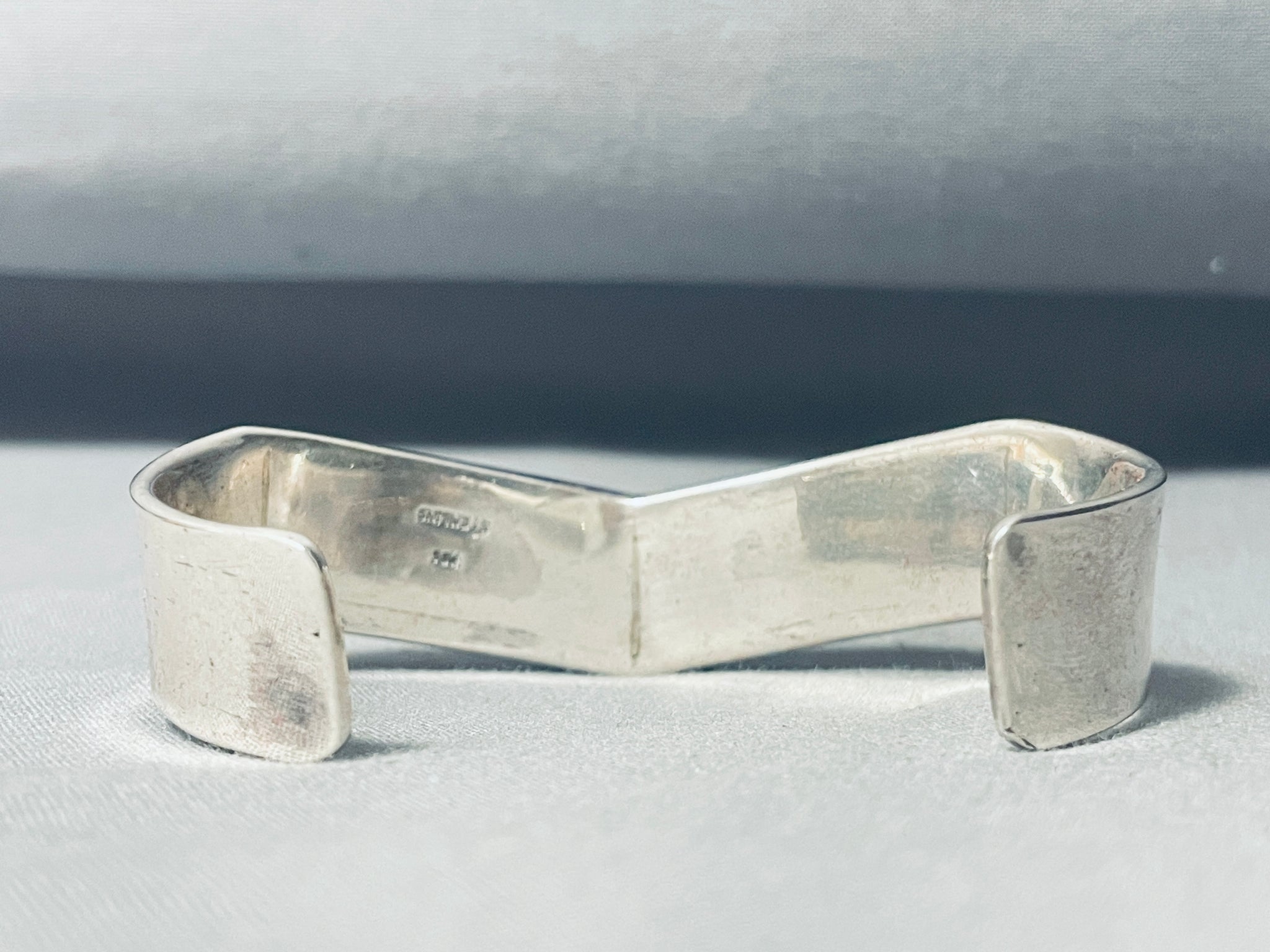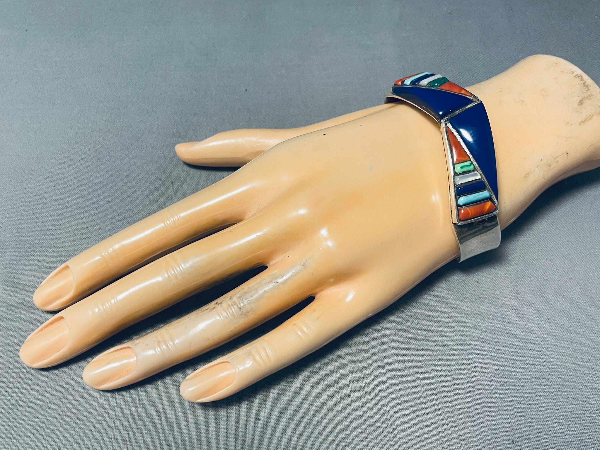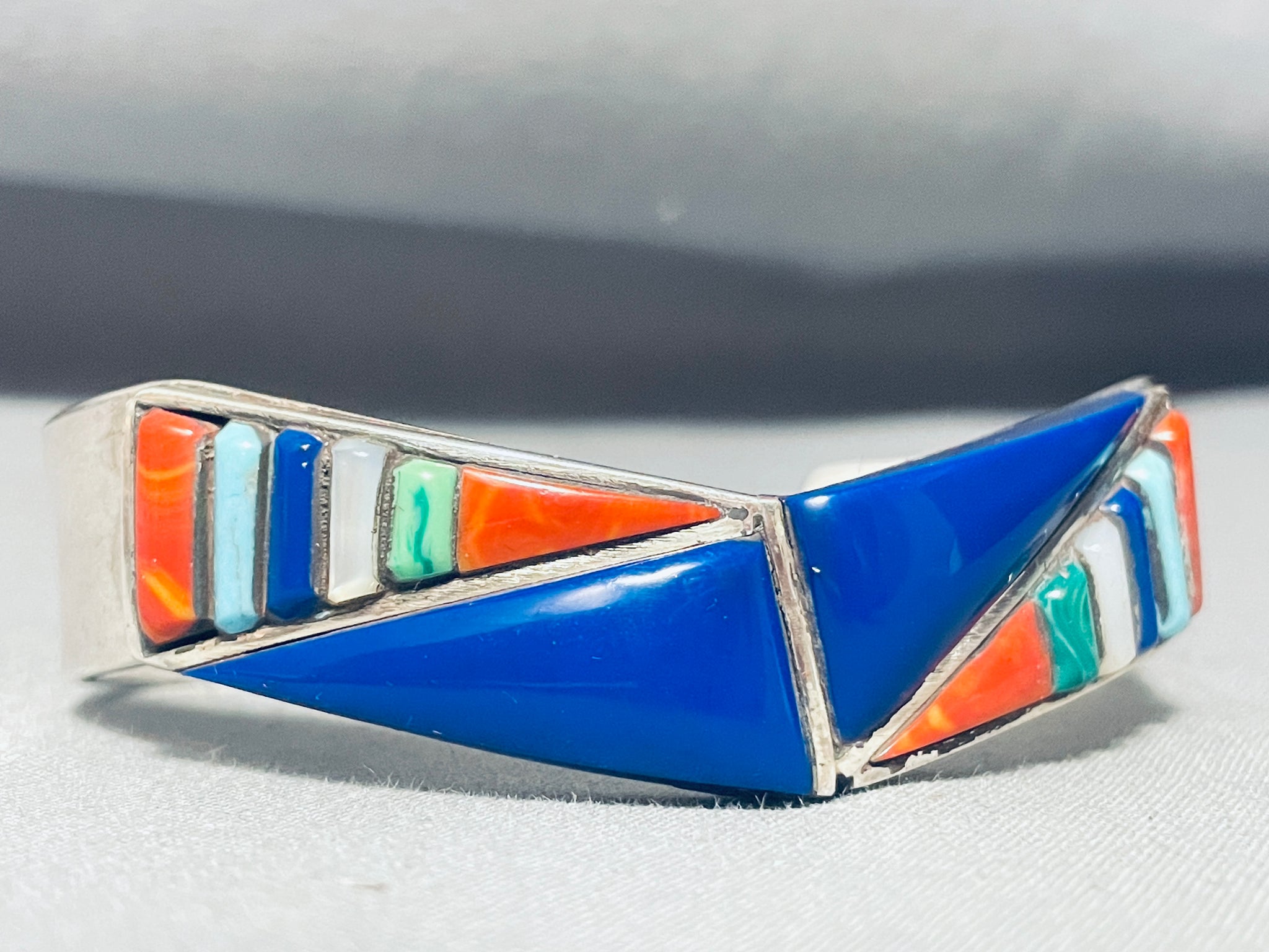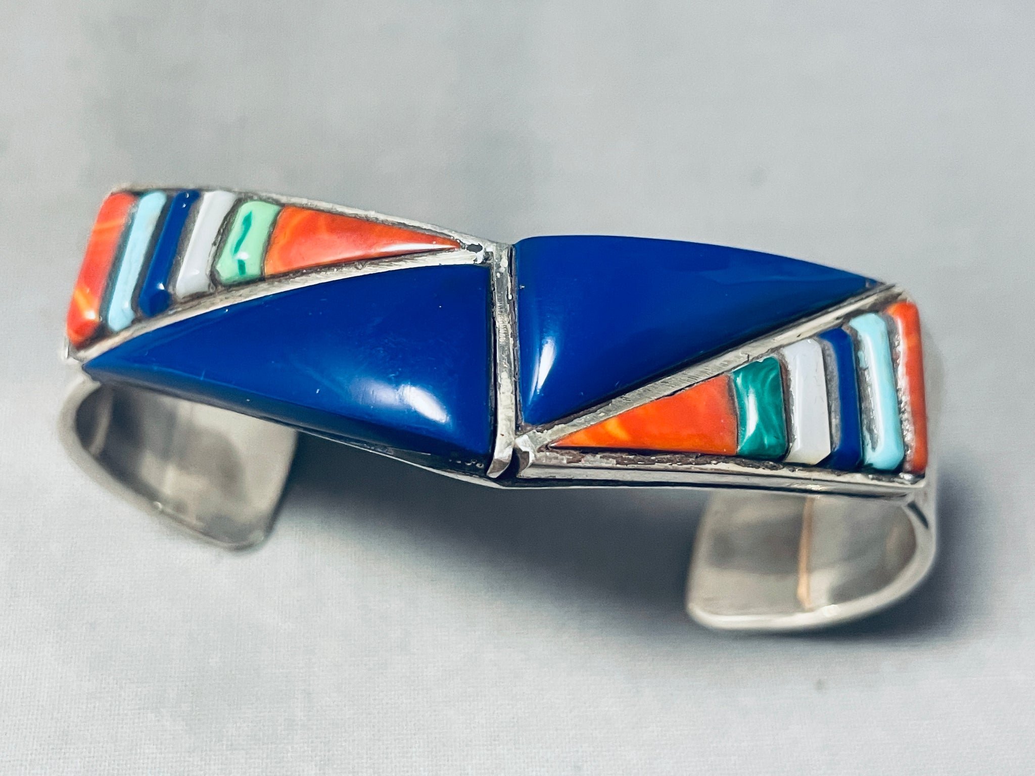 Native American Triangles Of Lapis Vintage Navajo Inlay Sterling Silver Bracelet