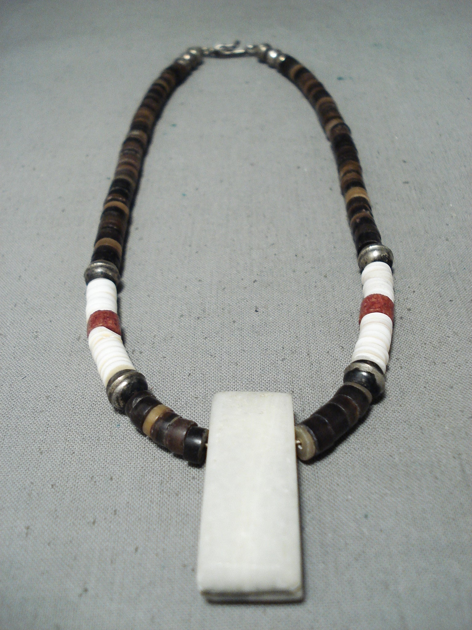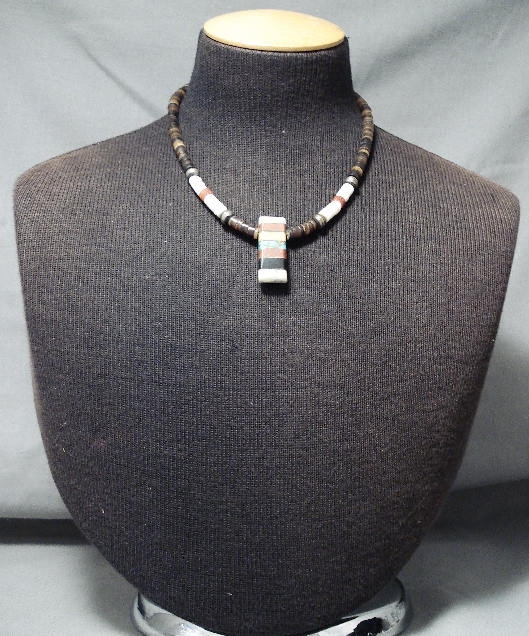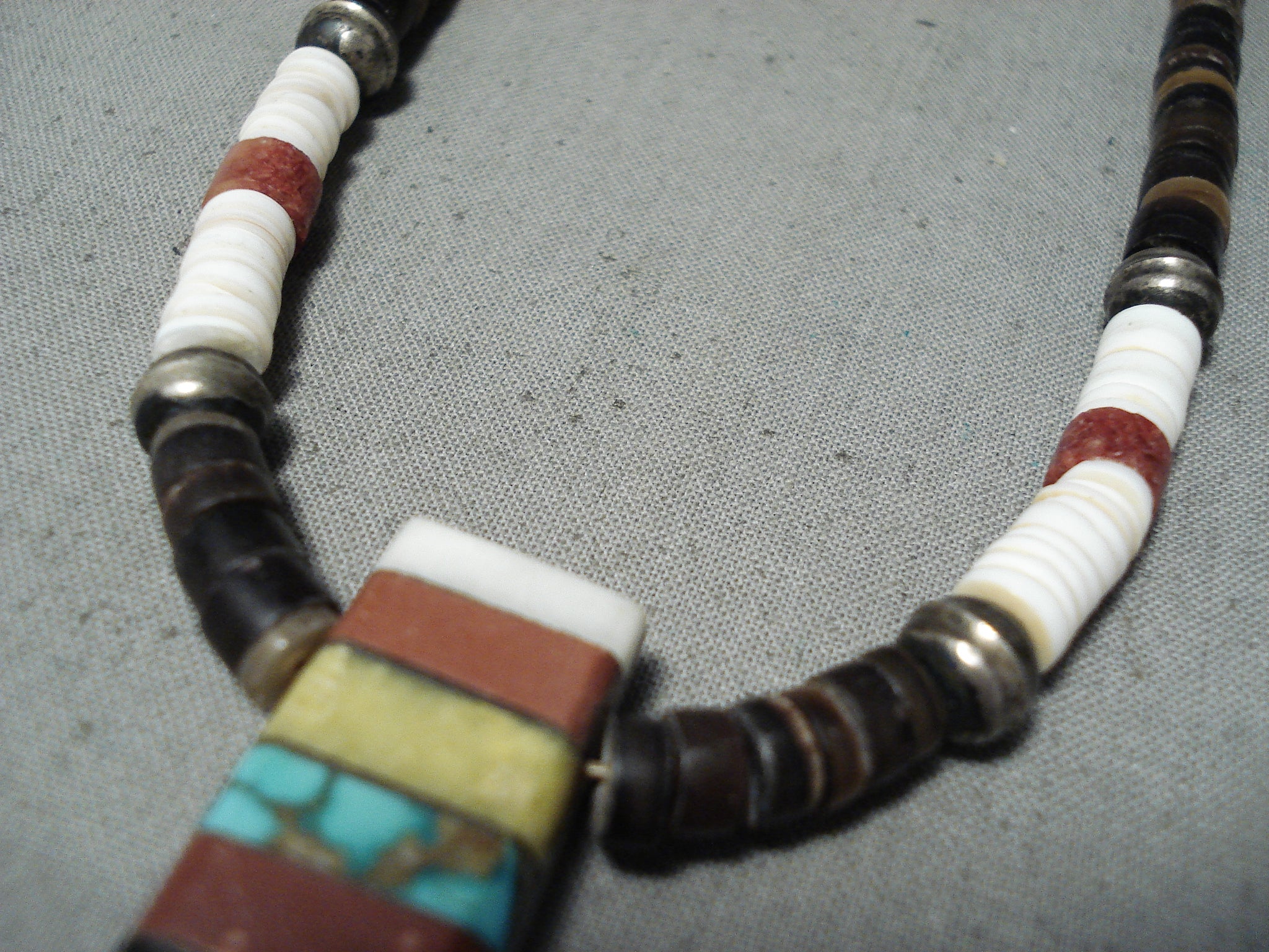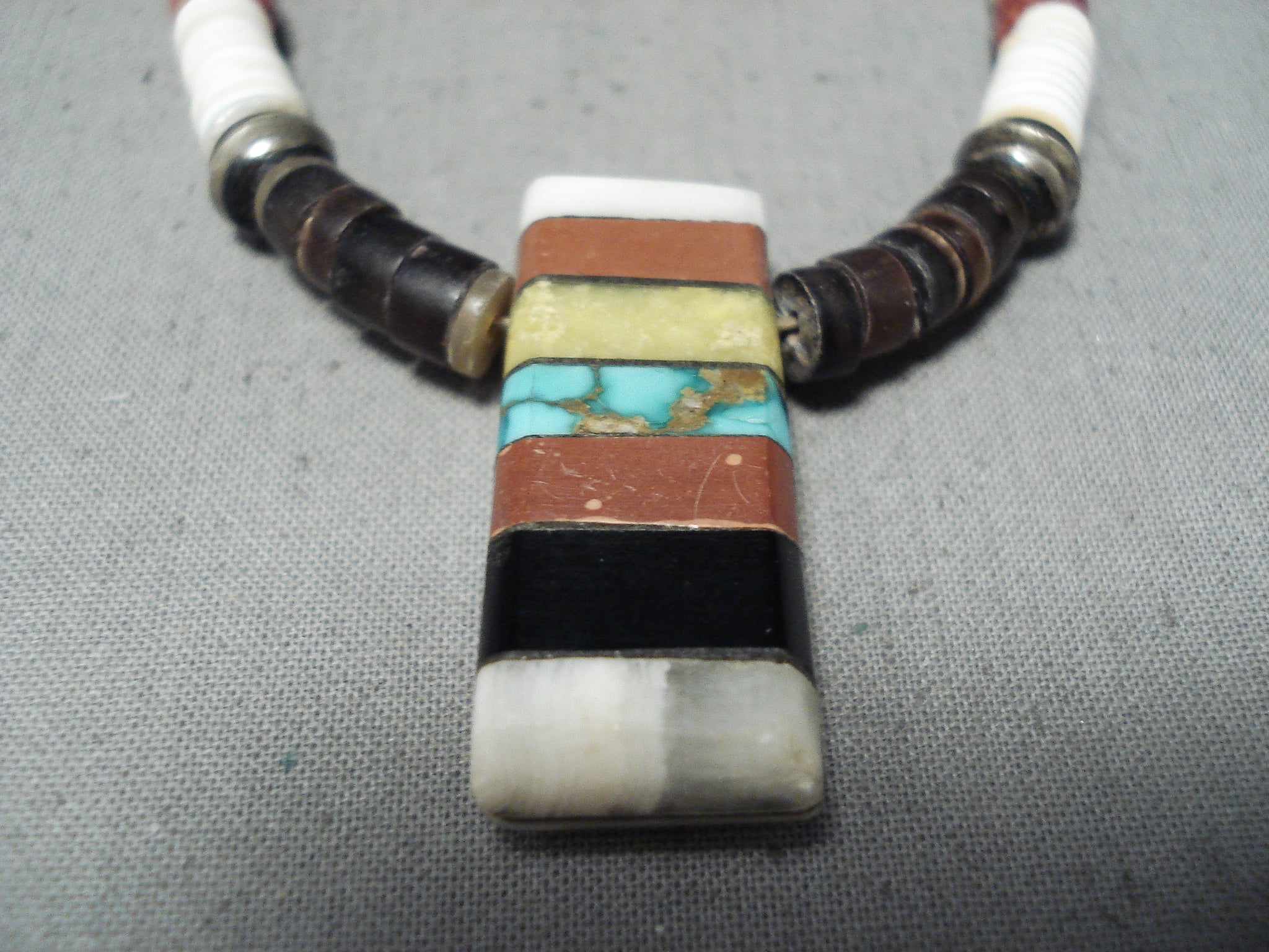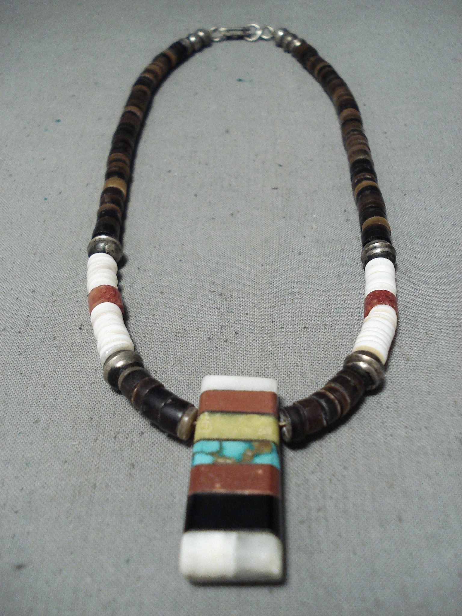 Native American Unique Vintage Santo Domingo Turquoise Jet Pipestone Sterling Silver Necklace