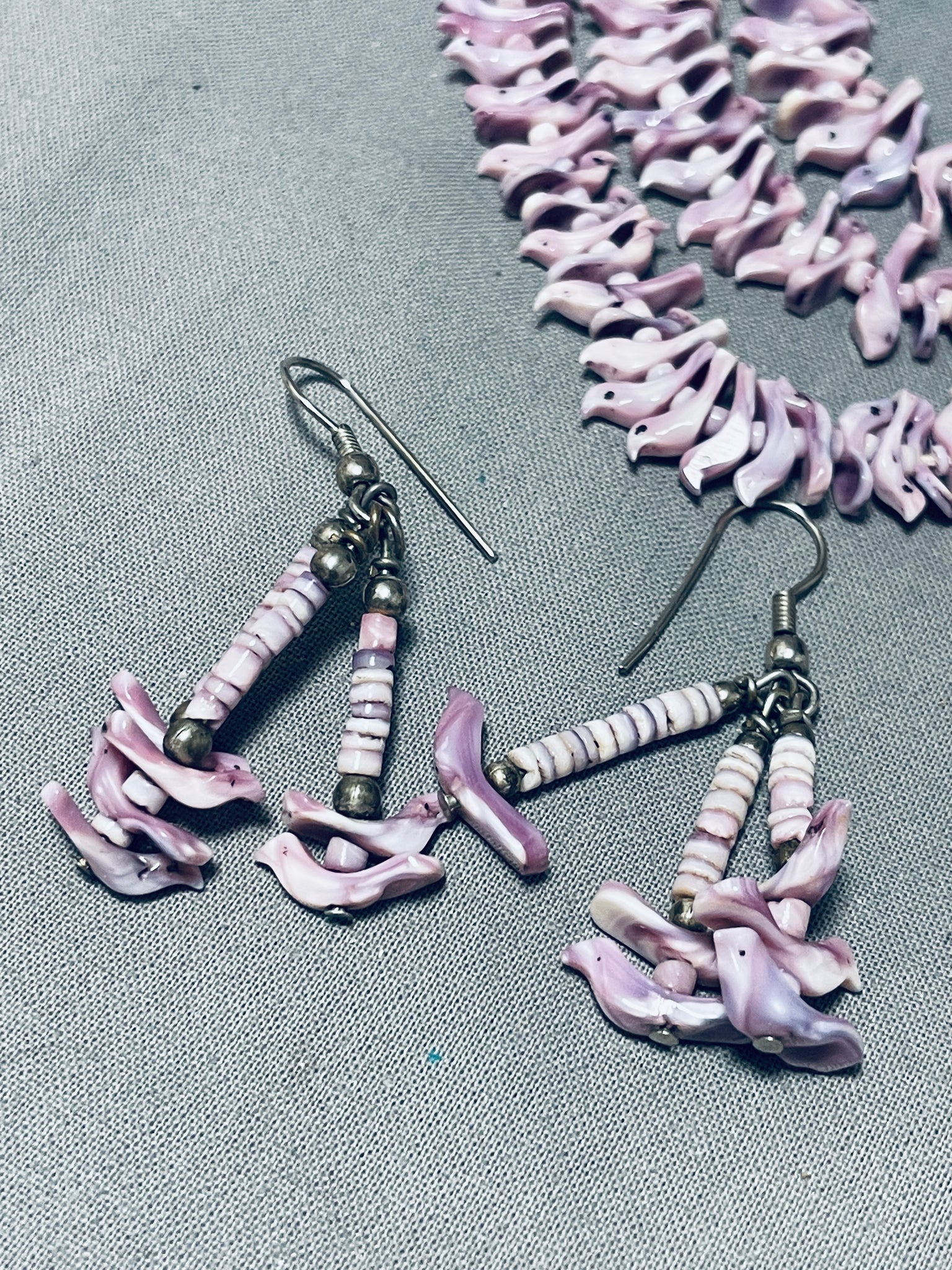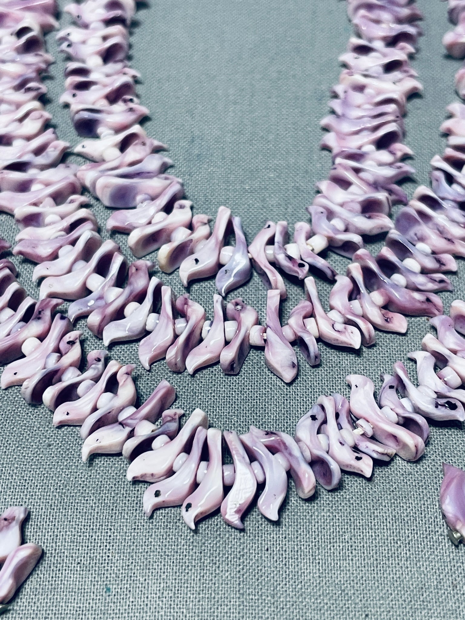 Native American Very Rare Santo Domingo Purple Shell Fetish Sterling Silver Necklace