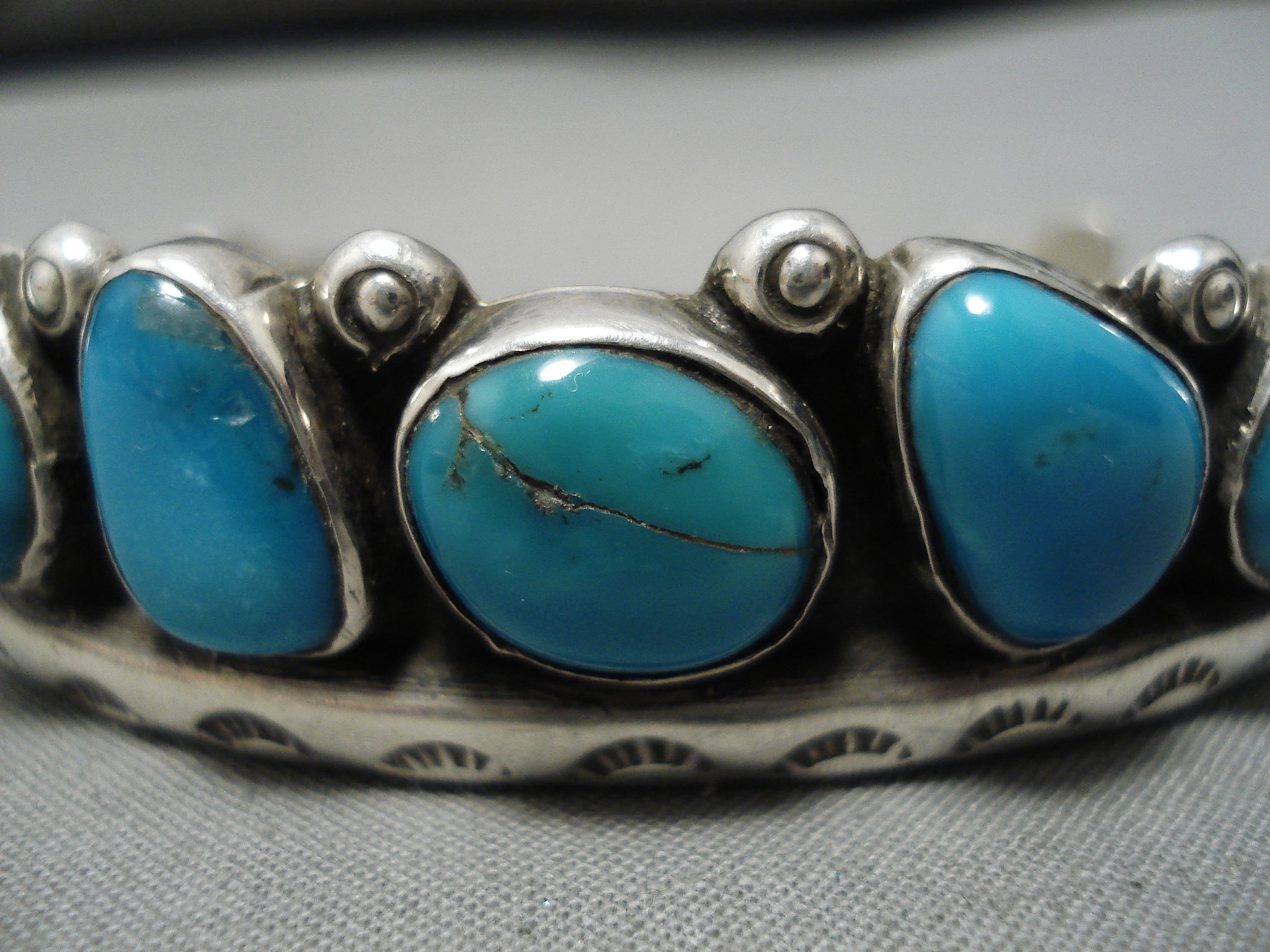 Native American Very Unqiue Waving Design Vintage Navajo Blue Turquoise Sterling Silver Bracelet