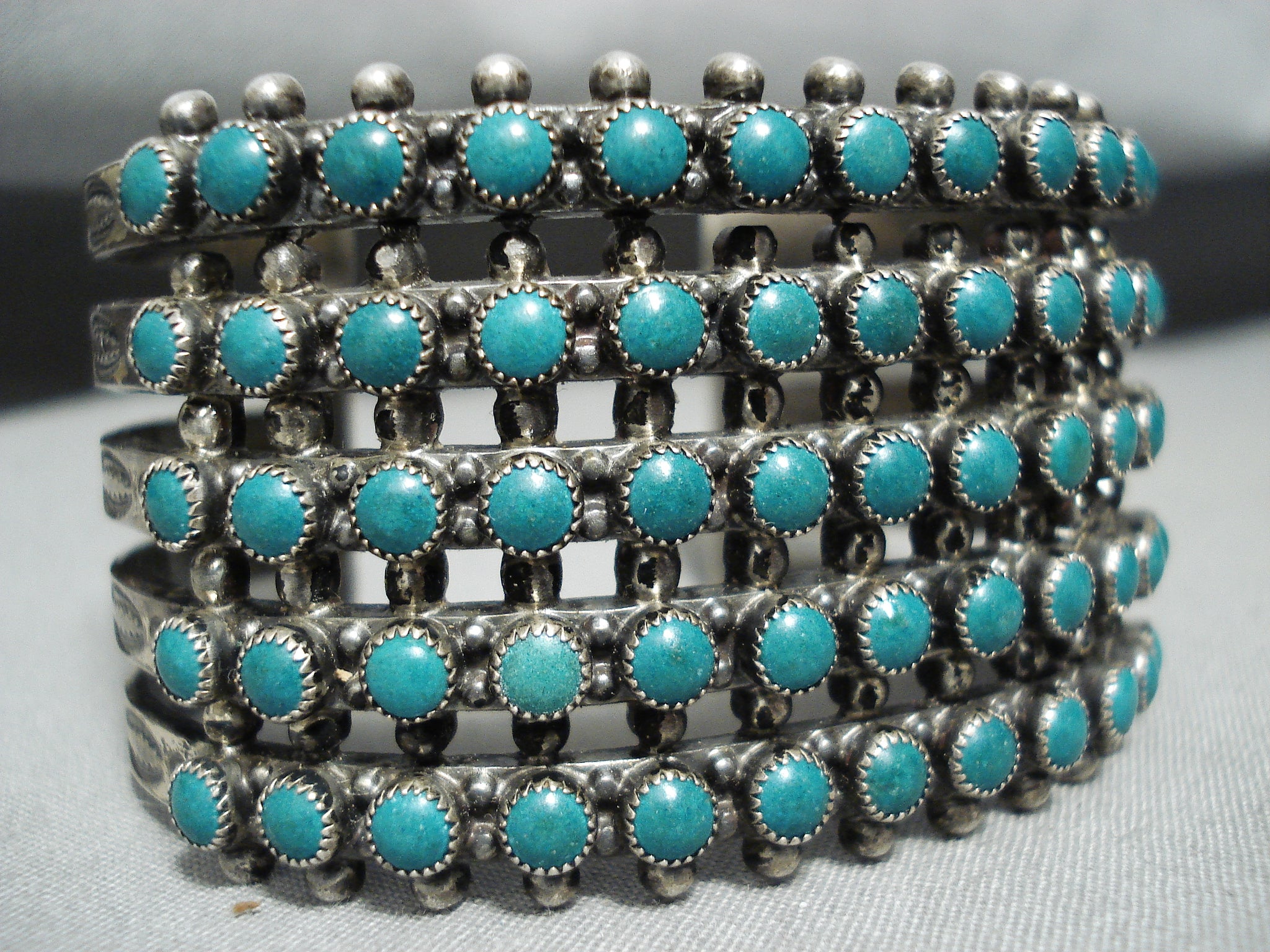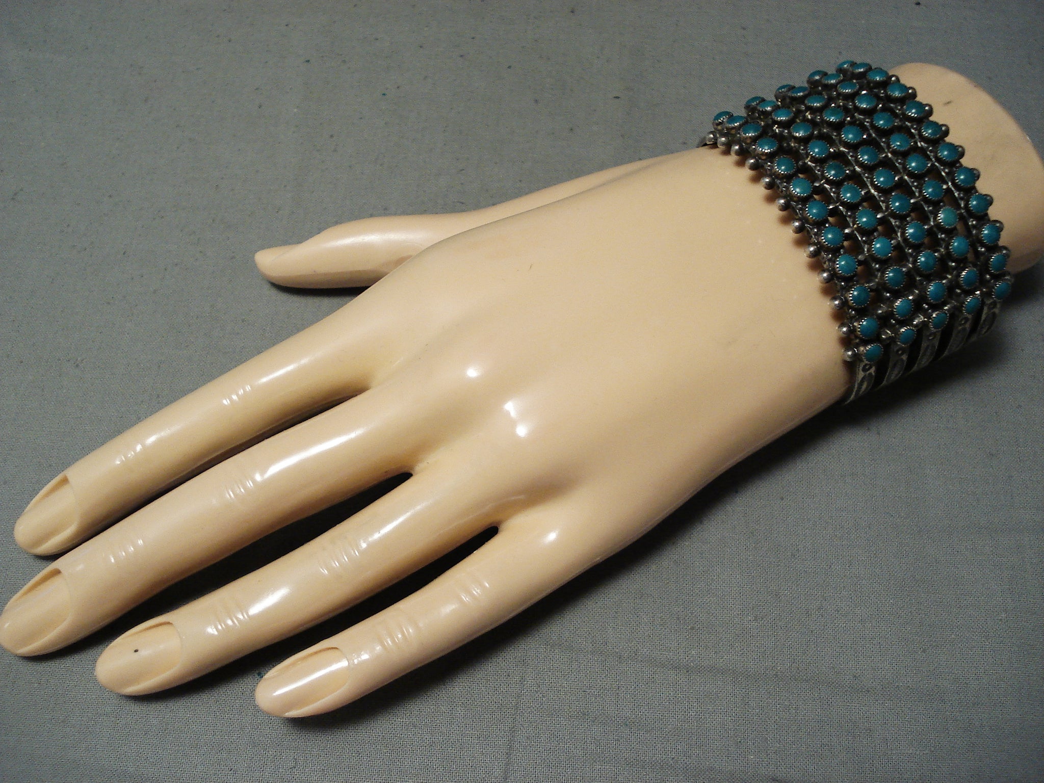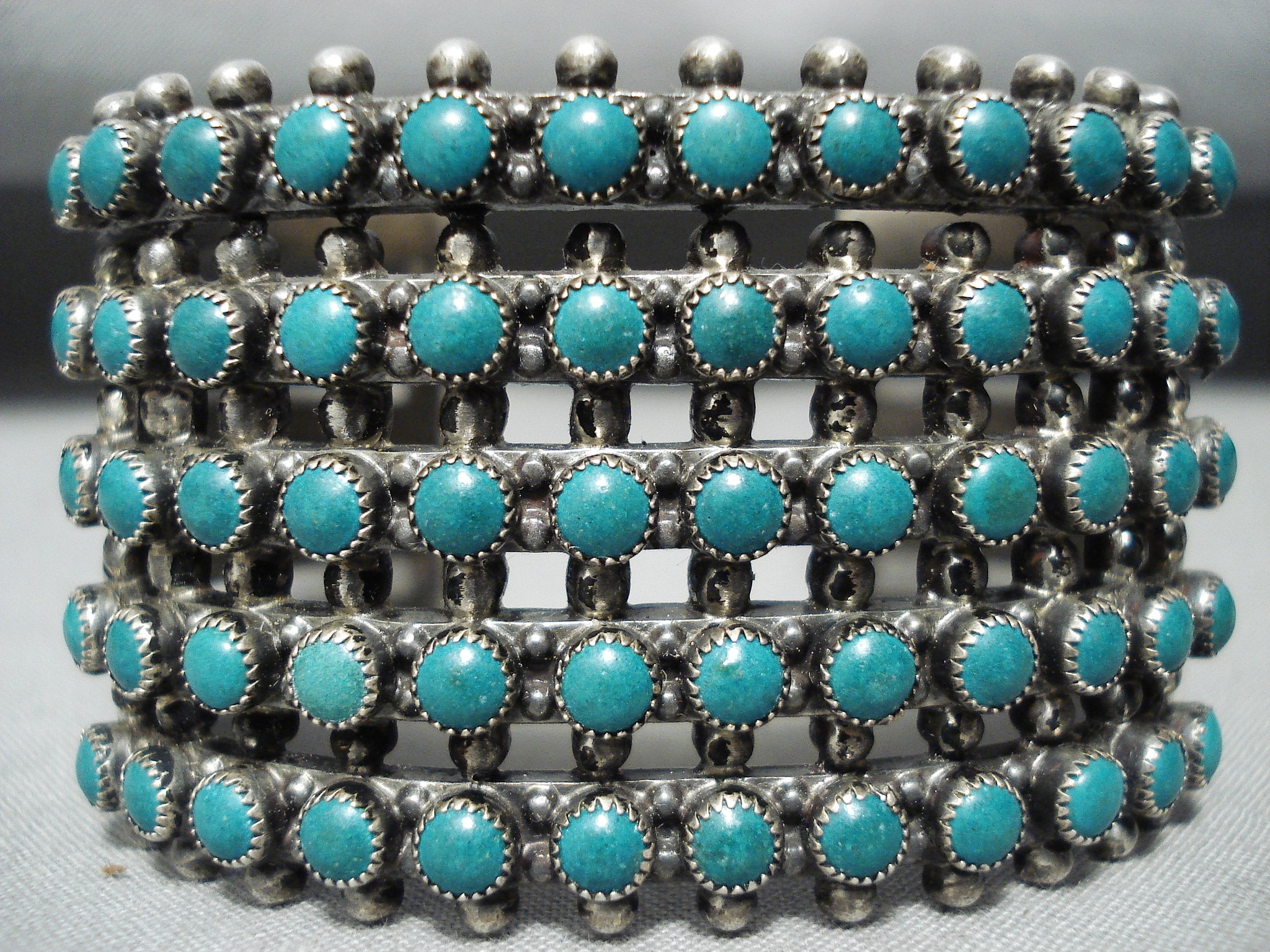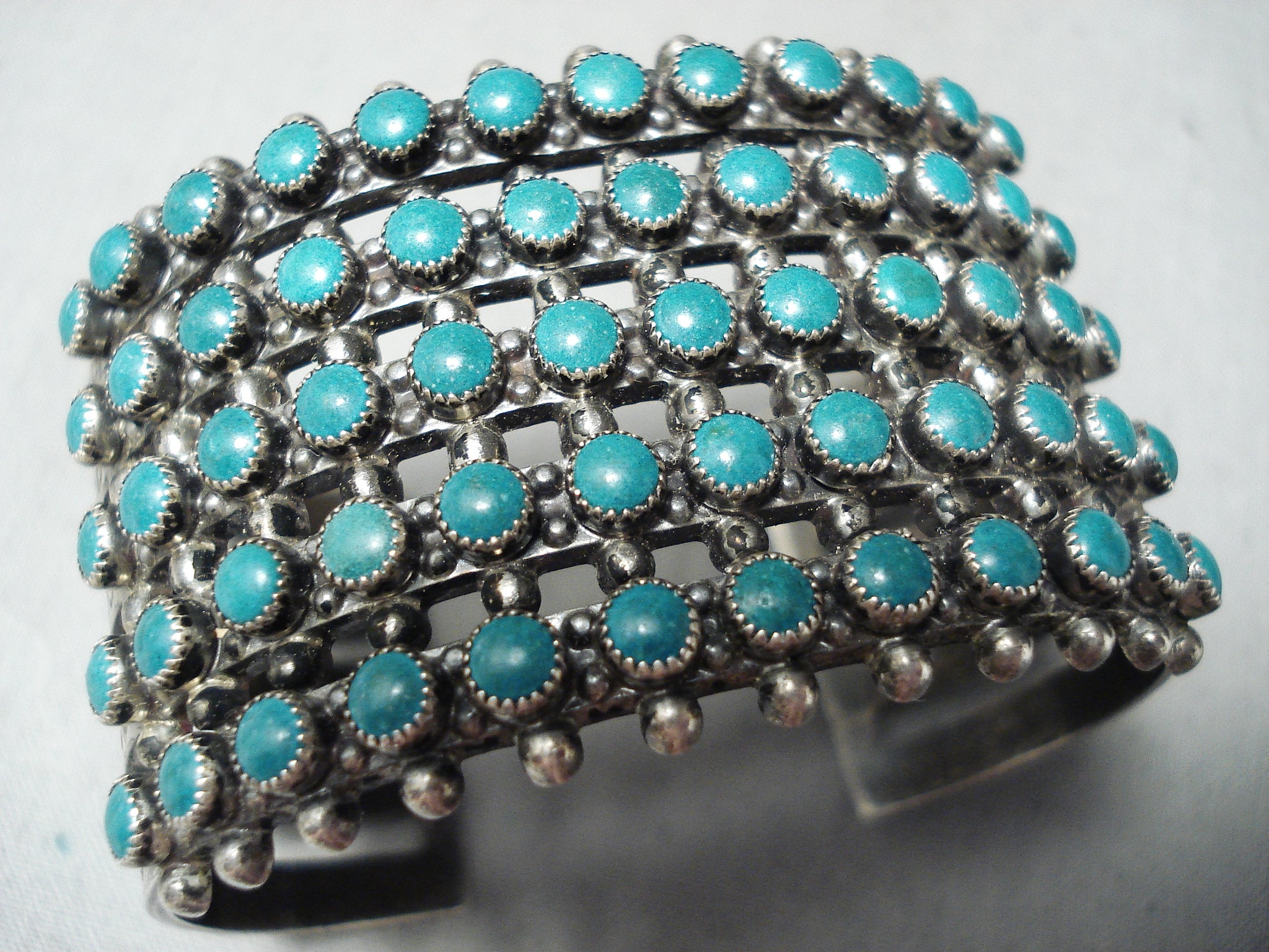 Native American Wide Vintage Zuni Turquoise Snake Eyes Sterling Silver Bracelet