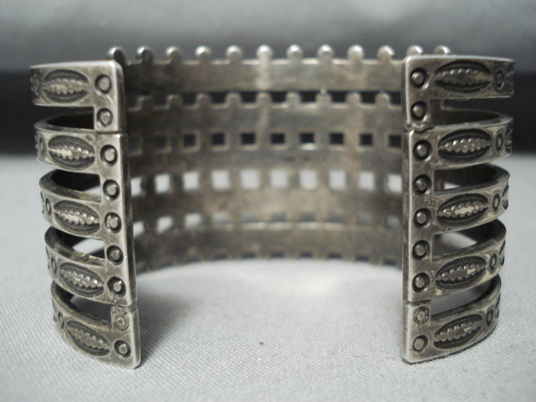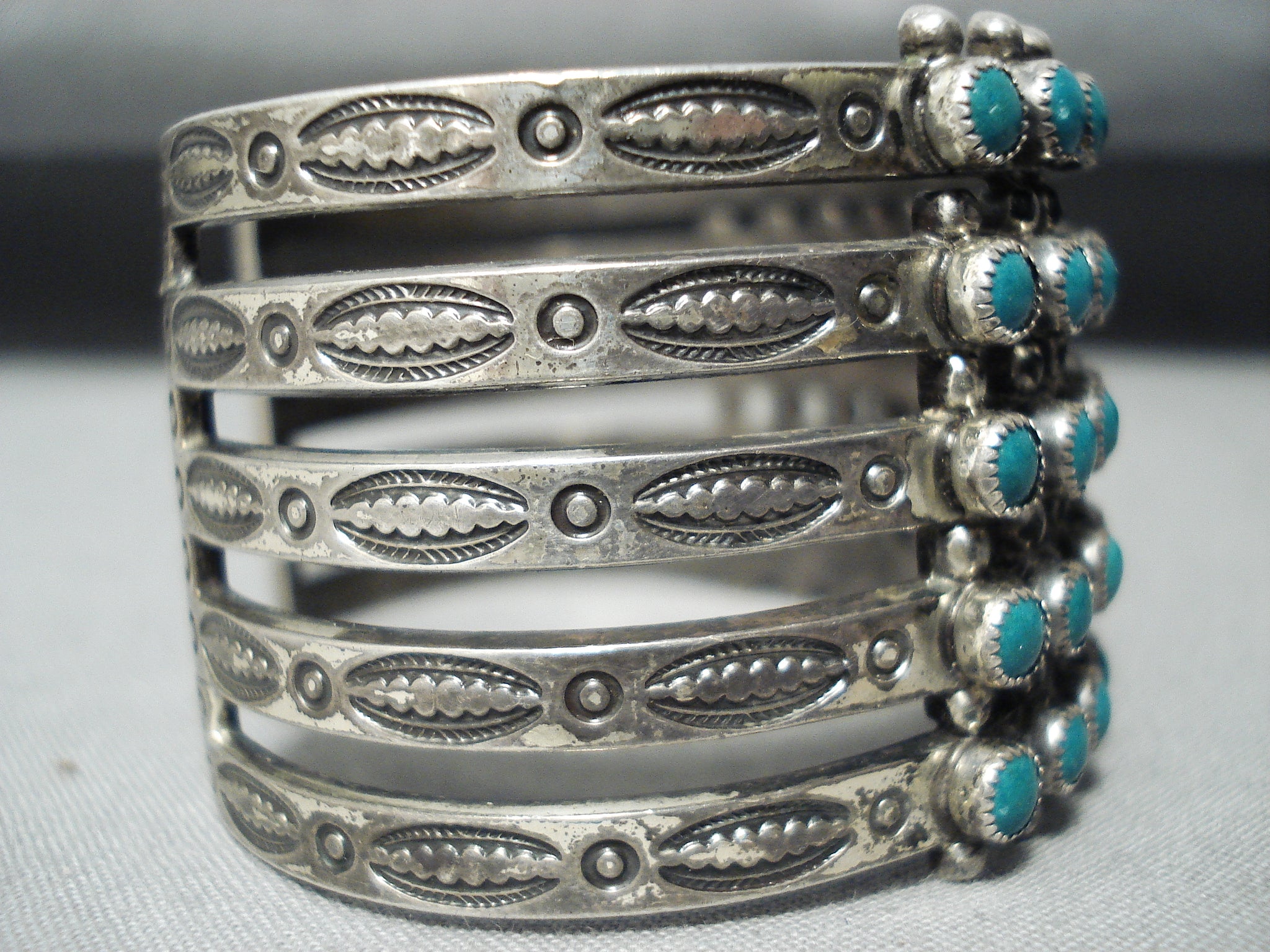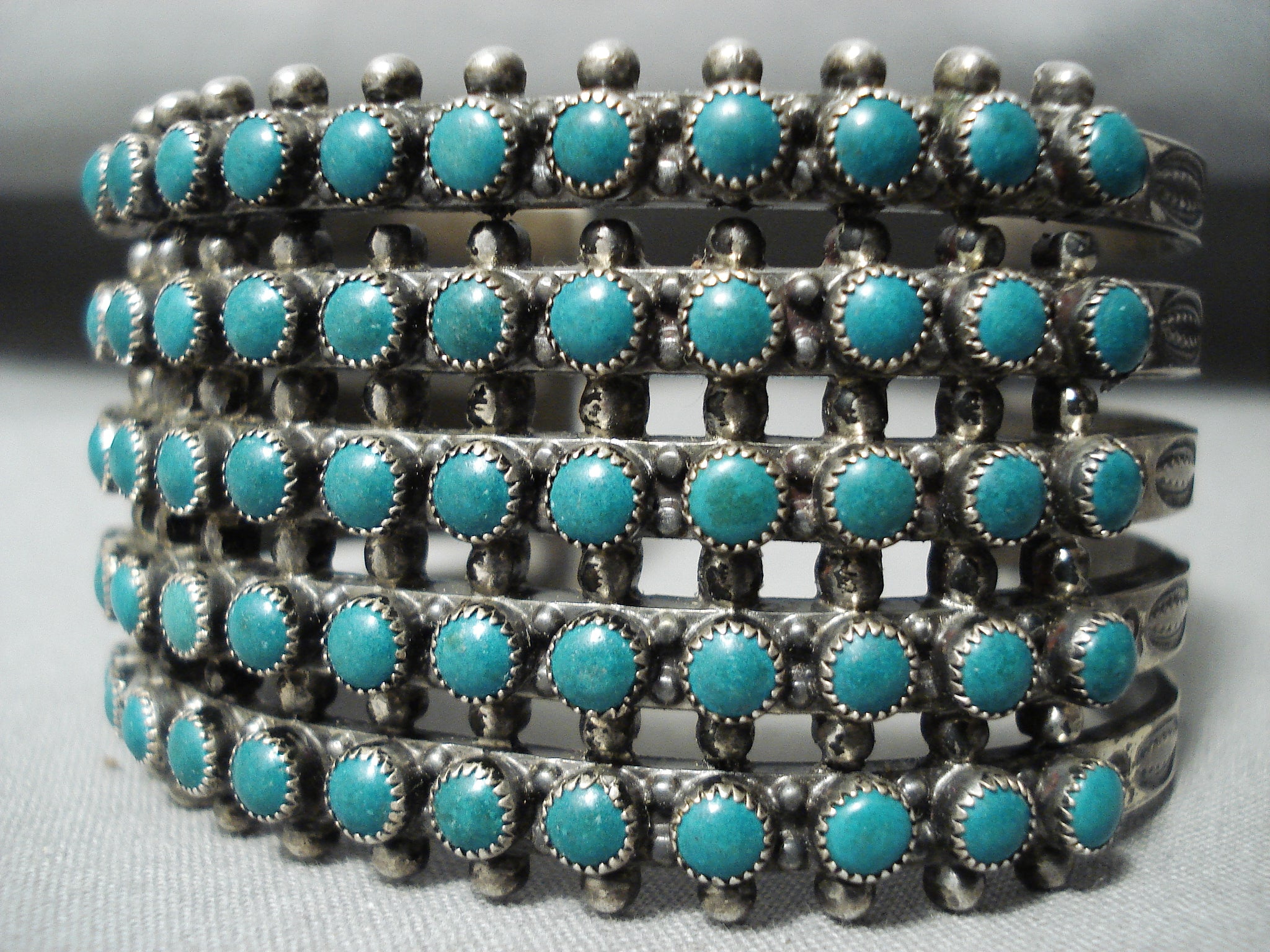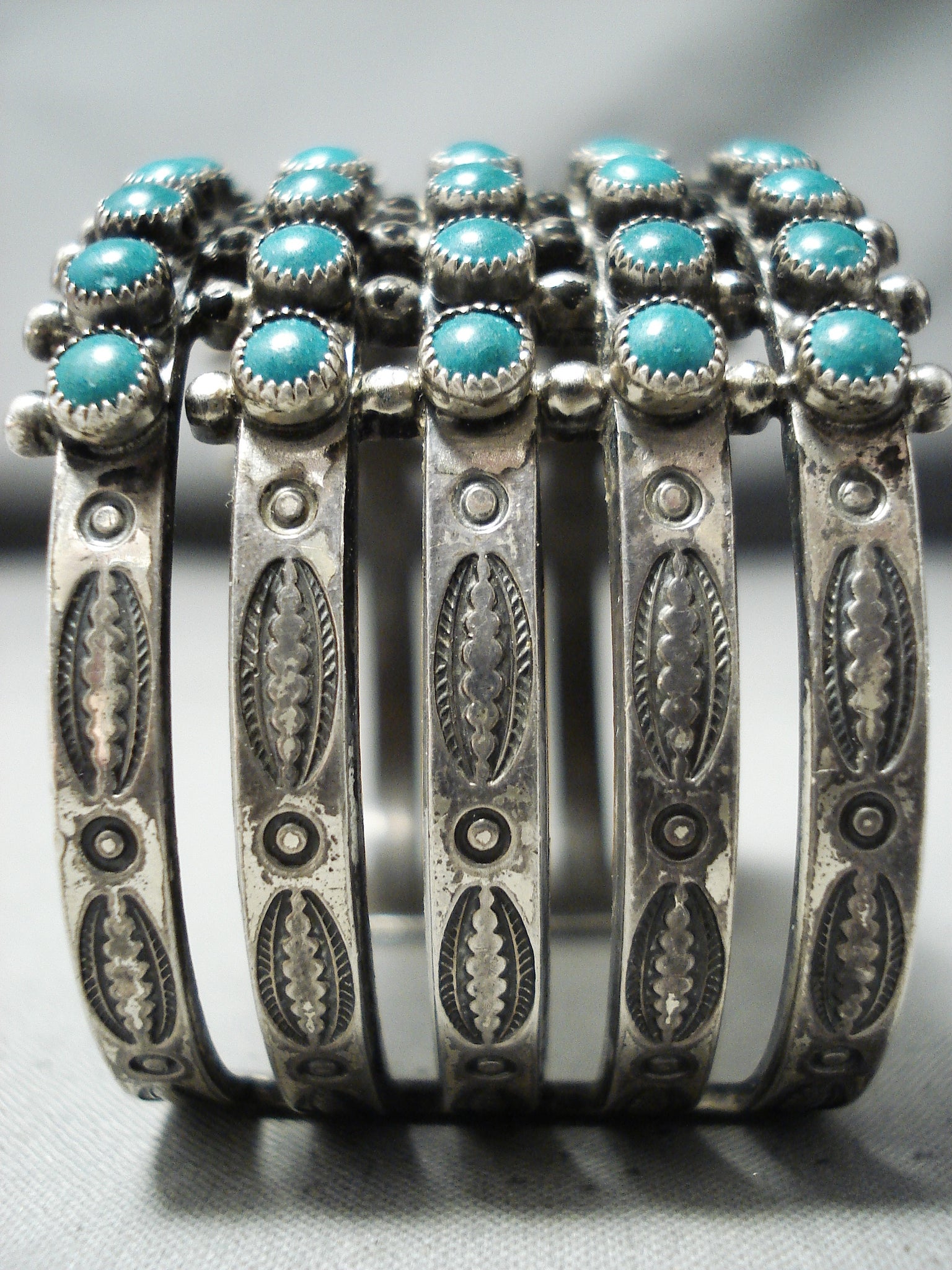 Native American Wide Vintage Zuni Turquoise Snake Eyes Sterling Silver Bracelet