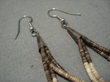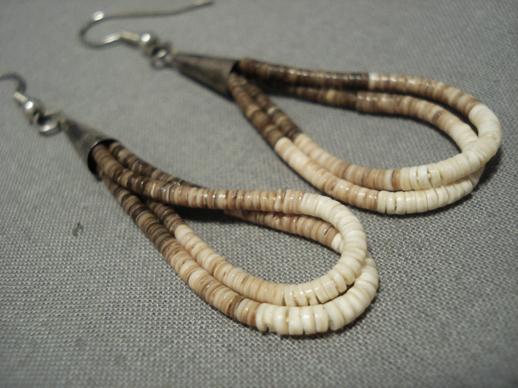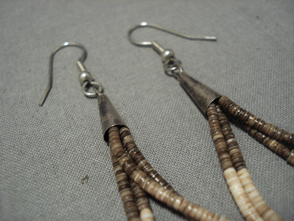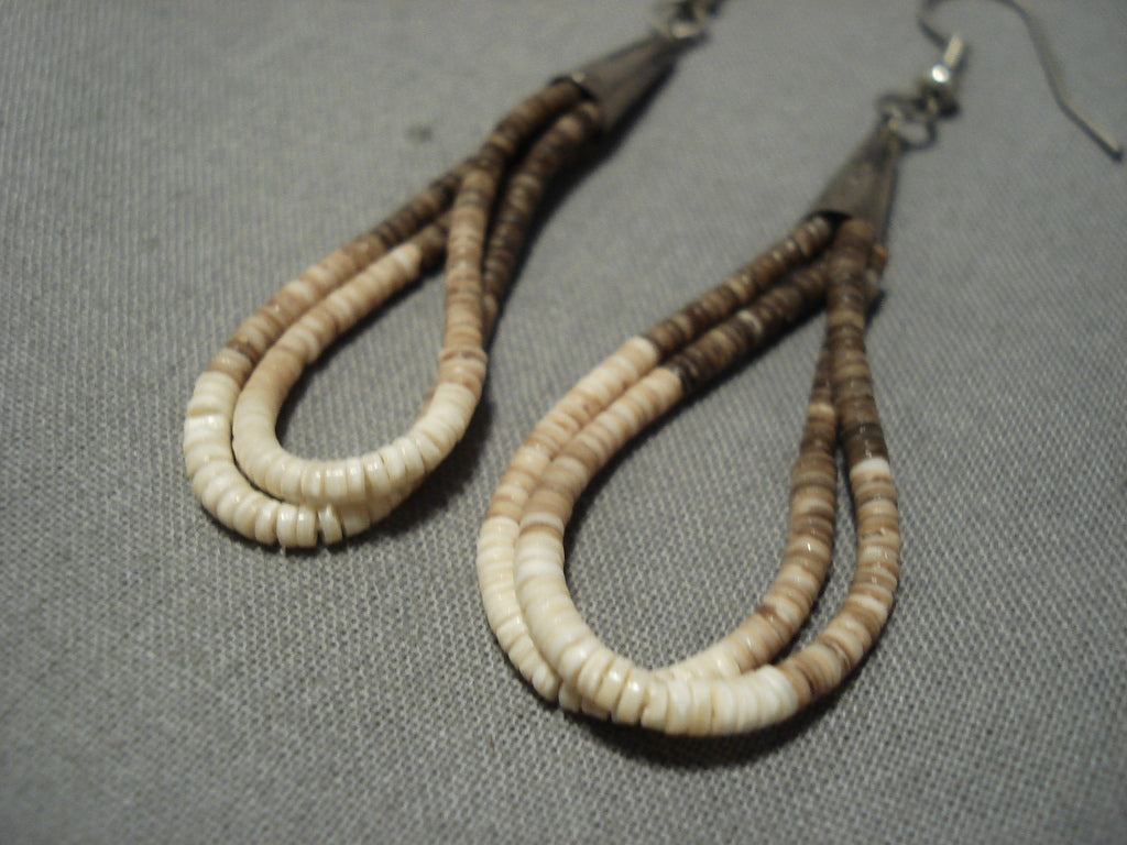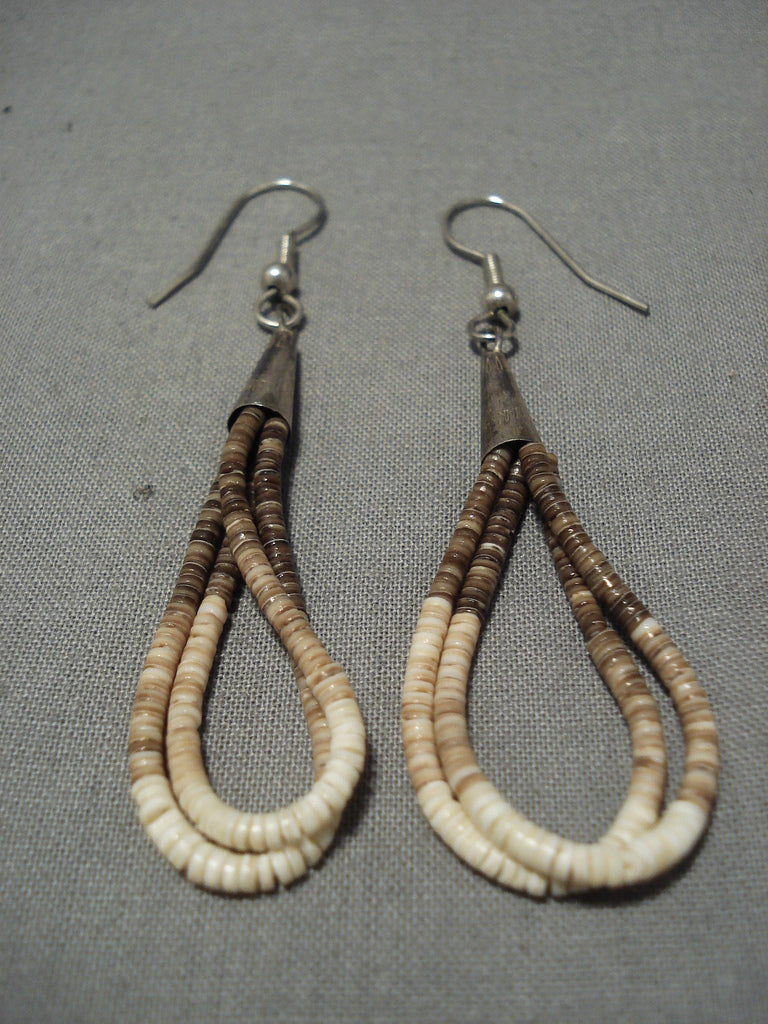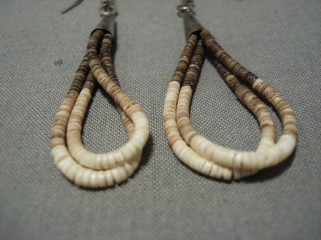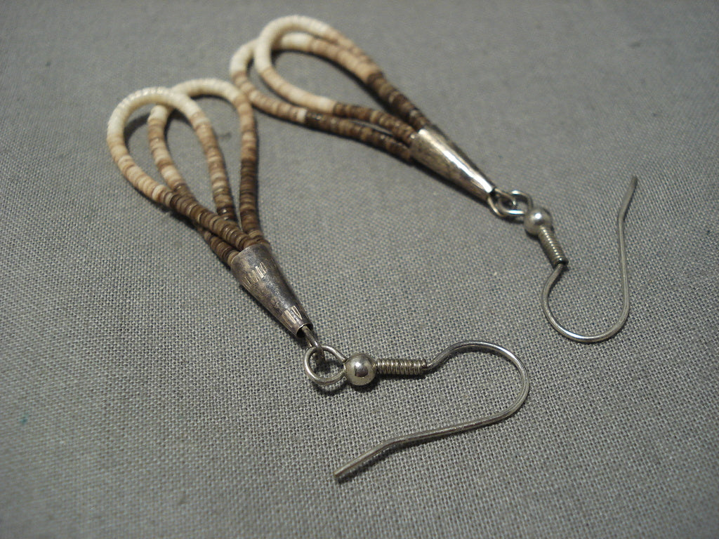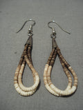 Native American Wonderful Vintage Santo Domingo Sterling Silver Mona Bird Heishi Earrings