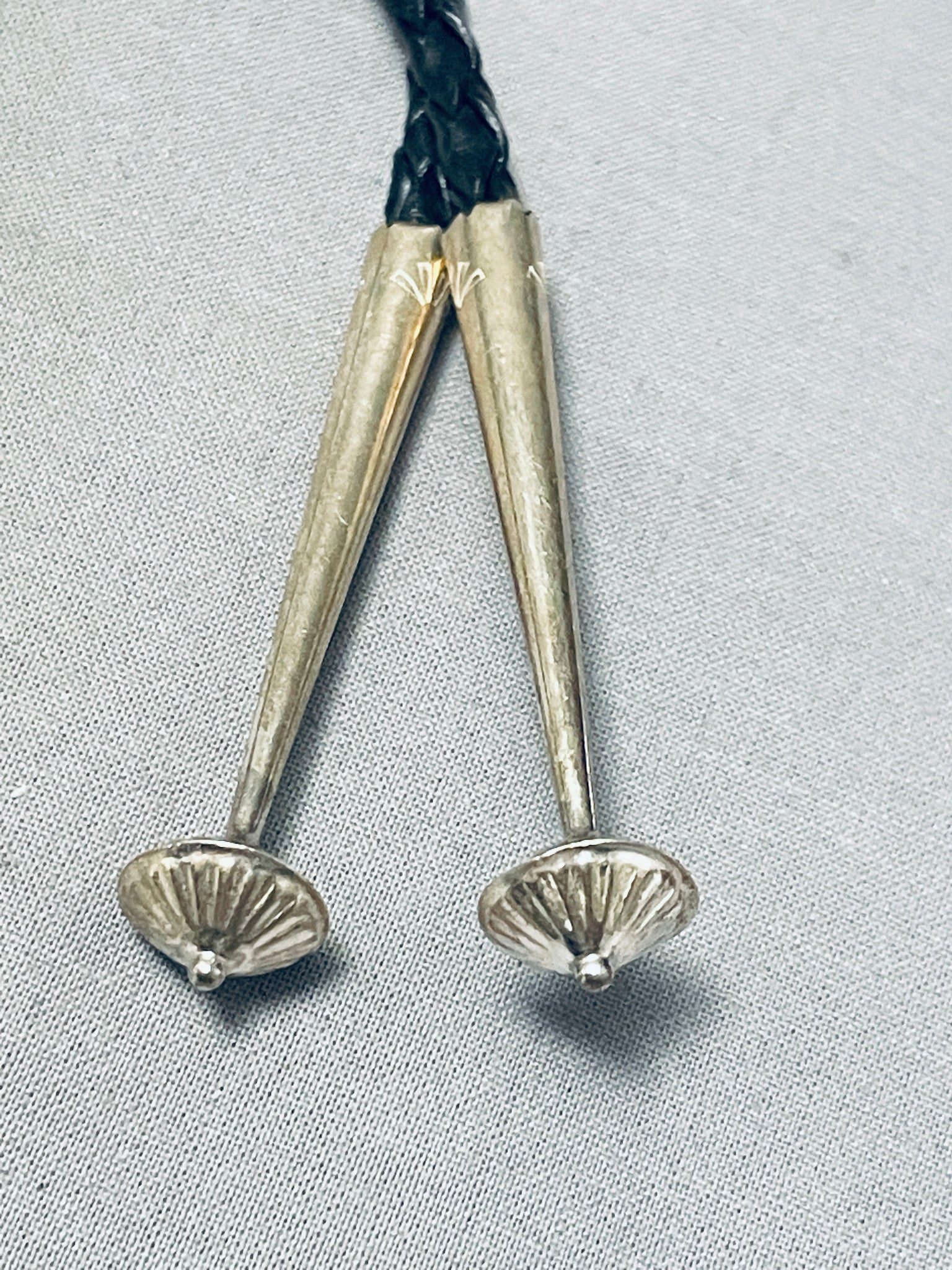Natural Photograph Stone Vintage Native American Navajo Petrified Wood Sterling Silver Bolo Tie