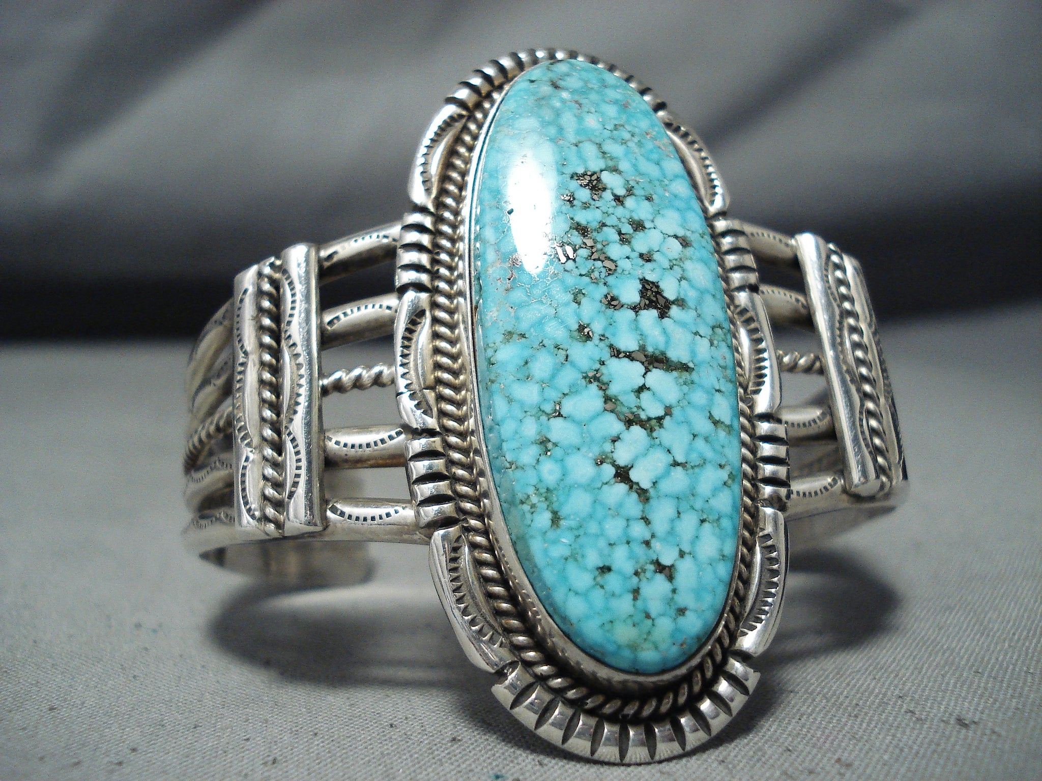 Newsworthy Native American Navajo Spiderweb Turquoise Sterling Silver Bracelet