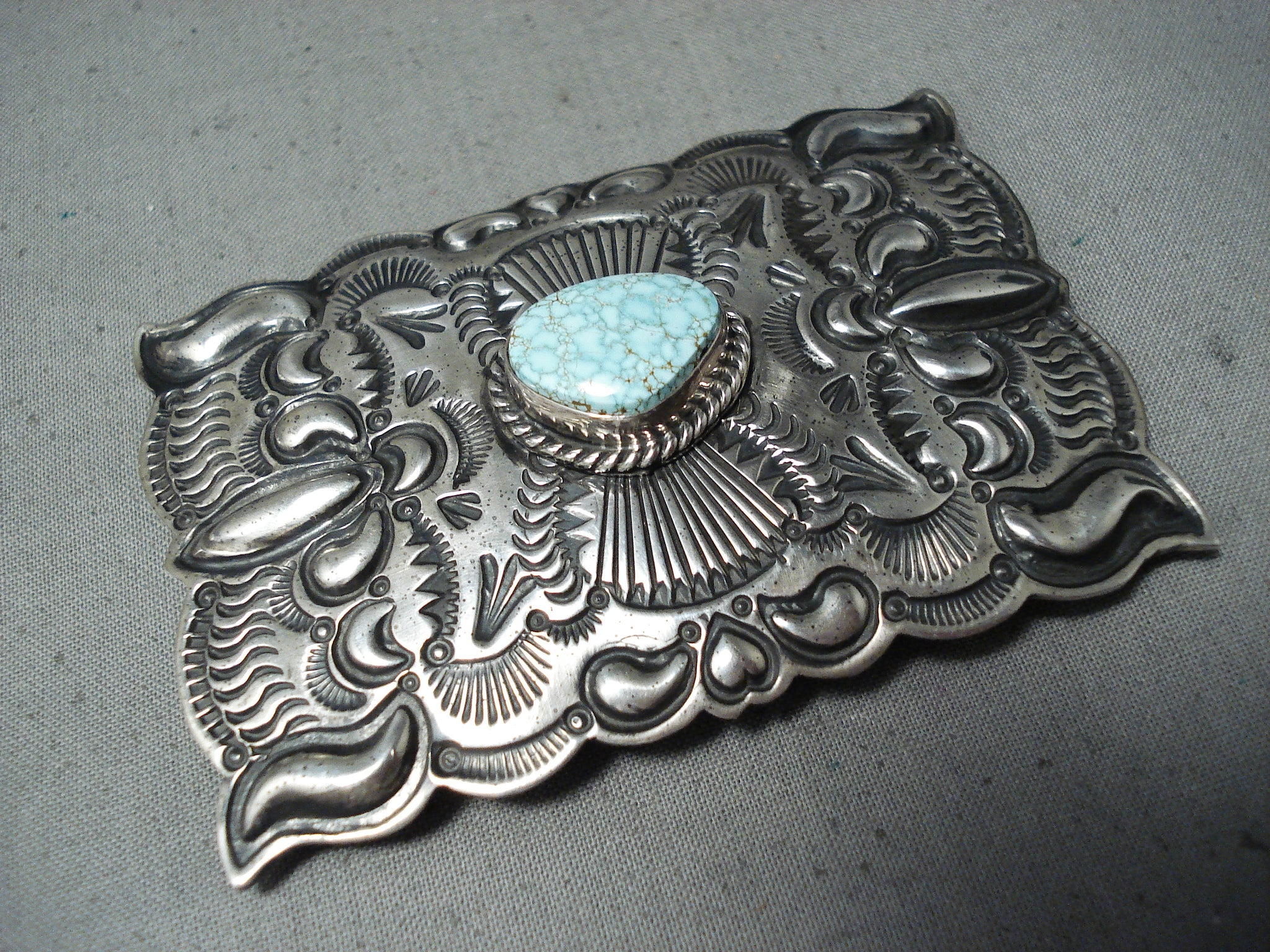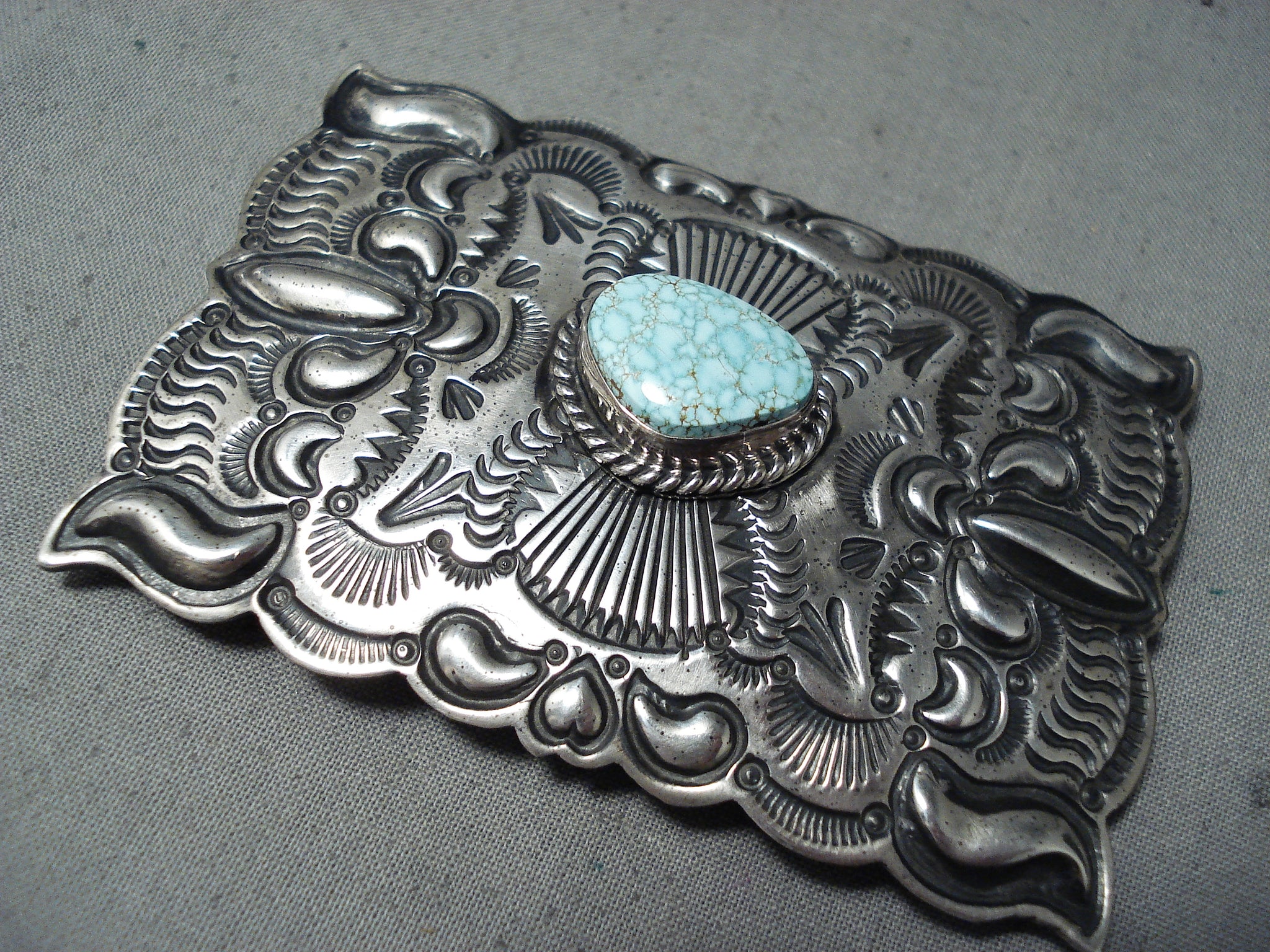 Newsworthy Vintage Native American Navajo #8 Turquoise Mine Sterling Silver Buckle Old