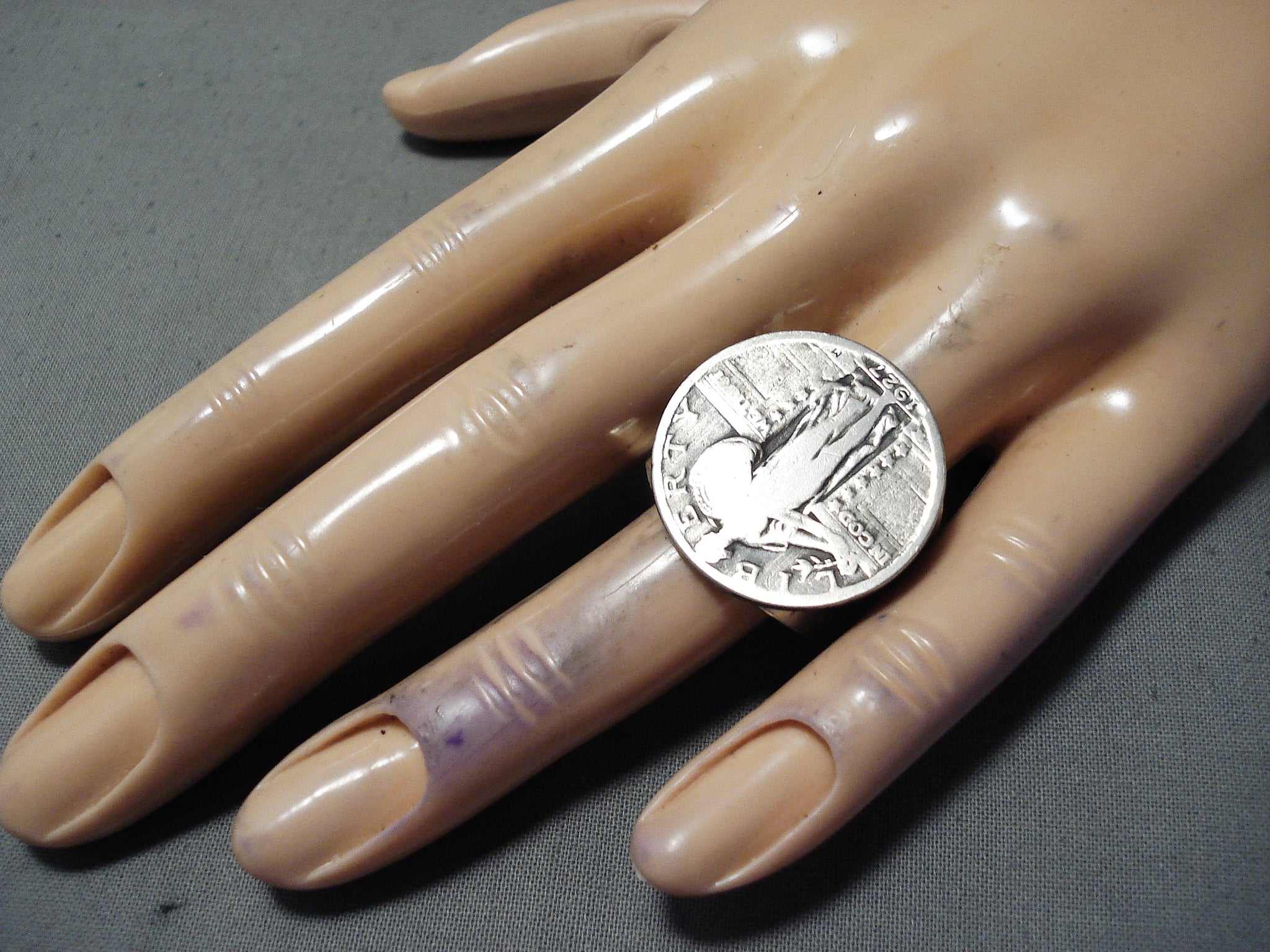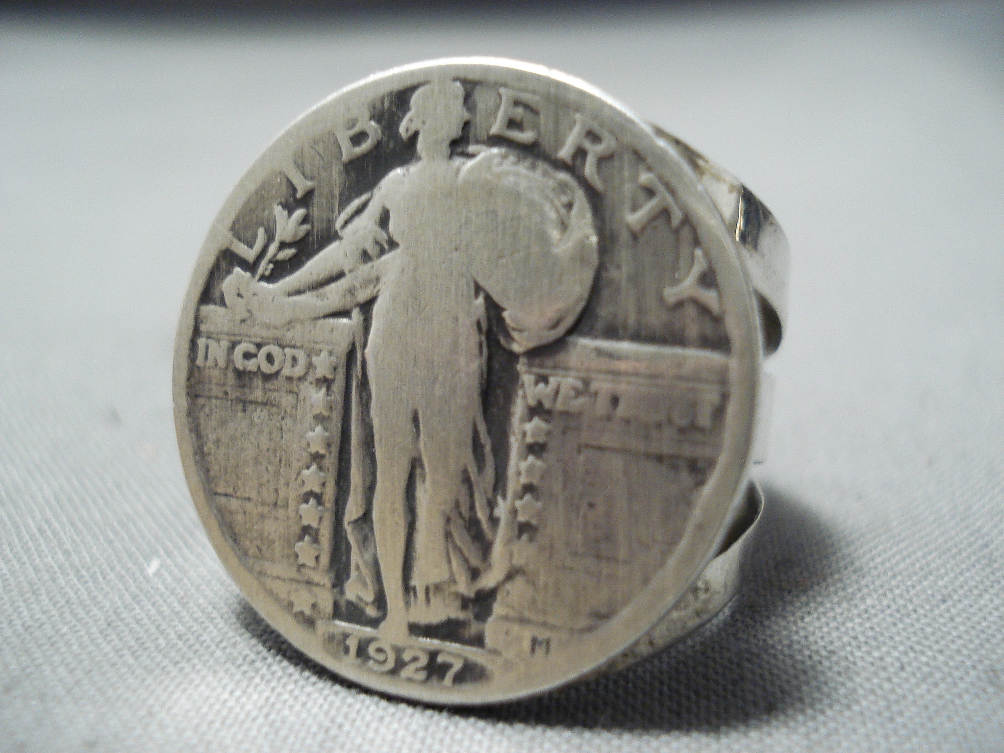 One Of A Kind Navajo Sterling Silver Quarter Ring Native American