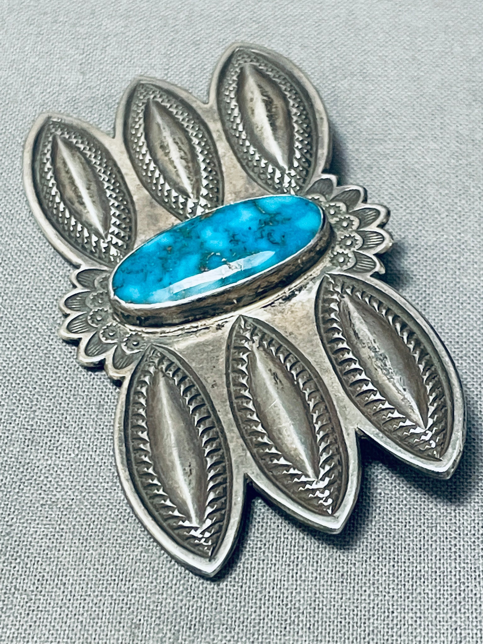 One Of Best Artists Vintage Native American Navajo Perry Shorty Sterling Silver Turquoise Pin