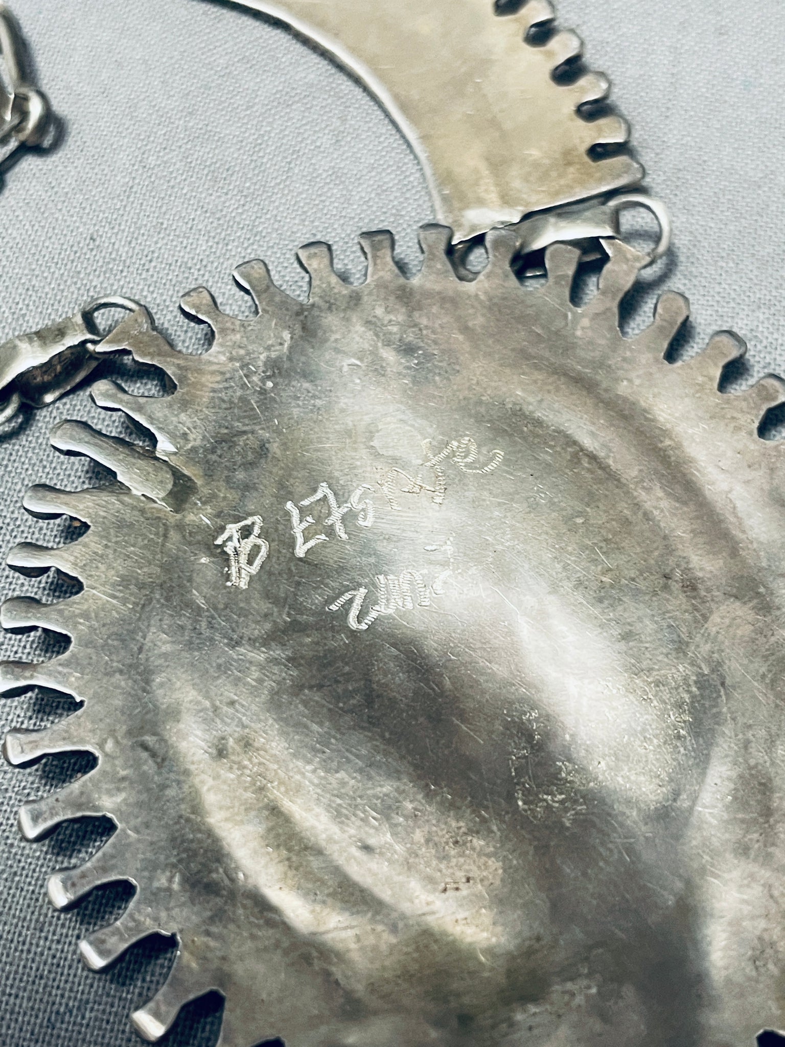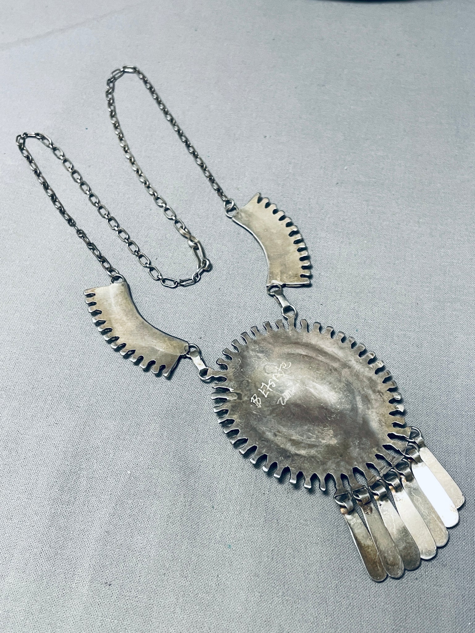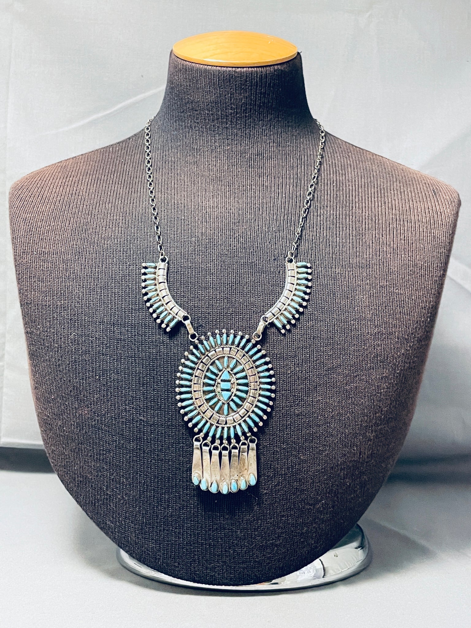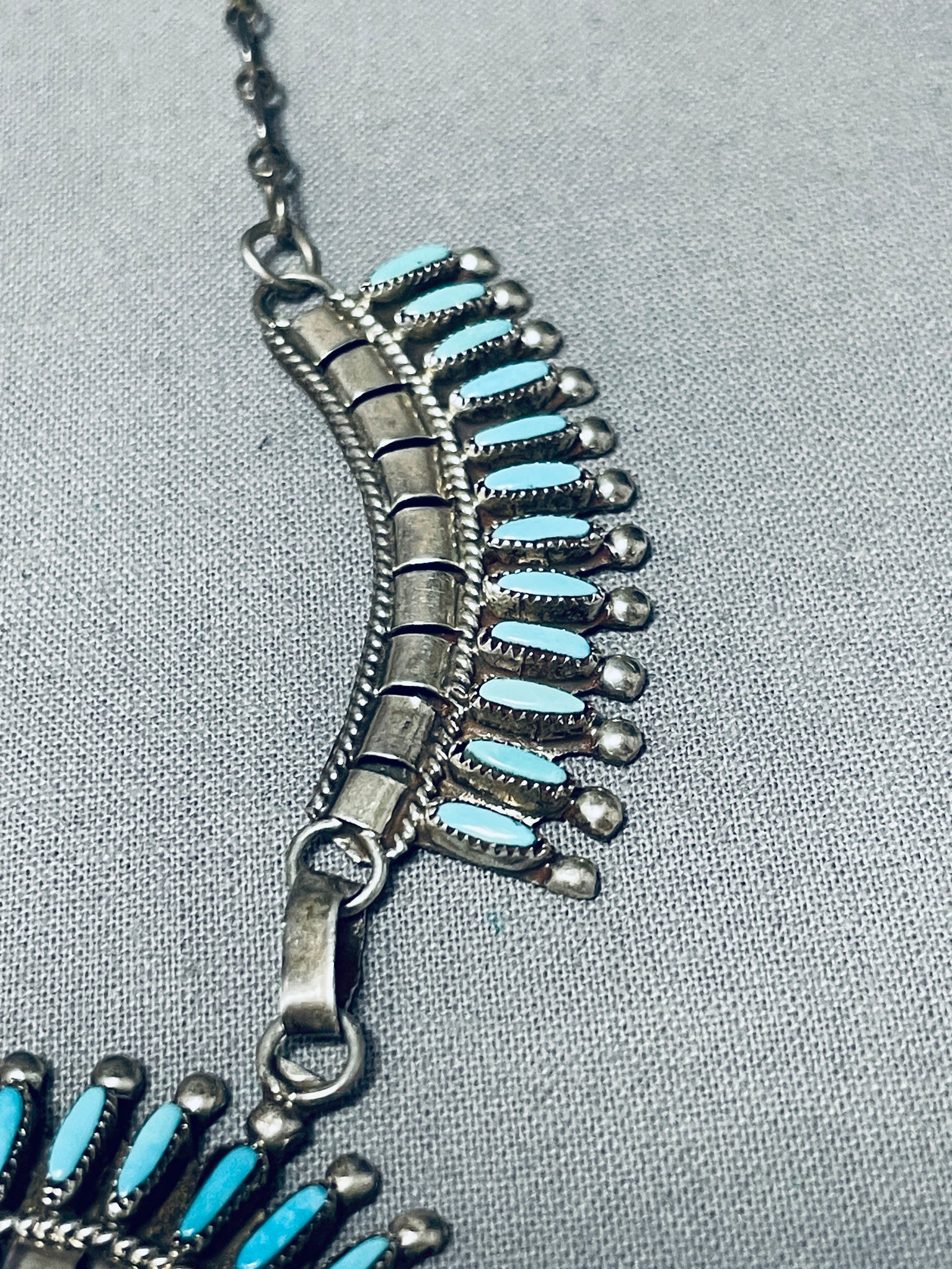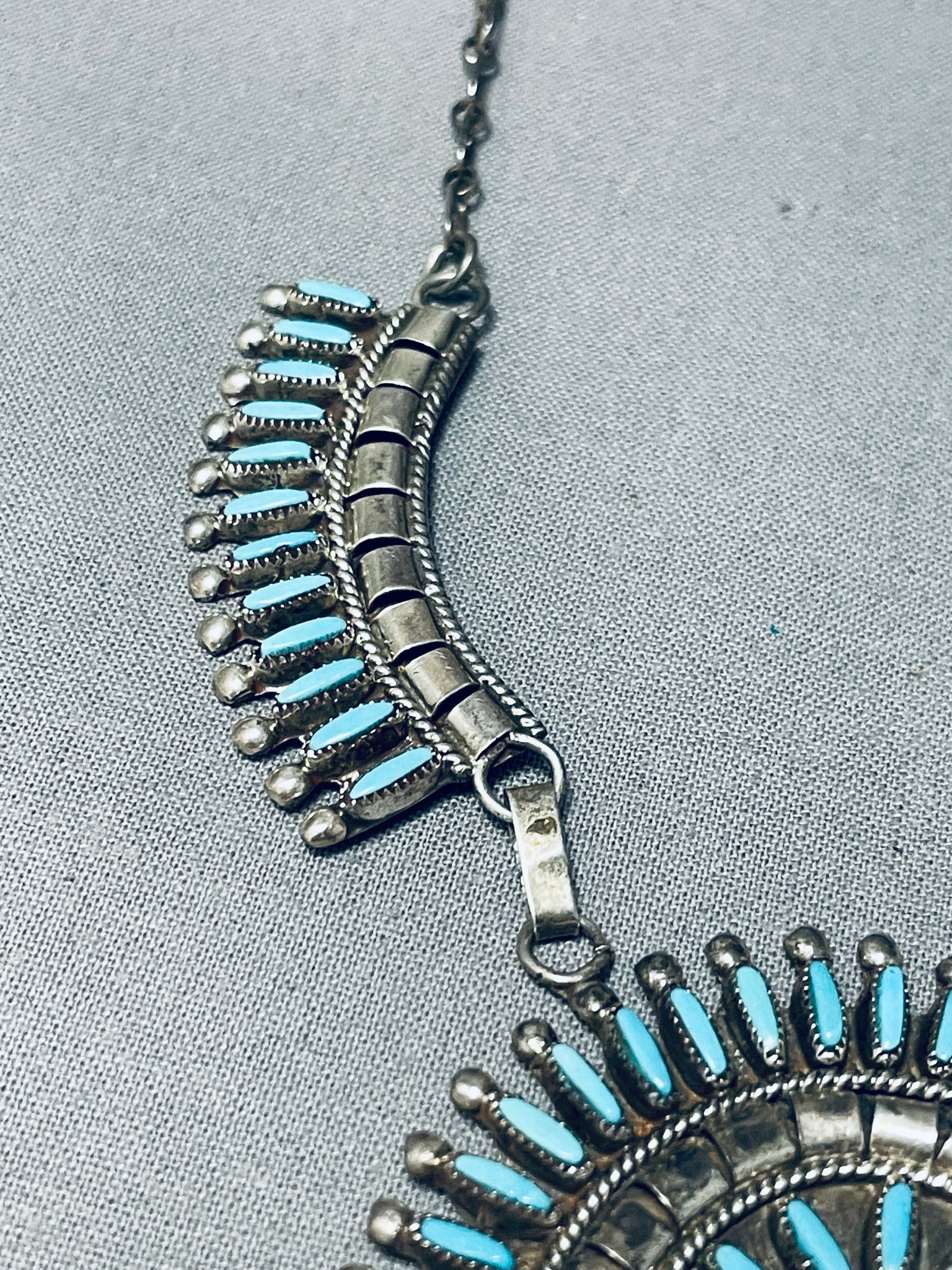 One Of Best Intricate Stone Work Vintage Native American Zuni Turquoise Sterling Silver Necklace