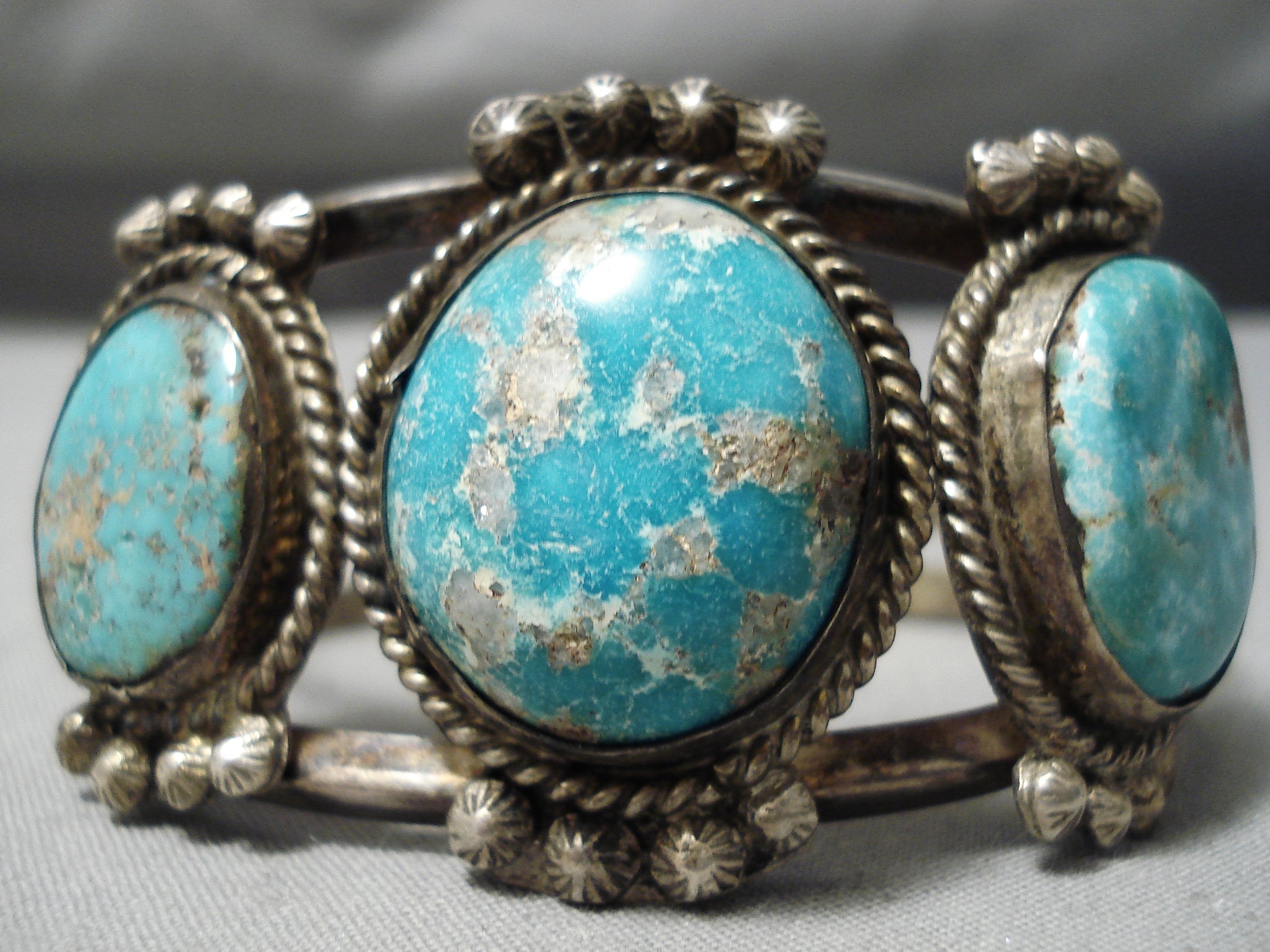 One Of Best Vintage Native American Navajo Gilber Turquoise Sterling Silver Bracelet