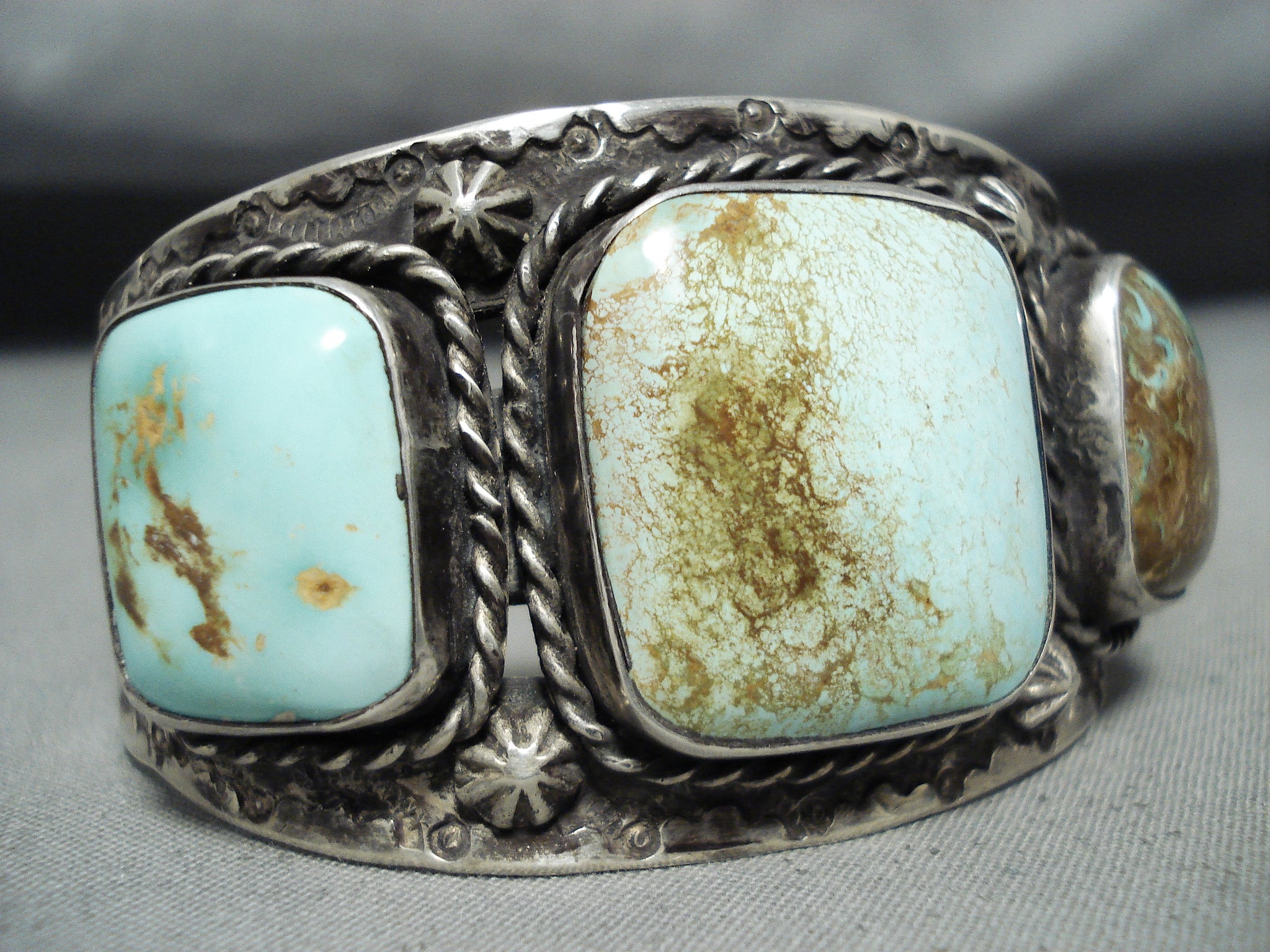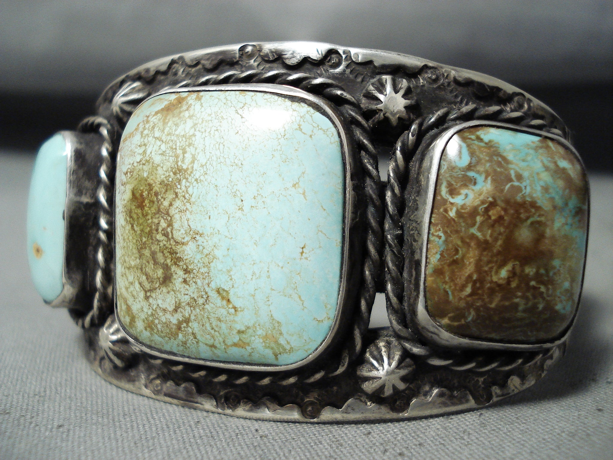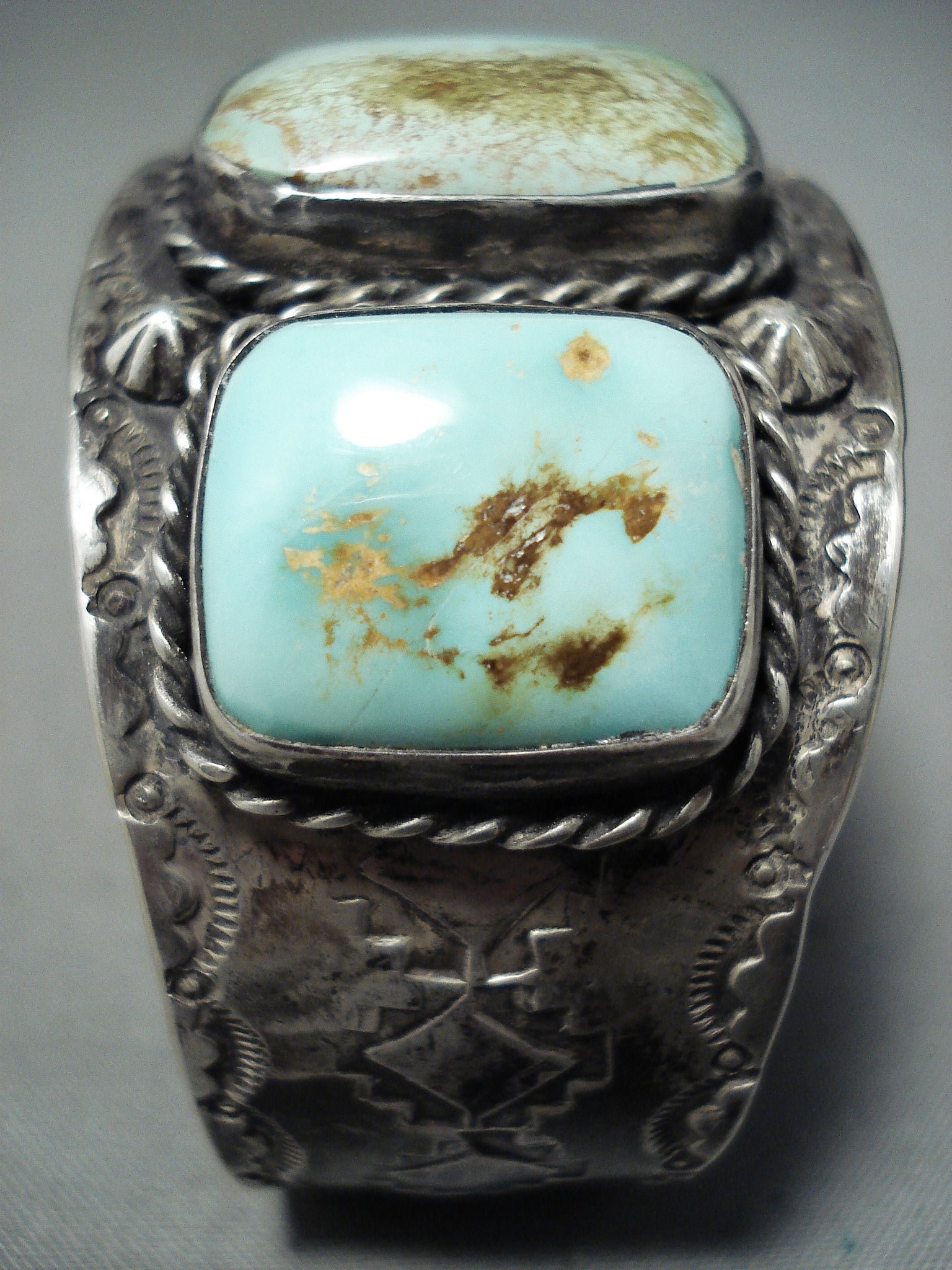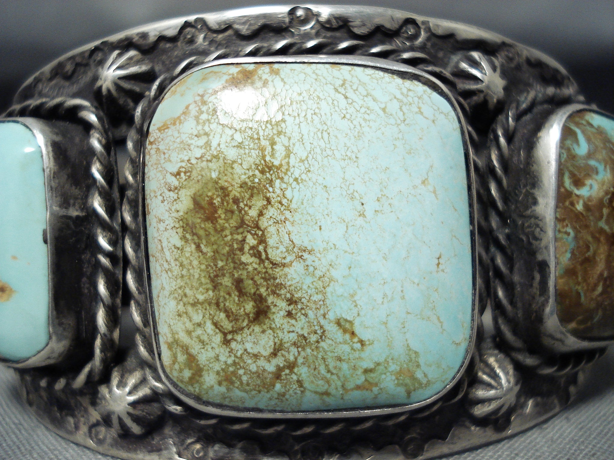 One Of Best Vintage Native American Navajo Squared Royston Turquoise Sterling Silver Bracelet