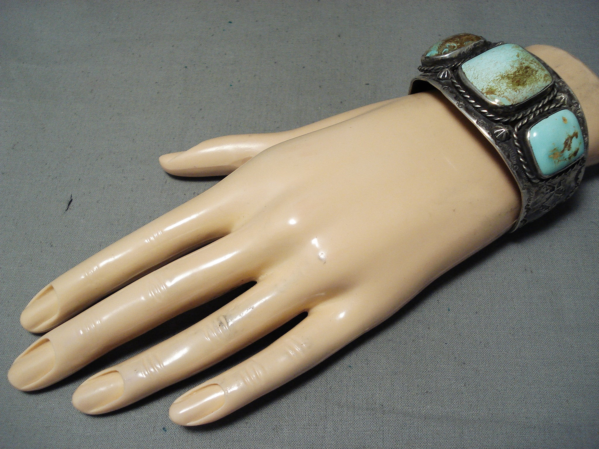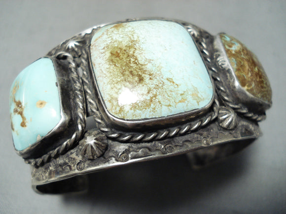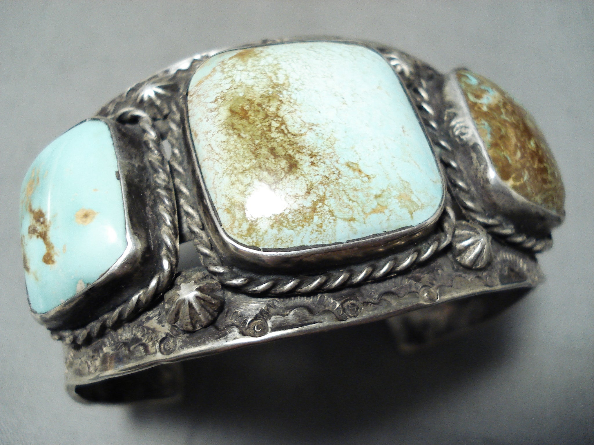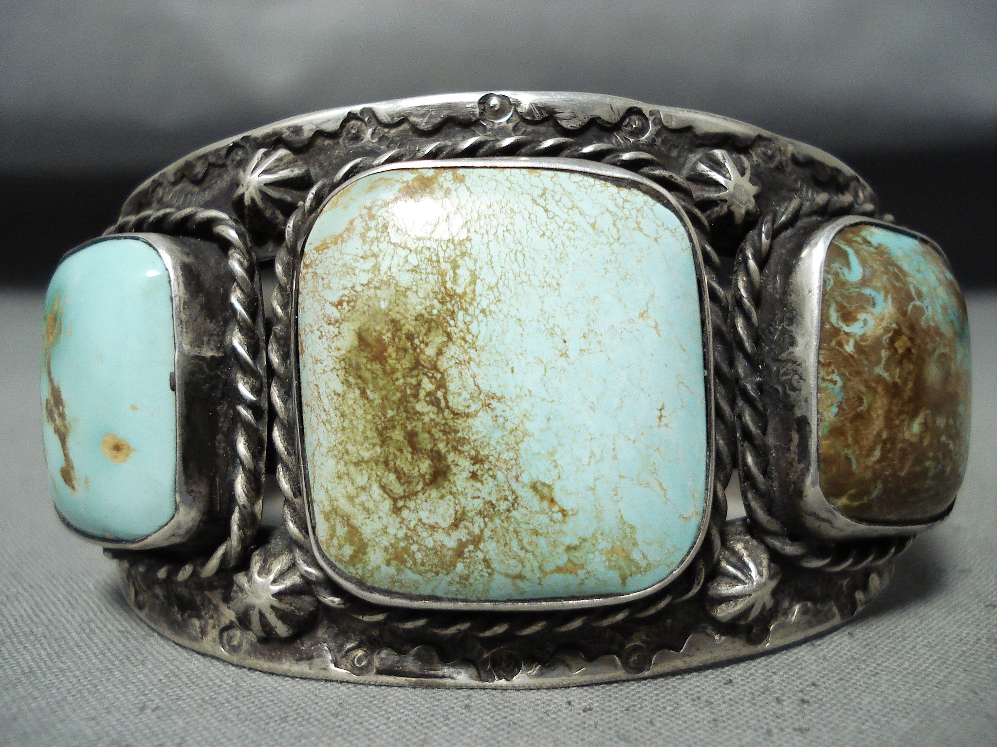 One Of Best Vintage Native American Navajo Squared Royston Turquoise Sterling Silver Bracelet
