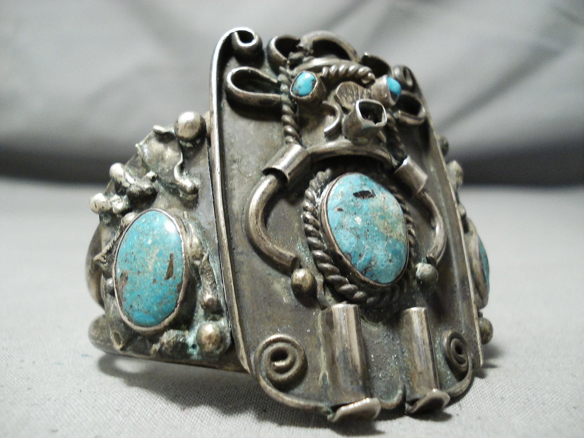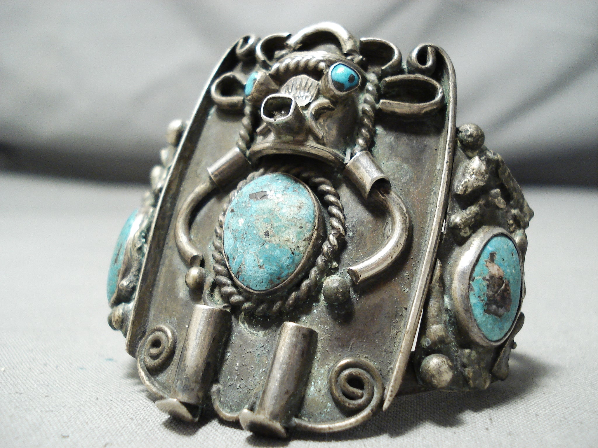One Of Biggest Best Vintage Native American Navajo Kachina Turquoise Sterling Silver Bracelet
