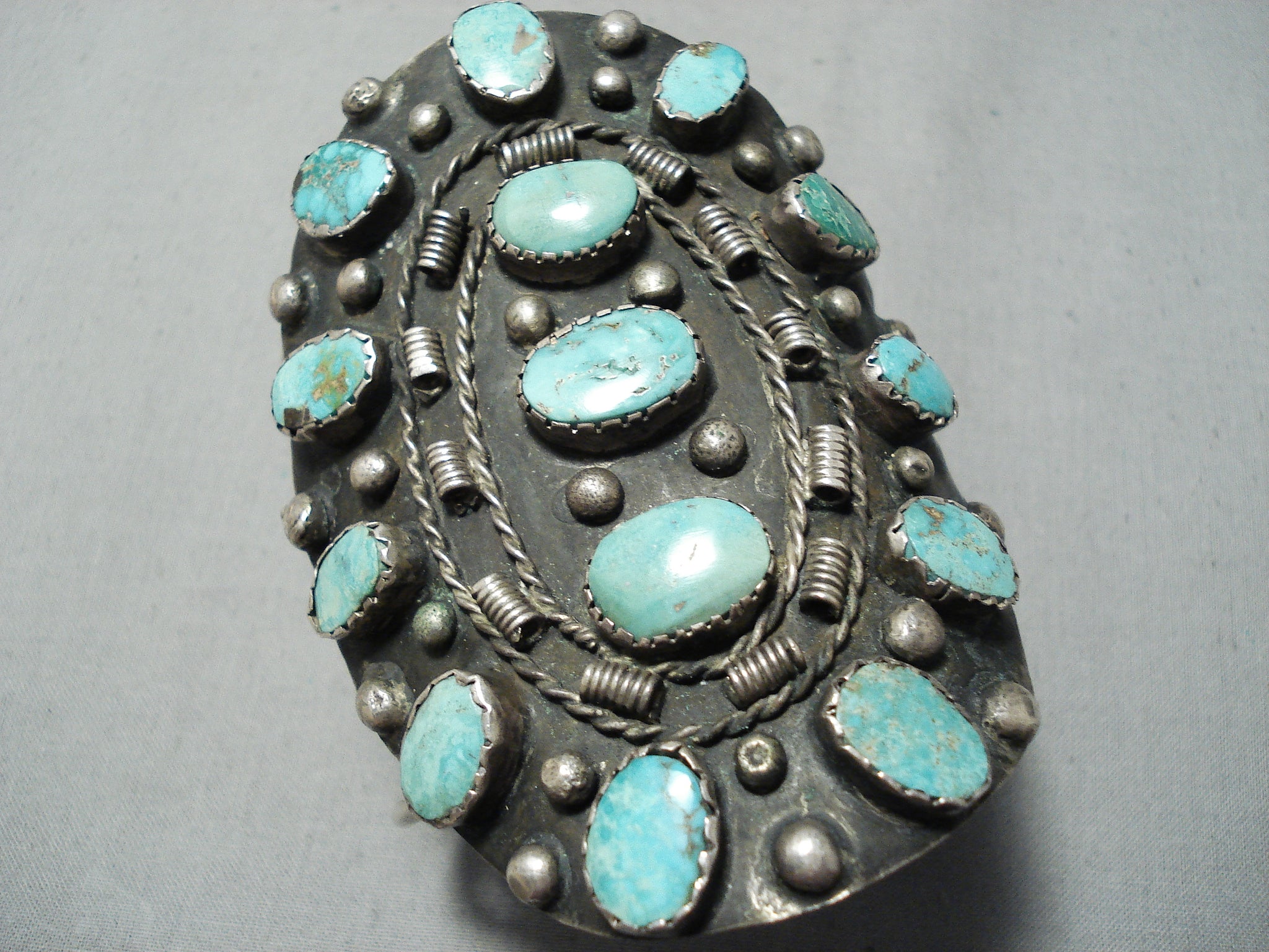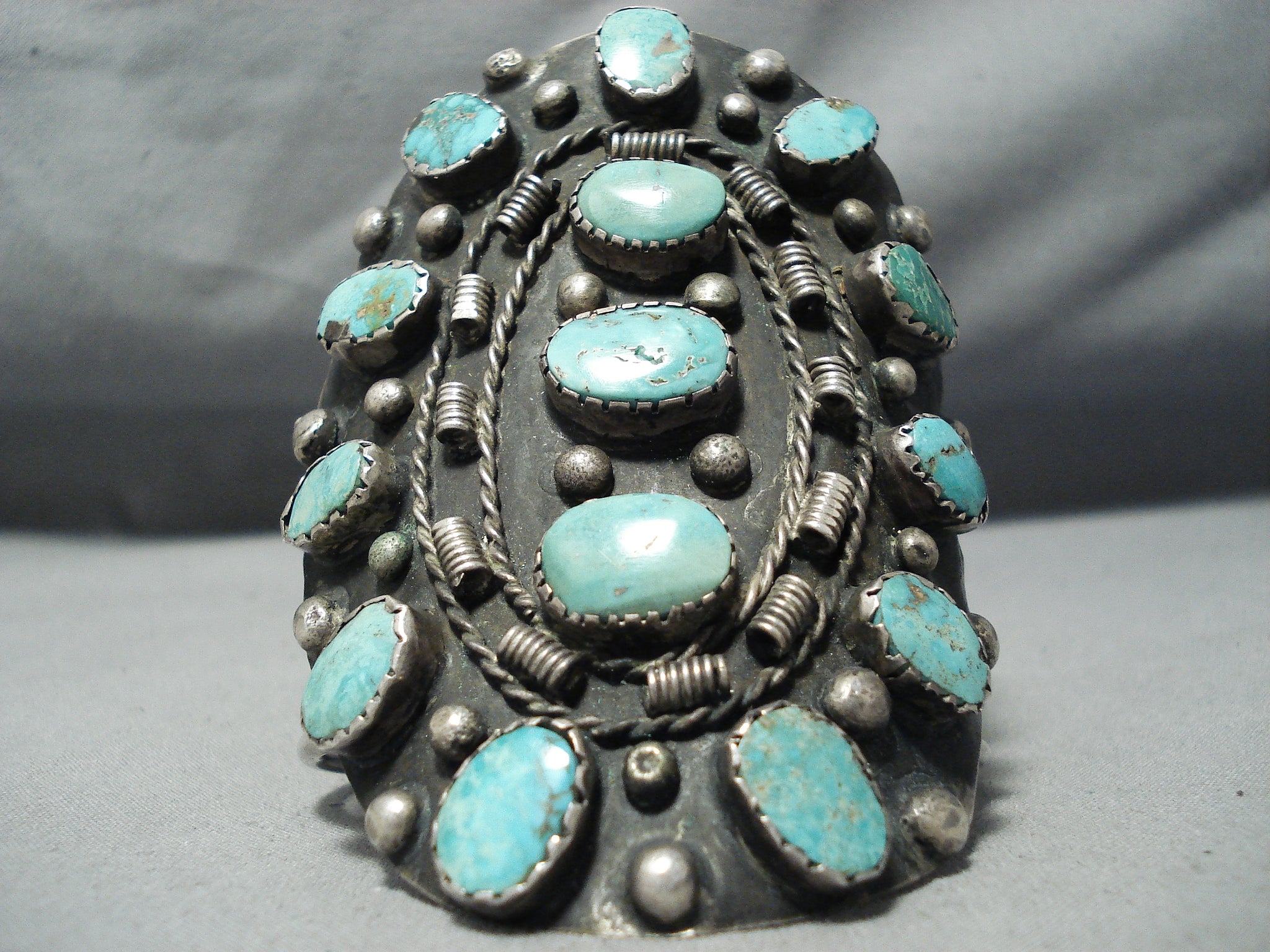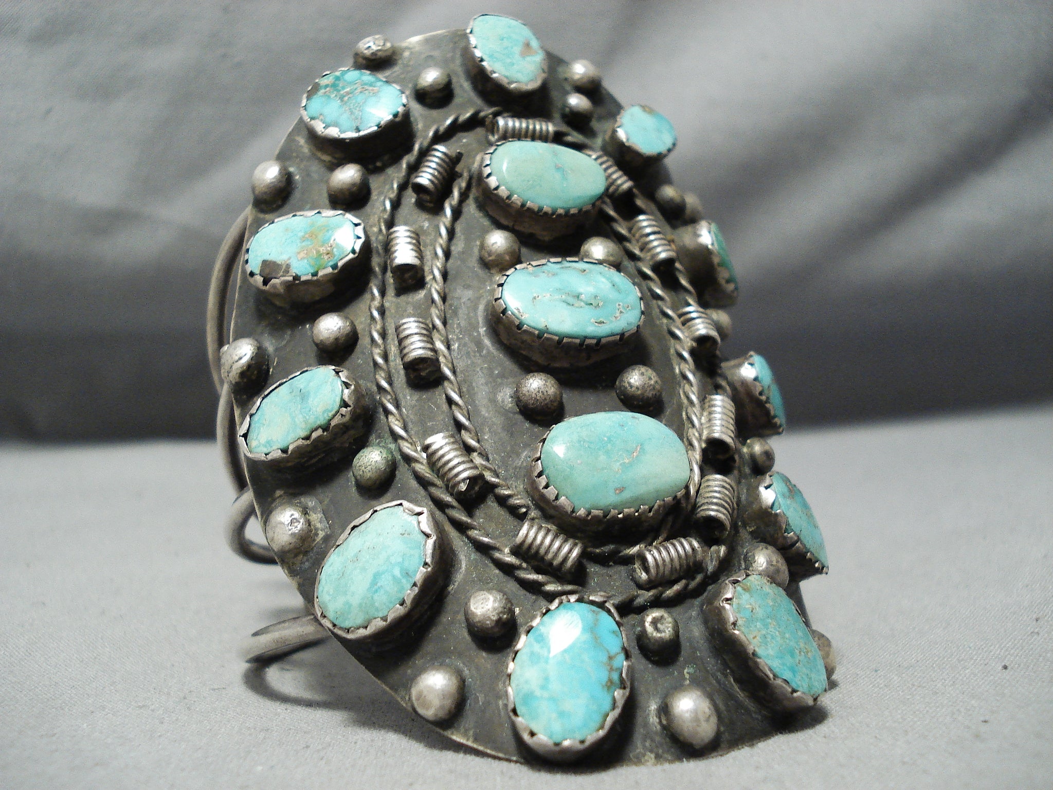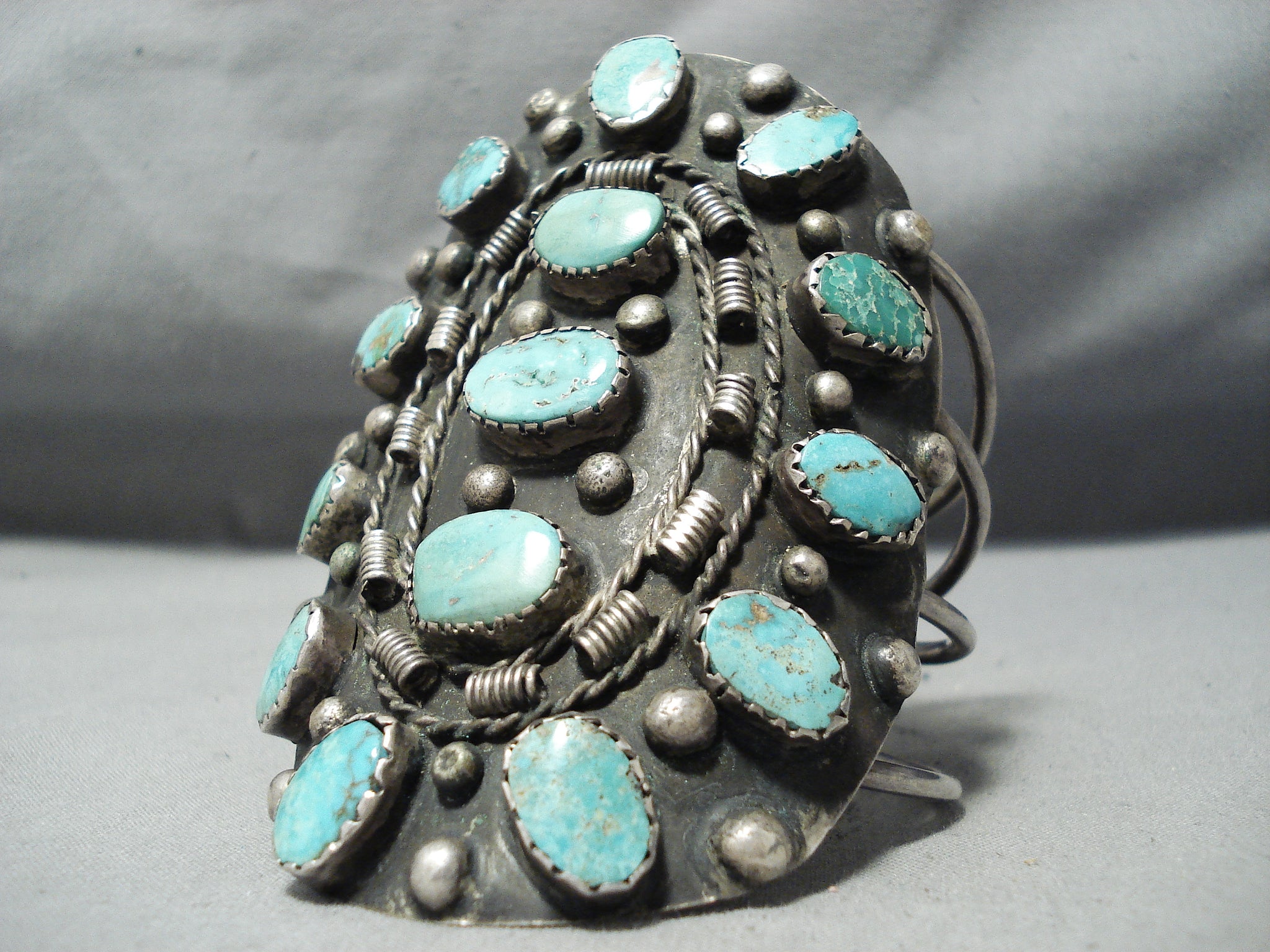 One Of Biggest Crazy Vintage Native American Navajo Royston Turquoise Sterling Silver Bracelet