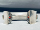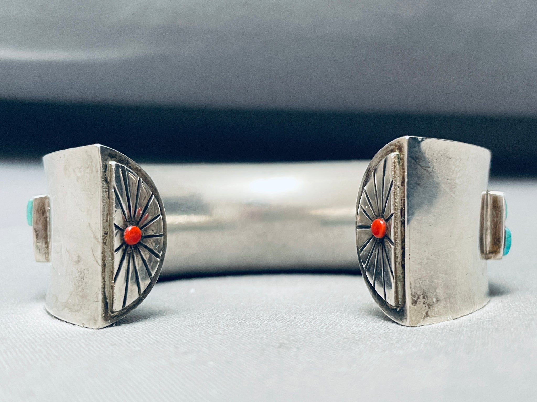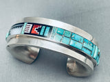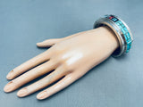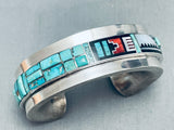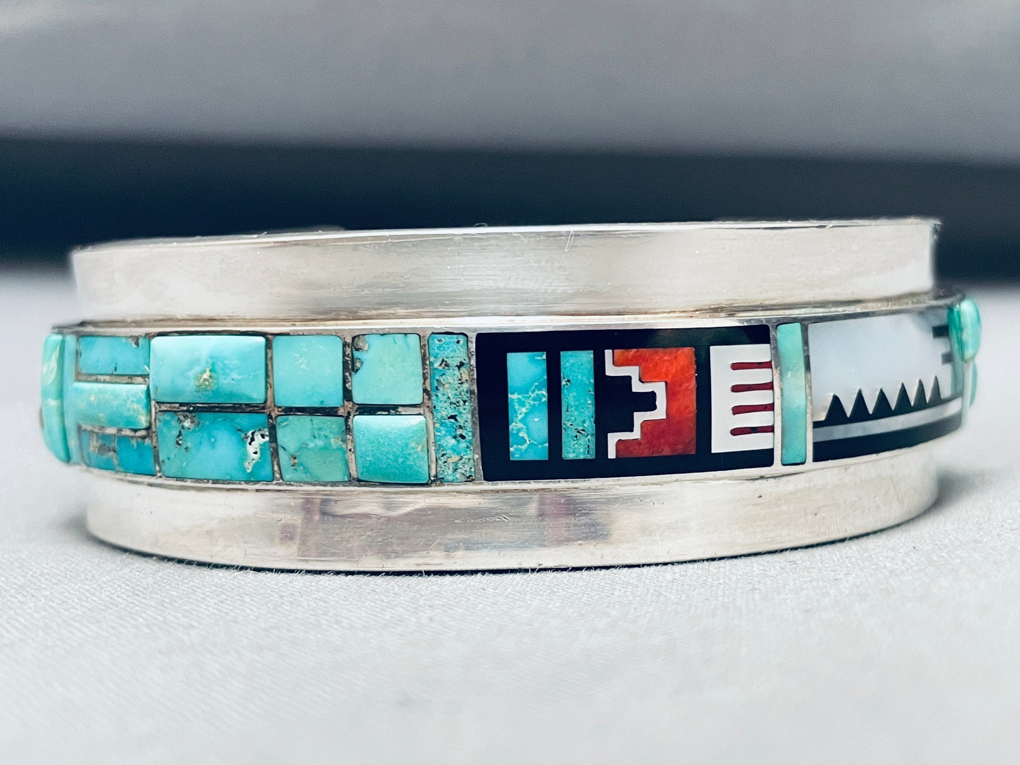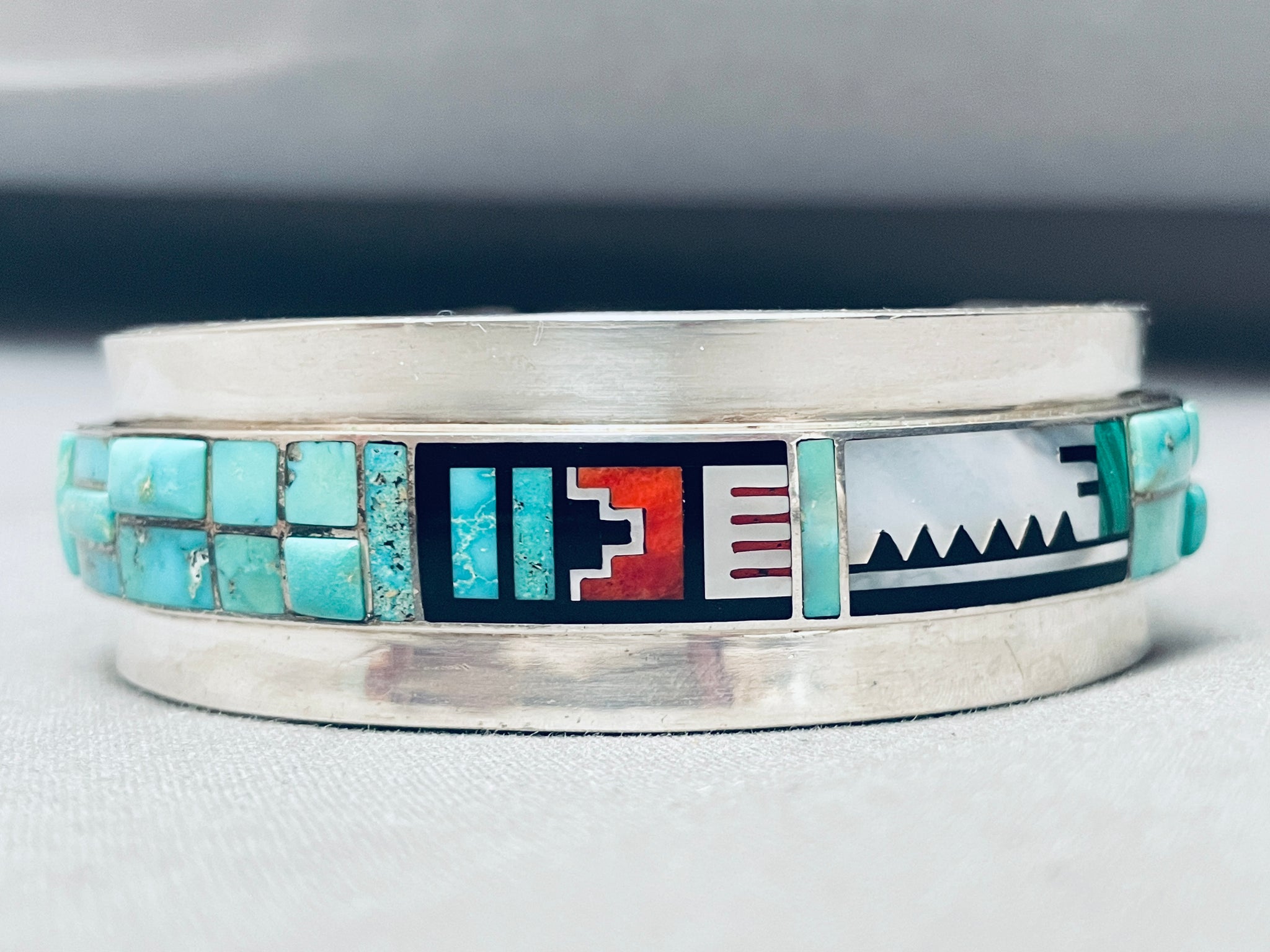 One Of The Best 6.5 Inch Wrist Vintage Native American Navajo Inlay Sterling Silver Bracelet