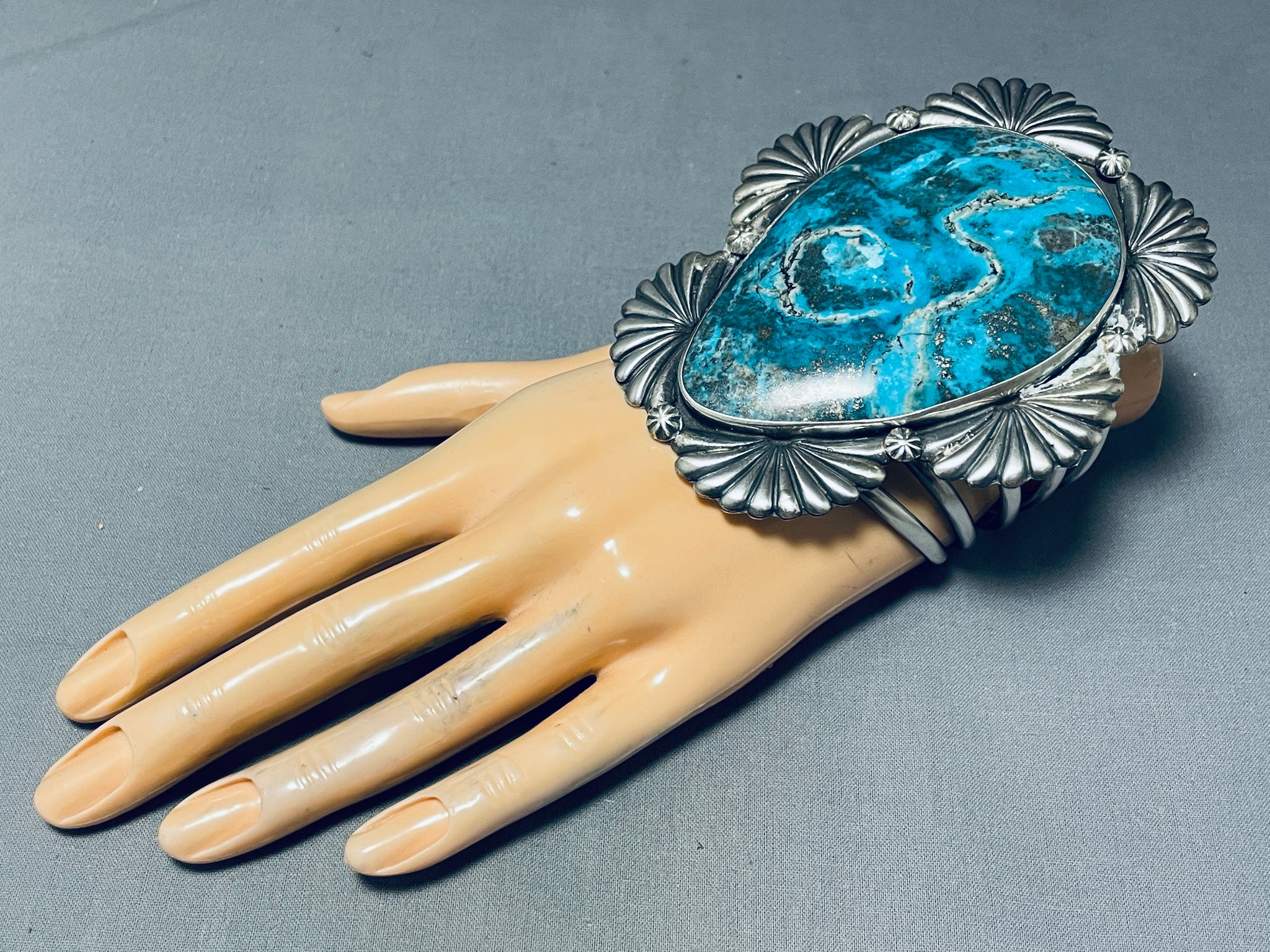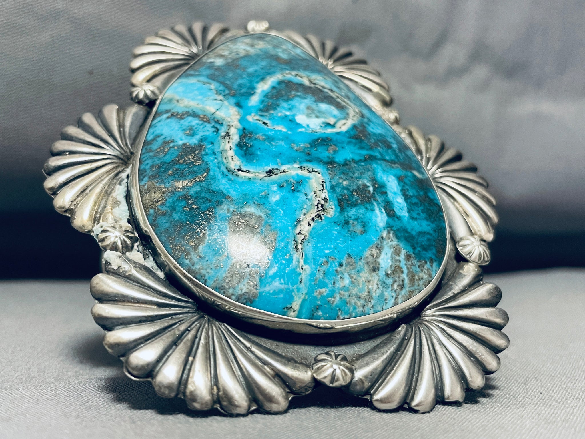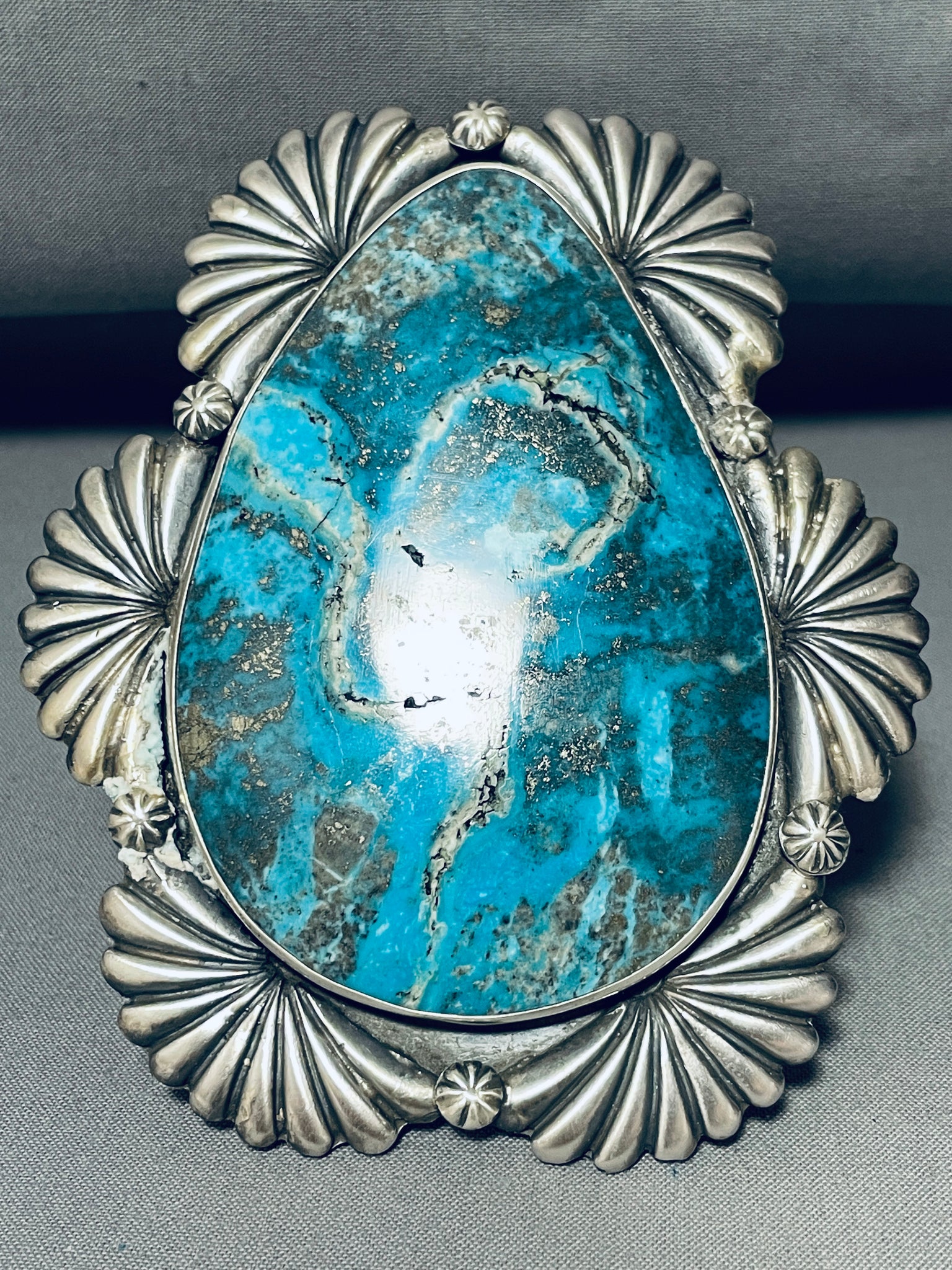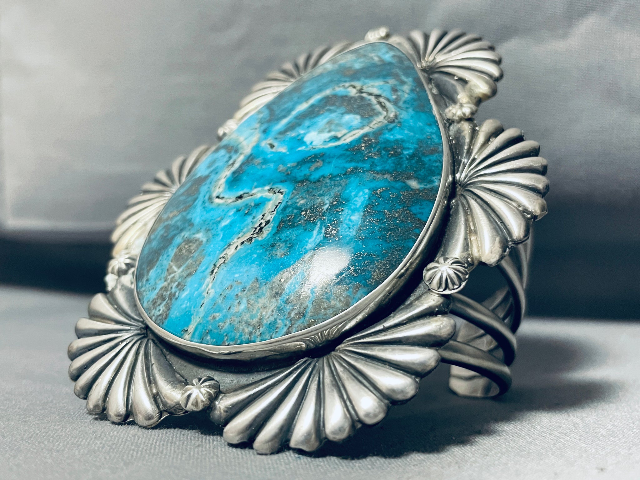 One Of The Best Aqua Blue Turquoise Native American Sterling Silver Bracelet