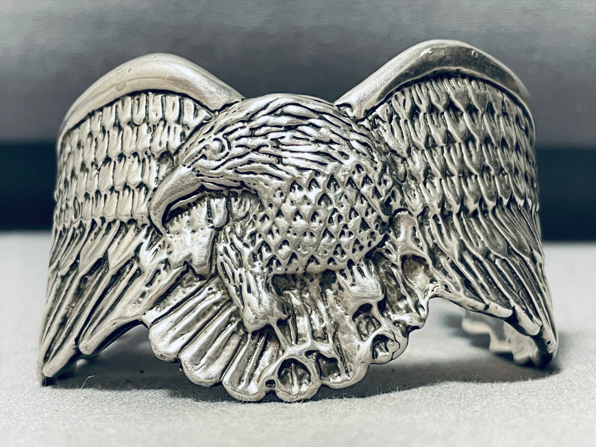 One Of The Best Ever Vintage Native American Navajo Eagle Sterling Silver Bracelet